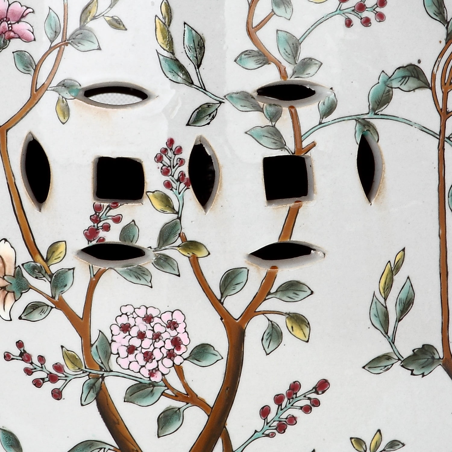 Item Dimension: 13 in. W X 13 in. D X 18 in. H Material: 100% Ceramic Color: Flower Tree Pattern No assembly needed Finish Surface Treatment: Glazing Item Weight: 15.4 lbs Capacity: 175 lbs. May be used as an additional side or end table Contemporary design adds a chic look to your home Accessories in lifestyle image(s) not included Dust regularly with a soft, dry cloth. Never use oiled or treated cloths on lacquered finishes. Some finishes can be wiped with a damp (not wet) cloth, followed at once by rubbing with a dry cloth to remove fingerprints and smudges. For persistent spots, gently clean with a soft cloth and a solution of water and mild soap, make sure to wipe dry. Use adhesive felt pads, coasters and placemats to protect your furniture. Please note: The images and product dimensions on our website are as accurate as possible. Due to differences in computer monitors, some item’s color may vary slightly. ACS4513A