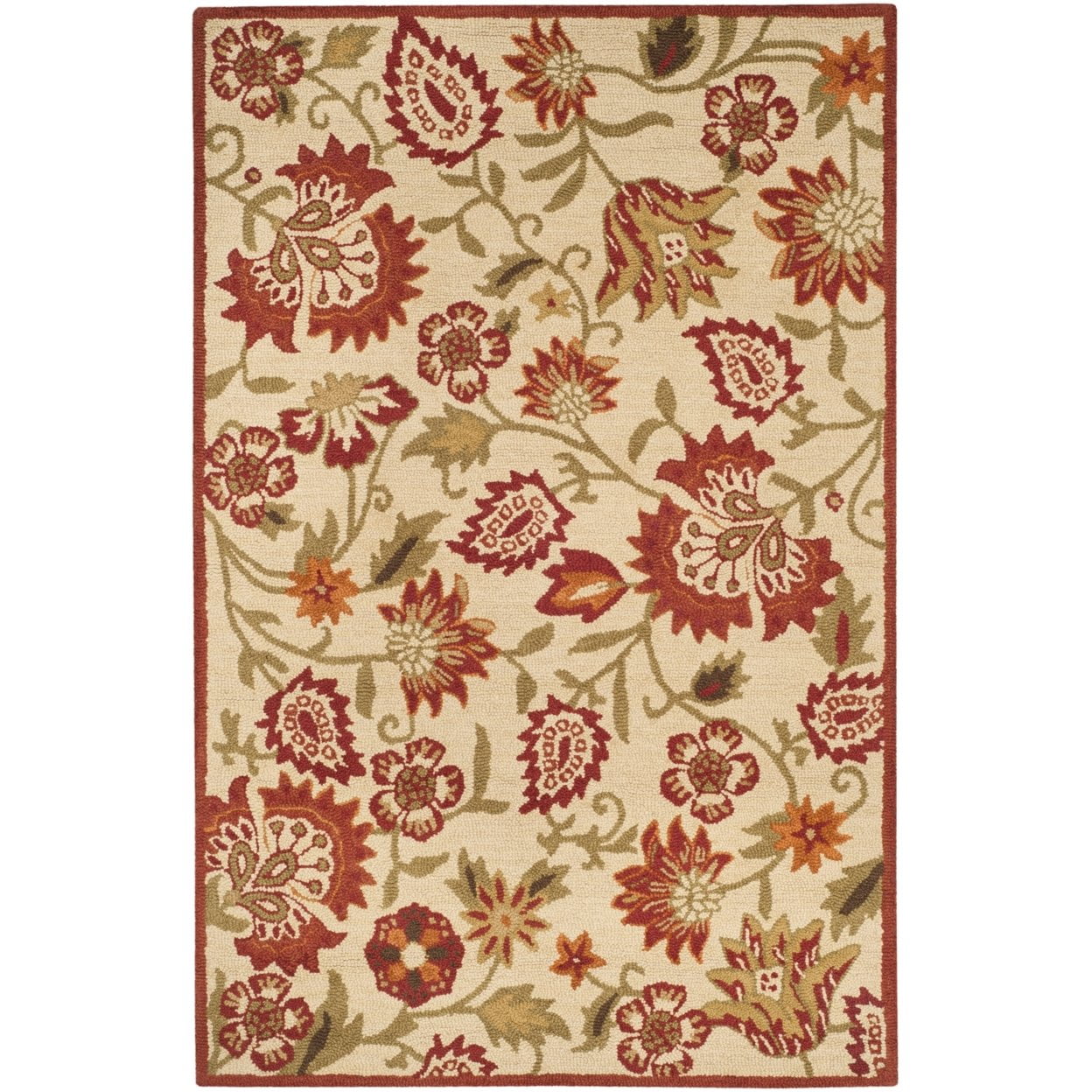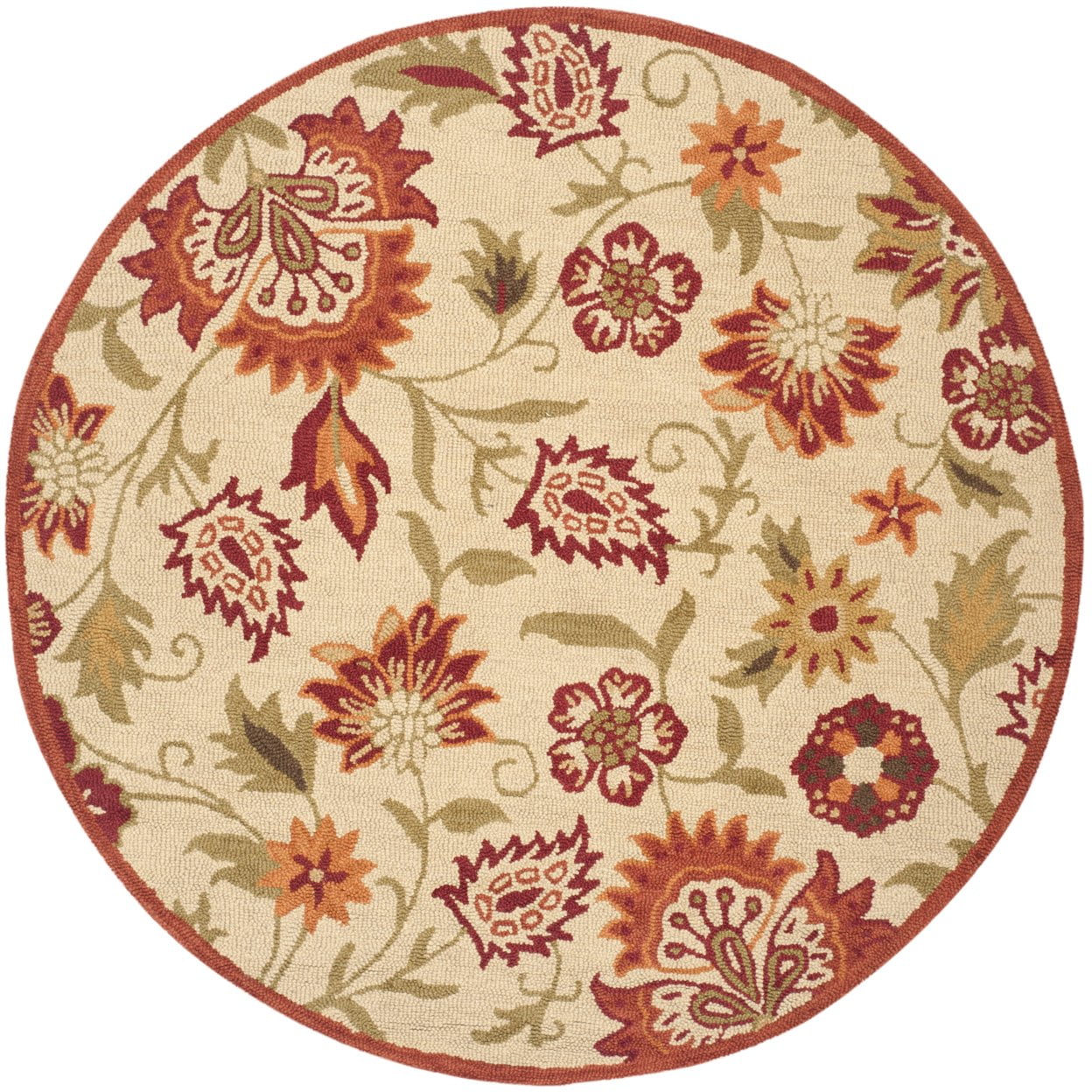 SAFAVIEH Blossom Leah Floral Flowers Wool Area Rug, Beige/Multi, 6′ x 6′ Round