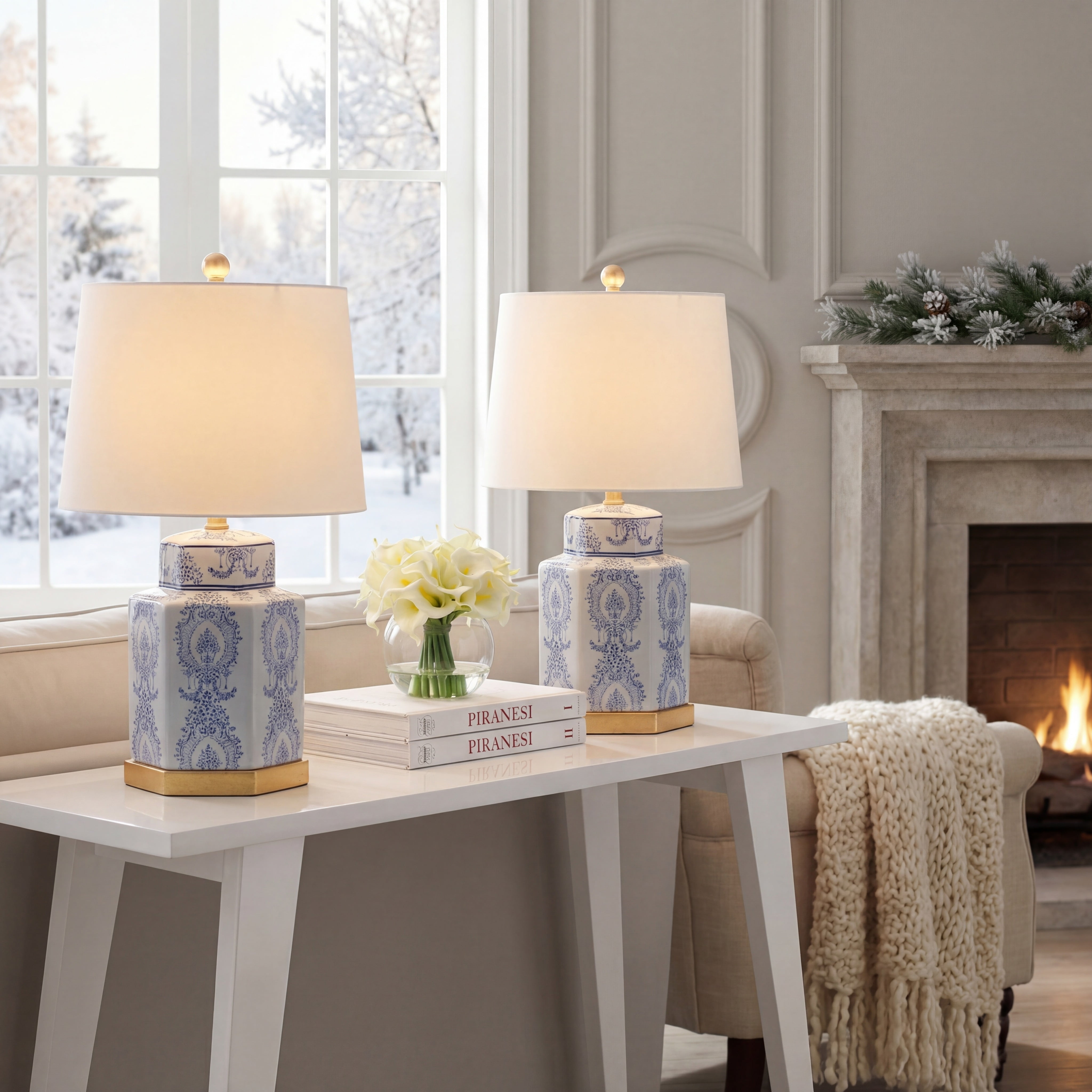 Safavieh Bodin Traditional 23 in. H Table Lamp, Blue/White, Set of 2