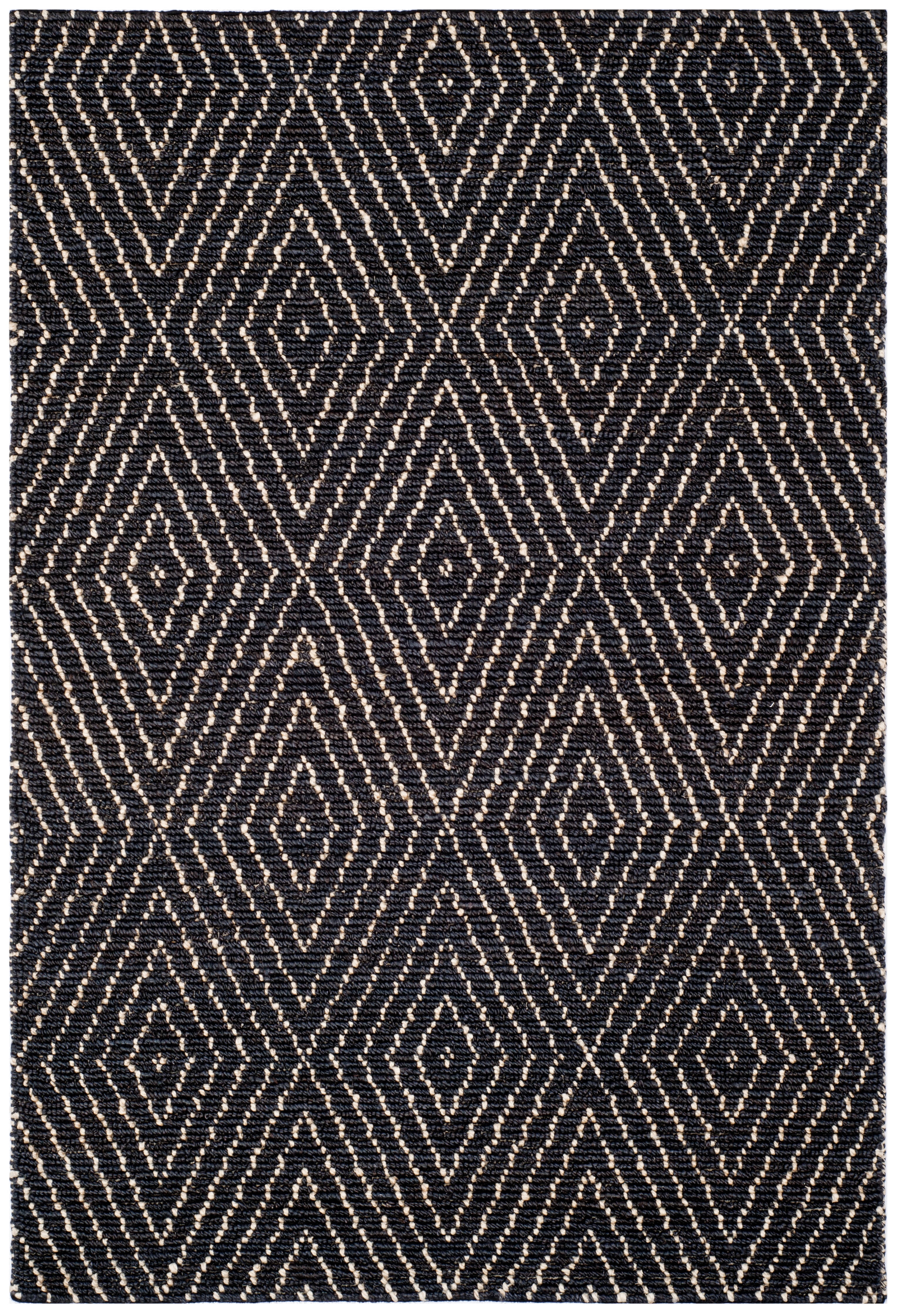 Color: Black/Ivory Size: 5′ x 8′ Hand Woven in India Pile Height: 0.25 in. No backing, rug pad (sold separately) recommended to help prevent shifting and sliding 100% Jute Pile Stylish addition for any room Accessories in lifestyle photos not included Vacuum regularly (preferably one without beater bars) and spot clean; for hard-to-remove stains, professional rug cleaning is recommended; rotating your rugs every 3-6 months will protect against uneven wear from foot traffic and furniture weight Use rug protectors under the legs of heavy furniture to avoid flattening piles Avoid direct sunlight as it will cause the colors in your area rug to fade over time; place your area rug away from direct sunlight whenever possible For an instant decorating makeover, this area rug is one of the easiest and most fashionable ways to refresh a room with character and style. Please note: The images and product dimensions on our website are as accurate as possible. Due to differences in computer monitors, some rug colors may vary slightly. Lengths and widths may vary from the published dimensions. We do our best to provide you with an exact measurement, but please be advised that some variation exists. Patterns may vary slightly according to shape and size selected. Packing and shipping of your rug may cause temporary creases; these surface waves are not imperfections or damages and will gradually recede; back-rolling or reverse rolling is the fastest and easiest way to remove creases in your area rug; allow ample time for your rug to settle, these creases and waves will normally flatten out Available in multiple sizes For carpet-to-carpet use, we recommend placing a hold pad in-between for protection