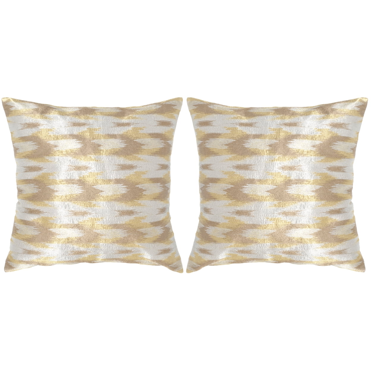 SAFAVIEH Boho Chic Pillow Set of 2 Metallic Silver Globally inspired, the set of two Boho Chic pillows imbues the trend to ikat and ombre fabric patterns in couture fashion. A great pick me up for transitional and traditional rooms, their polyester covers are lustrous in the metallic silver colorway. For over 100 years, SAFAVIEH has set the standard for finely crafted rugs and home furnishings. From coveted fresh and trendy designs to timeless heirloom-quality pieces, expressing your unique personal style has never been easier. Begin your rug, furniture, lighting, outdoor, and home decor search and discover over 100,000 SAFAVIEH products today.
