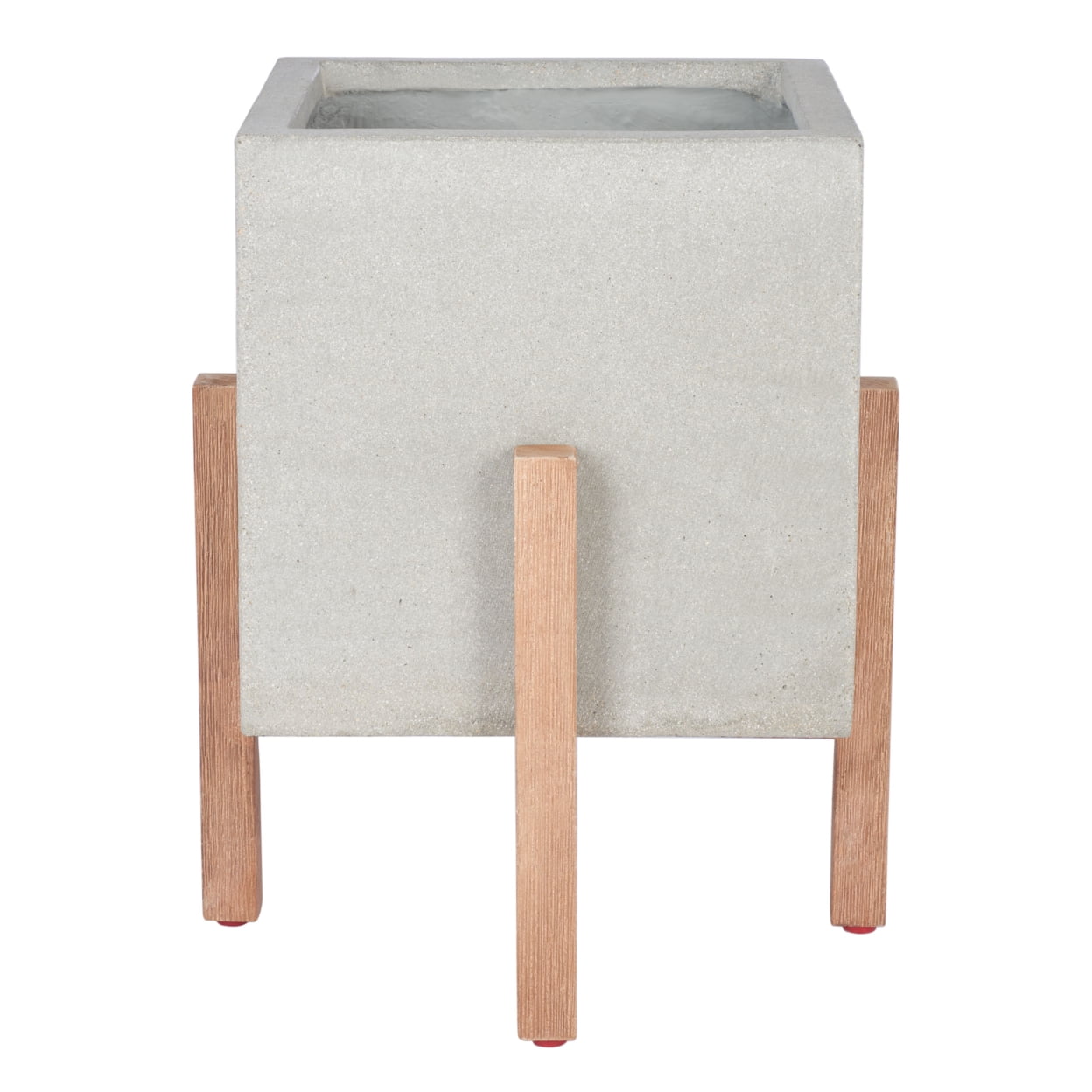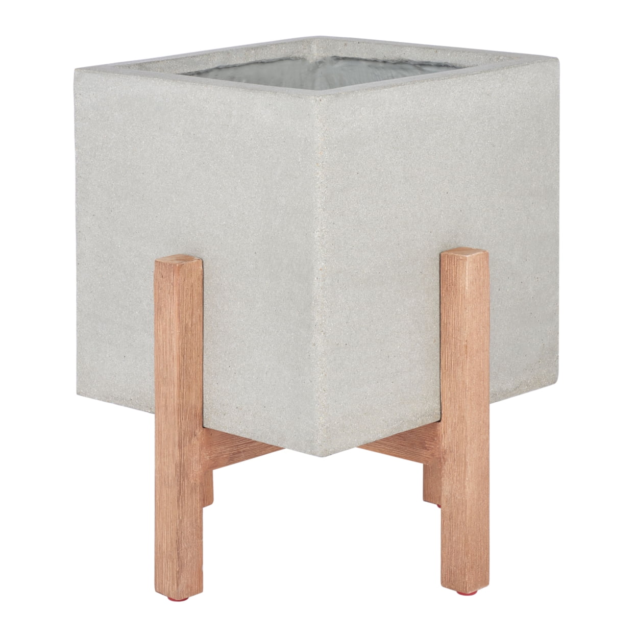 SAFAVIEH Borsla Modern Glam Square Patio Planter with Stand, Natural/Light Grey