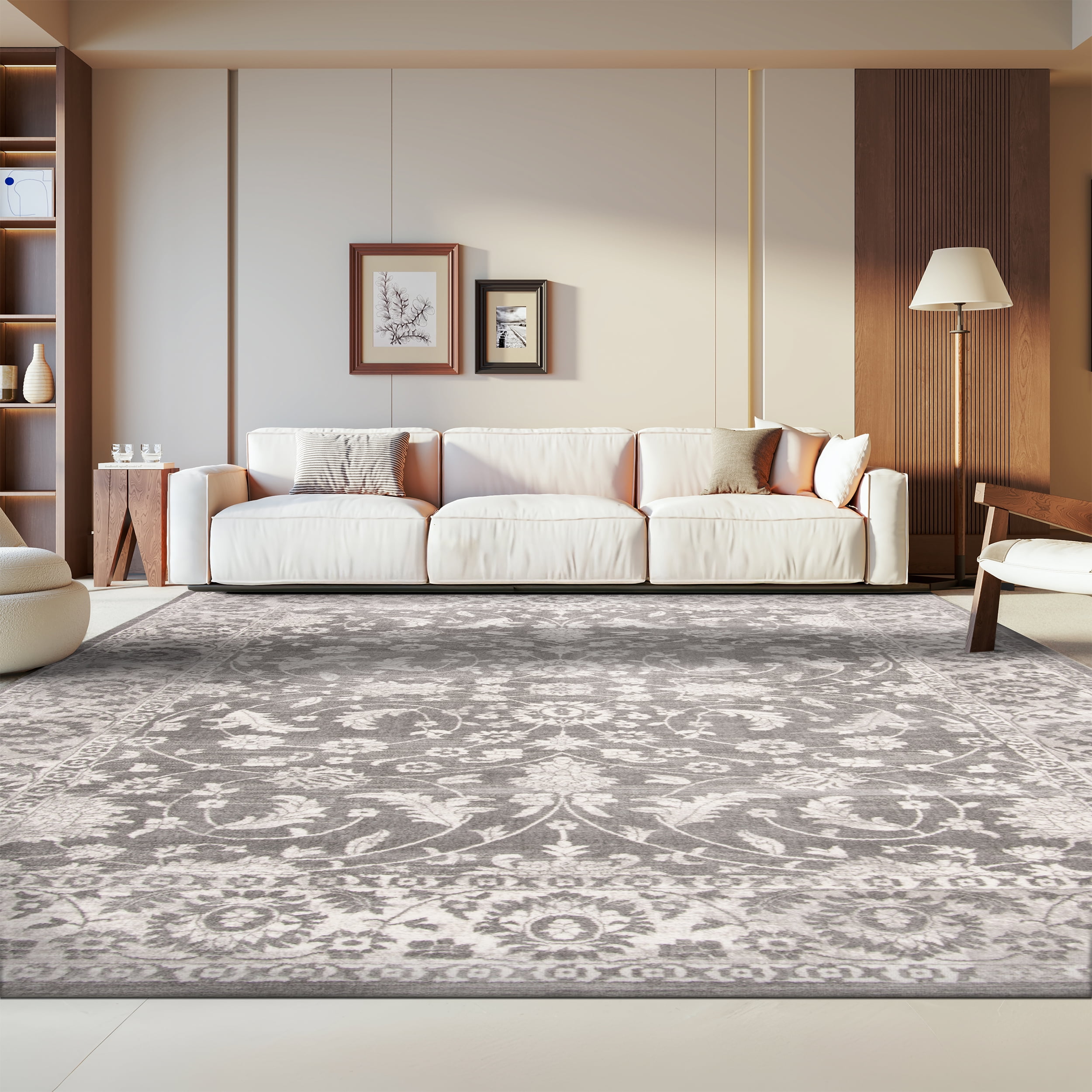 Color: Cream/Grey Size: 6′ x 9′ Power Loomed in Turkey Pile Height: 0.3 in. No backing, rug pad (sold separately) recommended to help prevent shifting and sliding 100% Polypropylene Stylish addition for any room Accessories in lifestyle photos not included Vacuum regularly (preferably one without beater bars) and spot clean; for hard-to-remove stains, professional rug cleaning is recommended; rotating your rugs every 3-6 months will protect against uneven wear from foot traffic and furniture weight Use rug protectors under the legs of heavy furniture to avoid flattening piles Avoid direct sunlight as it will cause the colors in your area rug to fade over time; place your area rug away from direct sunlight whenever possible For an instant decorating makeover, this area rug is one of the easiest and most fashionable ways to refresh a room with character and style. Please note: The images and product dimensions on our website are as accurate as possible. Due to differences in computer monitors, some rug colors may vary slightly. Lengths and widths may vary from the published dimensions. We do our best to provide you with an exact measurement, but please be advised that some variation exists. Patterns may vary slightly according to shape and size selected. Packing and shipping of your rug may cause temporary creases; these surface waves are not imperfections or damages and will gradually recede; back-rolling or reverse rolling is the fastest and easiest way to remove creases in your area rug; allow ample time for your rug to settle, these creases and waves will normally flatten out Available in multiple sizes For carpet-to-carpet use, we recommend placing a hold pad in-between for protection