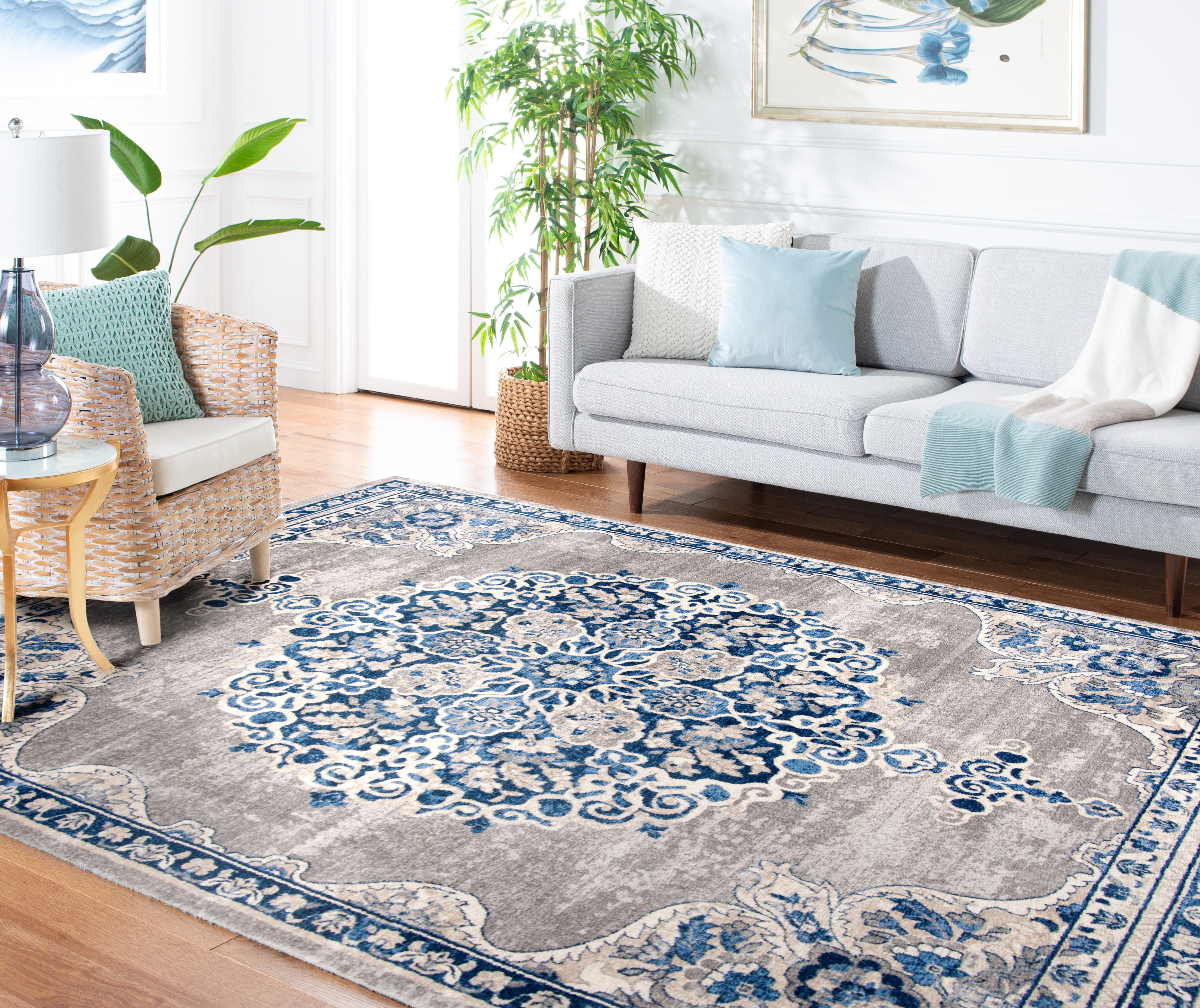 SAFAVIEH Brentwood Cahal Oriental Area Rug, Light Gray/Blue, 9′ x 12′