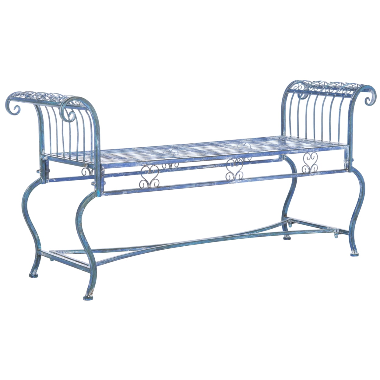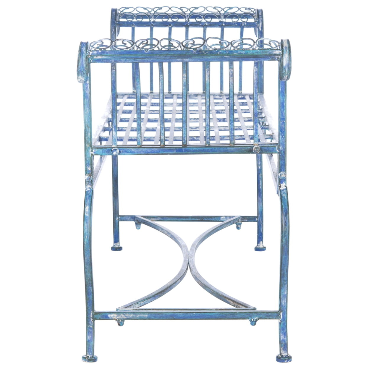 SAFAVIEH Outdoor Collection Brielle Bench Antique Blue The enchanting designs of the Victorian era come to contemporary outdoor decor in this elegant Brielle Bench. Crafted of finely sculpted iron in an antique blue finish, Brielle’s intricate scrolls and heart shaped details lend your garden or patio a vintage touch of romance. For over 100 years, SAFAVIEH has set the standard for finely crafted rugs and home furnishings. From coveted fresh and trendy designs to timeless heirloom-quality pieces, expressing your unique personal style has never been easier. Begin your rug, furniture, lighting, outdoor, and home decor search and discover over 100,000 SAFAVIEH products today.