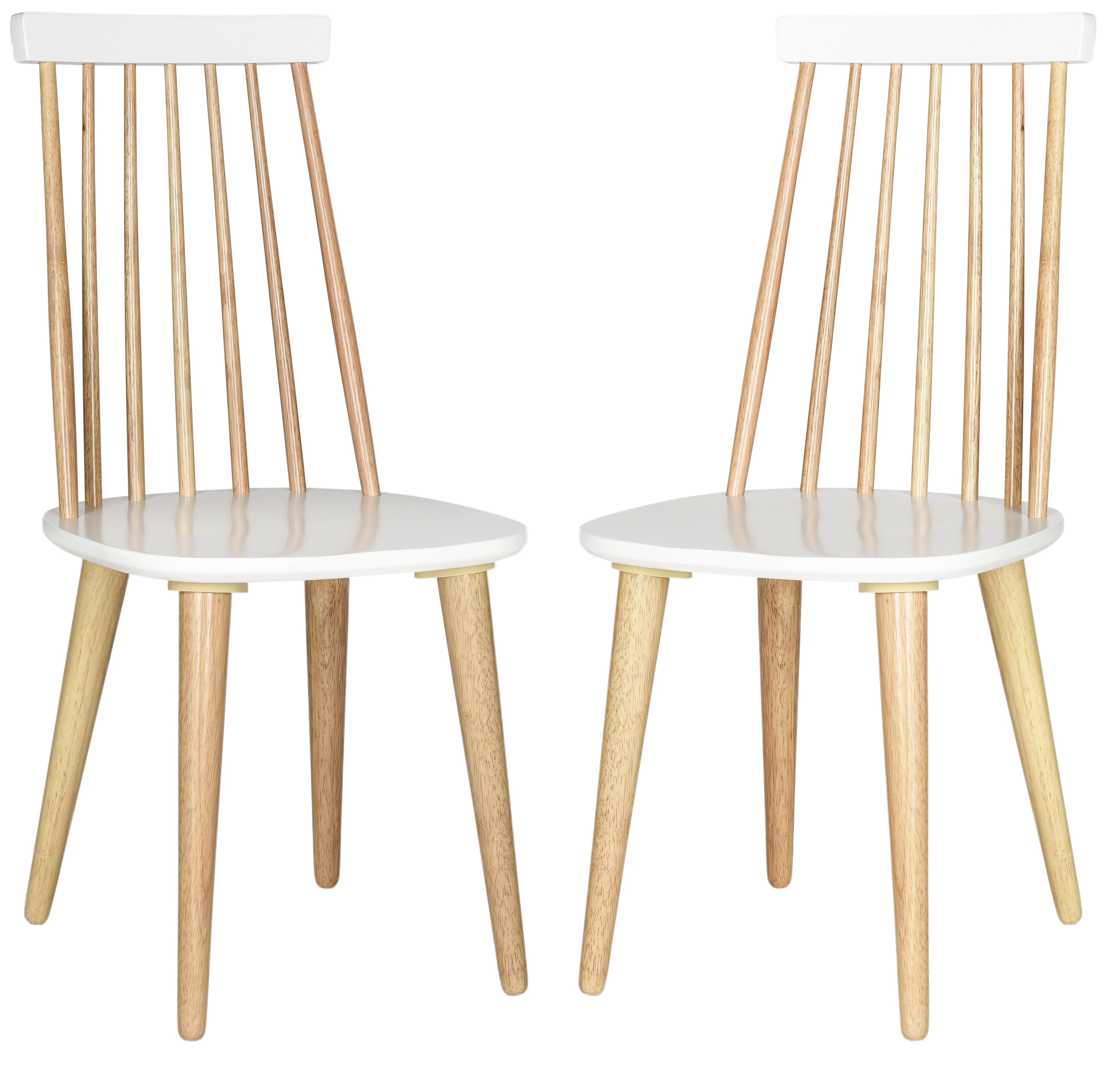 A modern twist on a dining room favorite, this adaptation of the classic Windsor side chair gets a fashion edge with a combination of natural and white finishes. Crafted of sustainable rubber wood, this set of two brings comfort and style to the table. Furniture Room: Dining Room Chair Type: Dining Chairs Material: Rubberwood Style: Contemporary Assembly: Assembly Required Set Size: Set of 2 Color: White