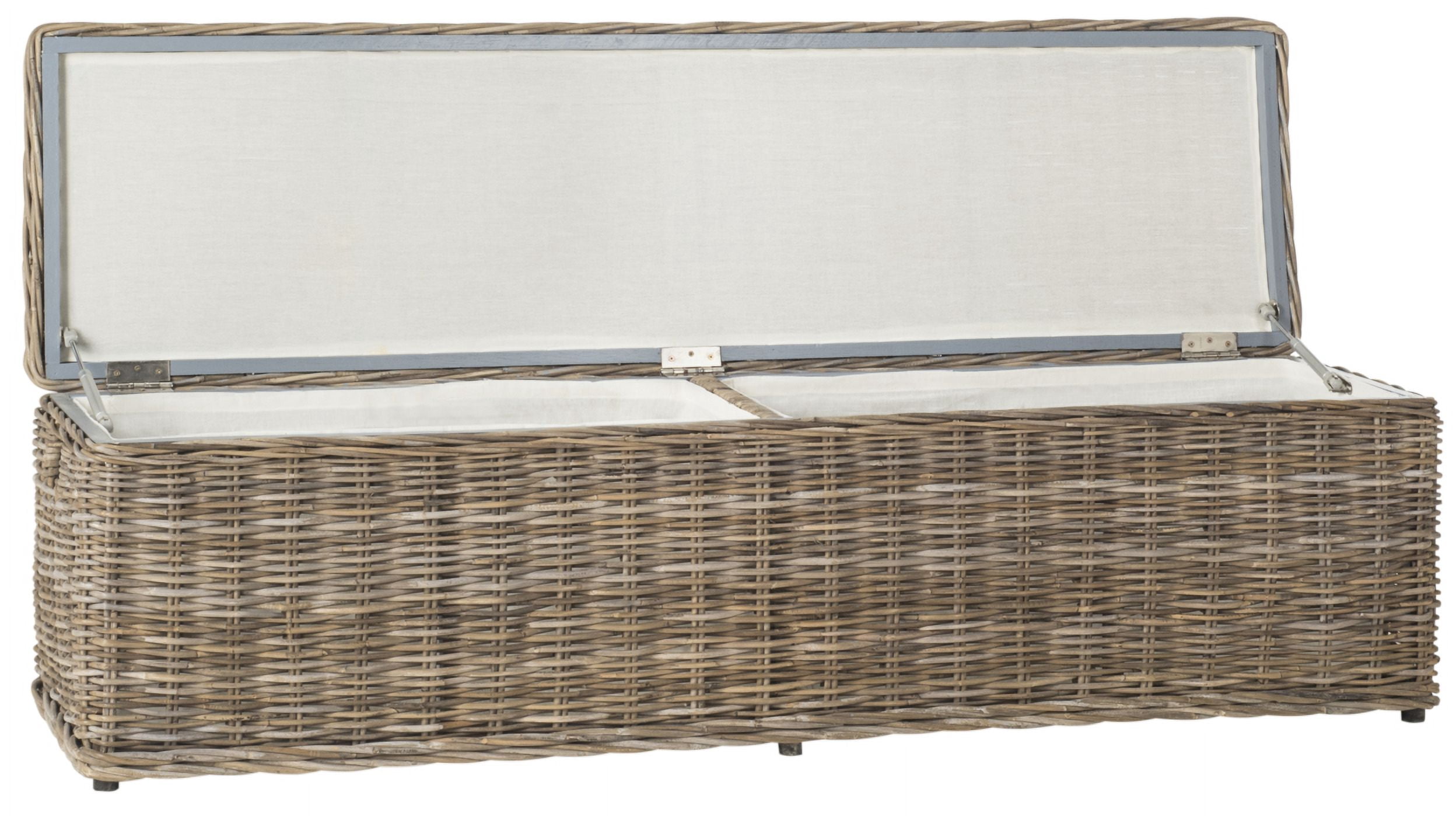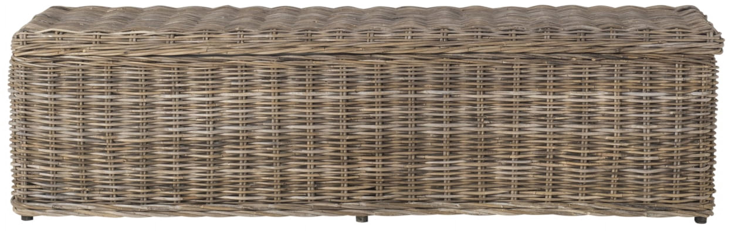 Shop SAFAVIEH at . Save Money. Live Better. SAFAVIEH Caius Bohemian Nautical Wicker Bench with Storage, Natural Perfectly sized to fit in front of a bed, this lovely rustic woven rattan storage bench ideal for stowing extra sweaters, blankets and more. It is crafted of grey kubu rattan and mahogany with cotton lining, and comes with handles and hinge opened top. For over 100 years, SAFAVIEH has set the standard for finely crafted rugs and home furnishings. Begin your rug, furniture, lighting, outdoor, and home decor search and discover over 100,000 SAFAVIEH products today.