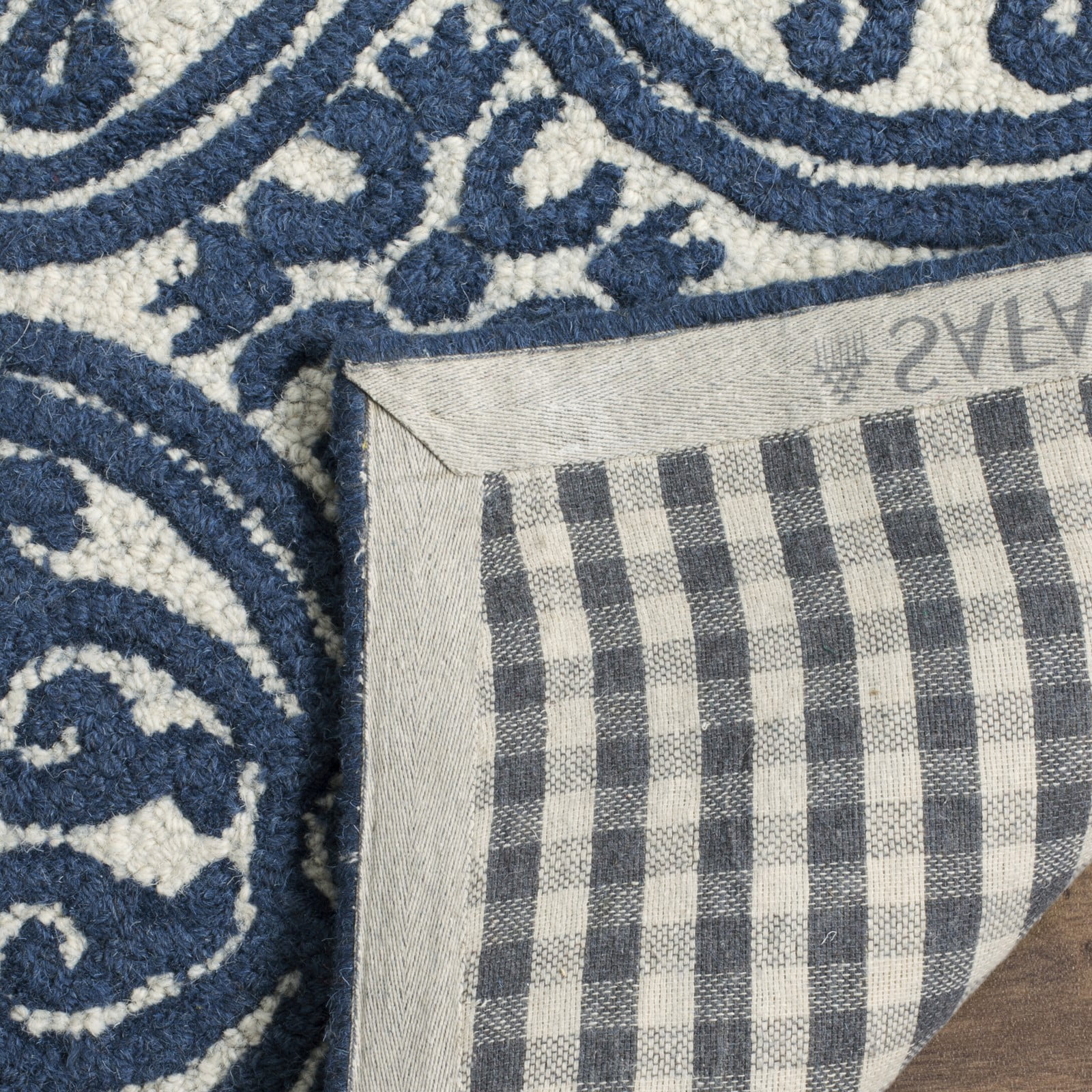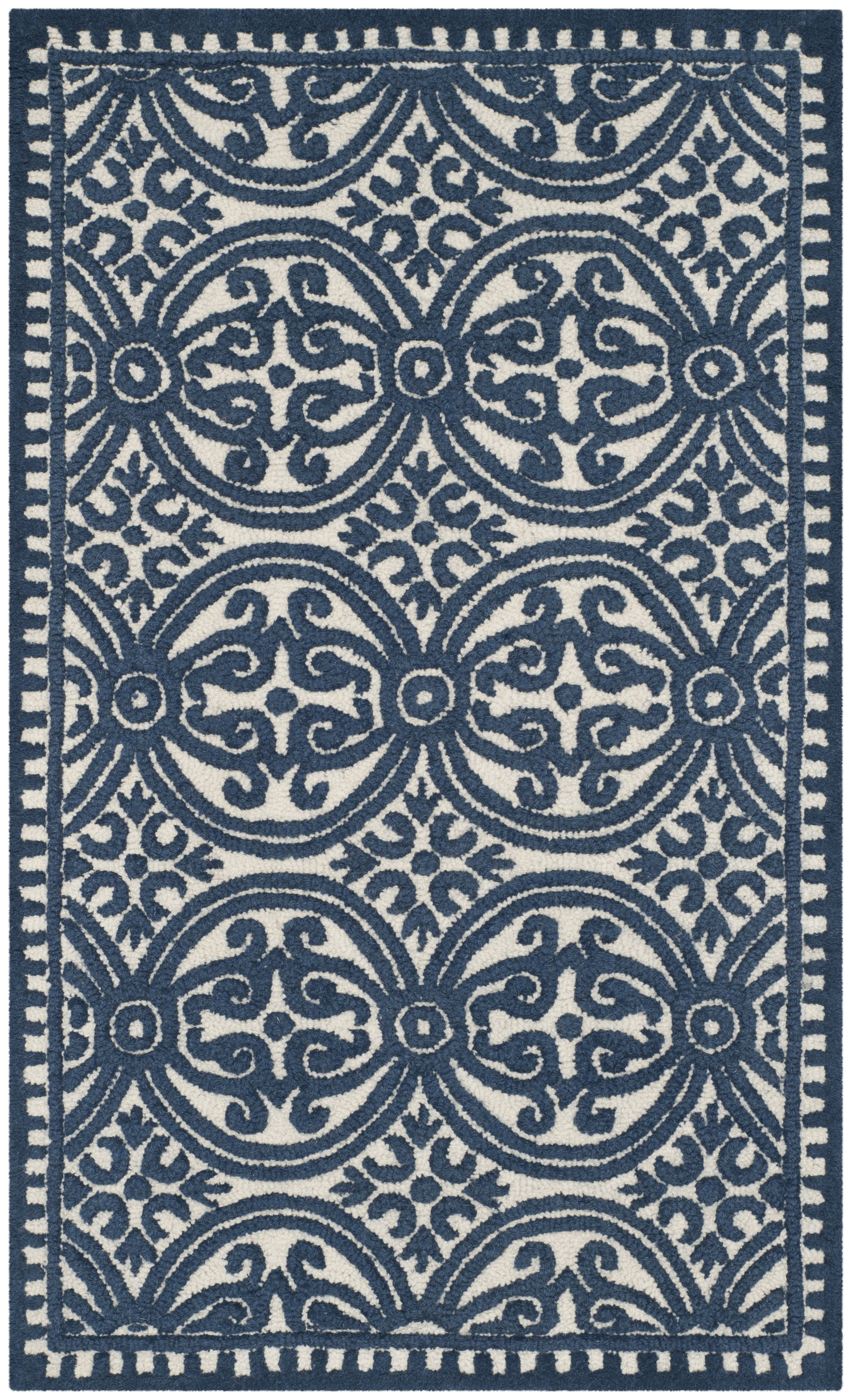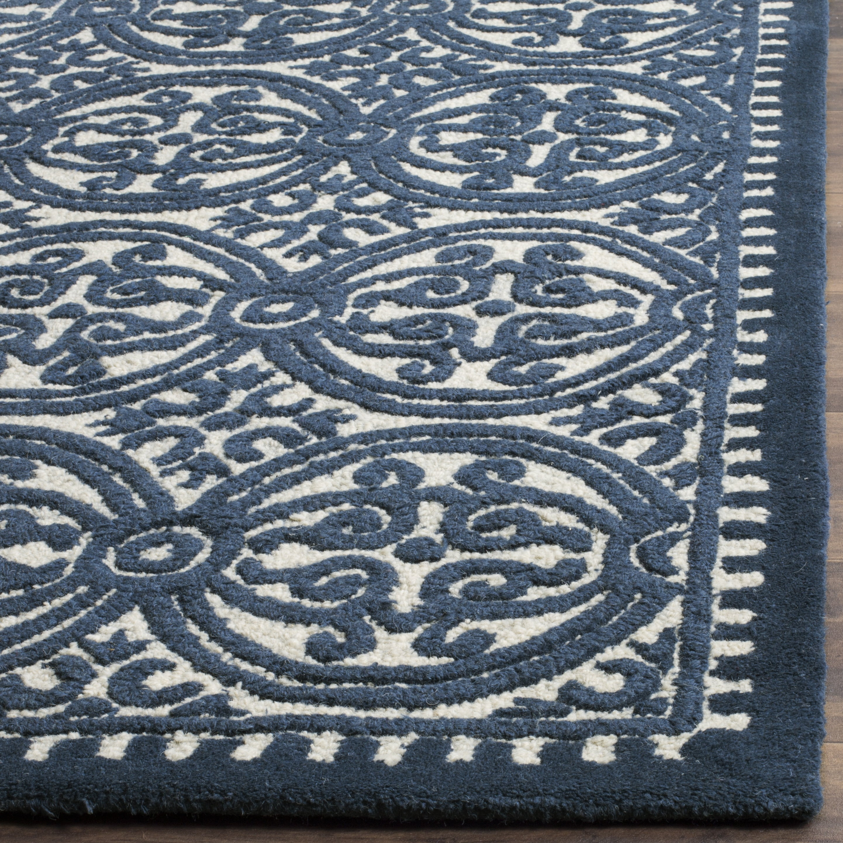 SAFAVIEH Cambridge Joseph Geometric Wool Area Rug, Ivory/Navy, 4′ x 6′