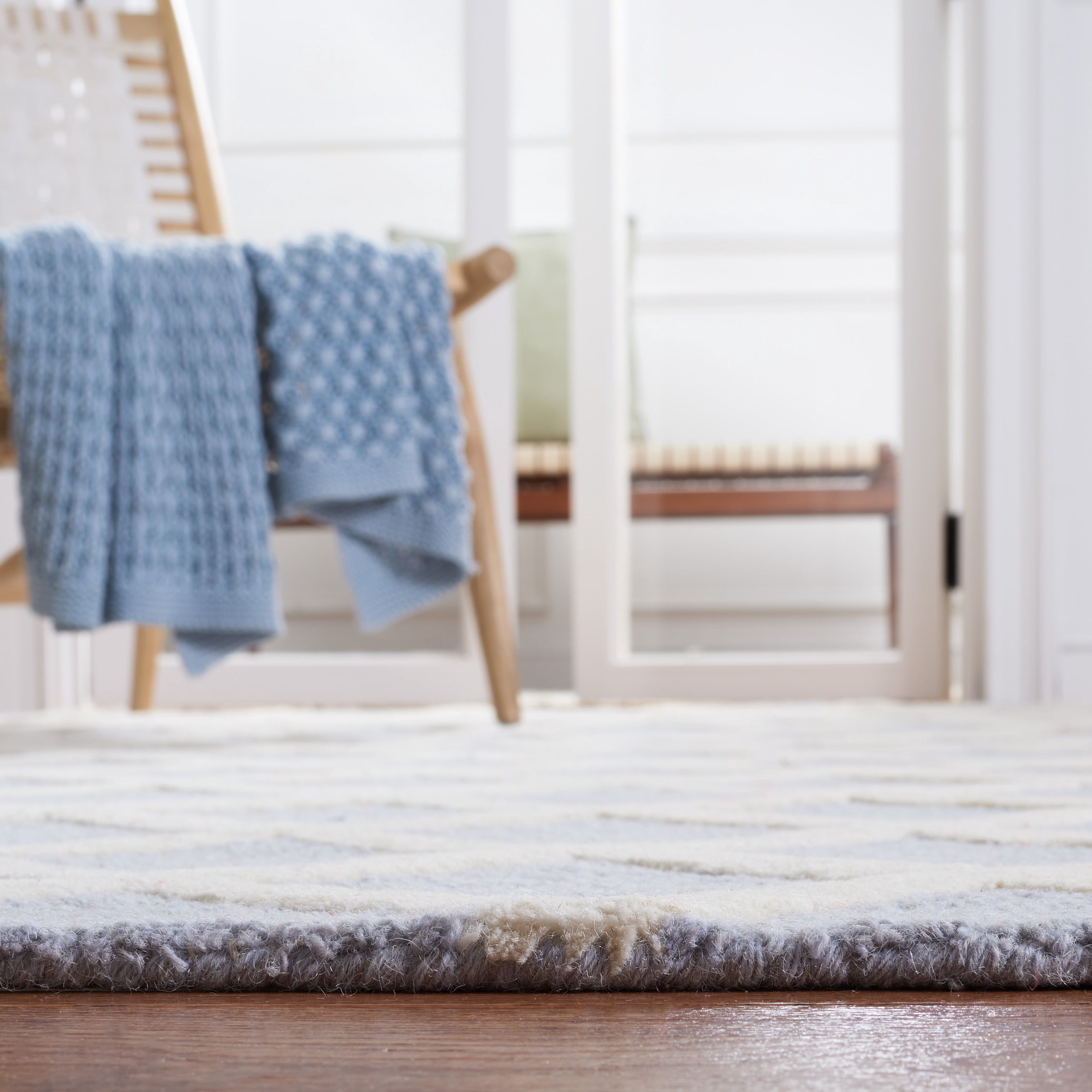 SAFAVIEH Cambridge Kenneth Geometric Wool Area Rug, Light Blue/Ivory, 3′ x 5′