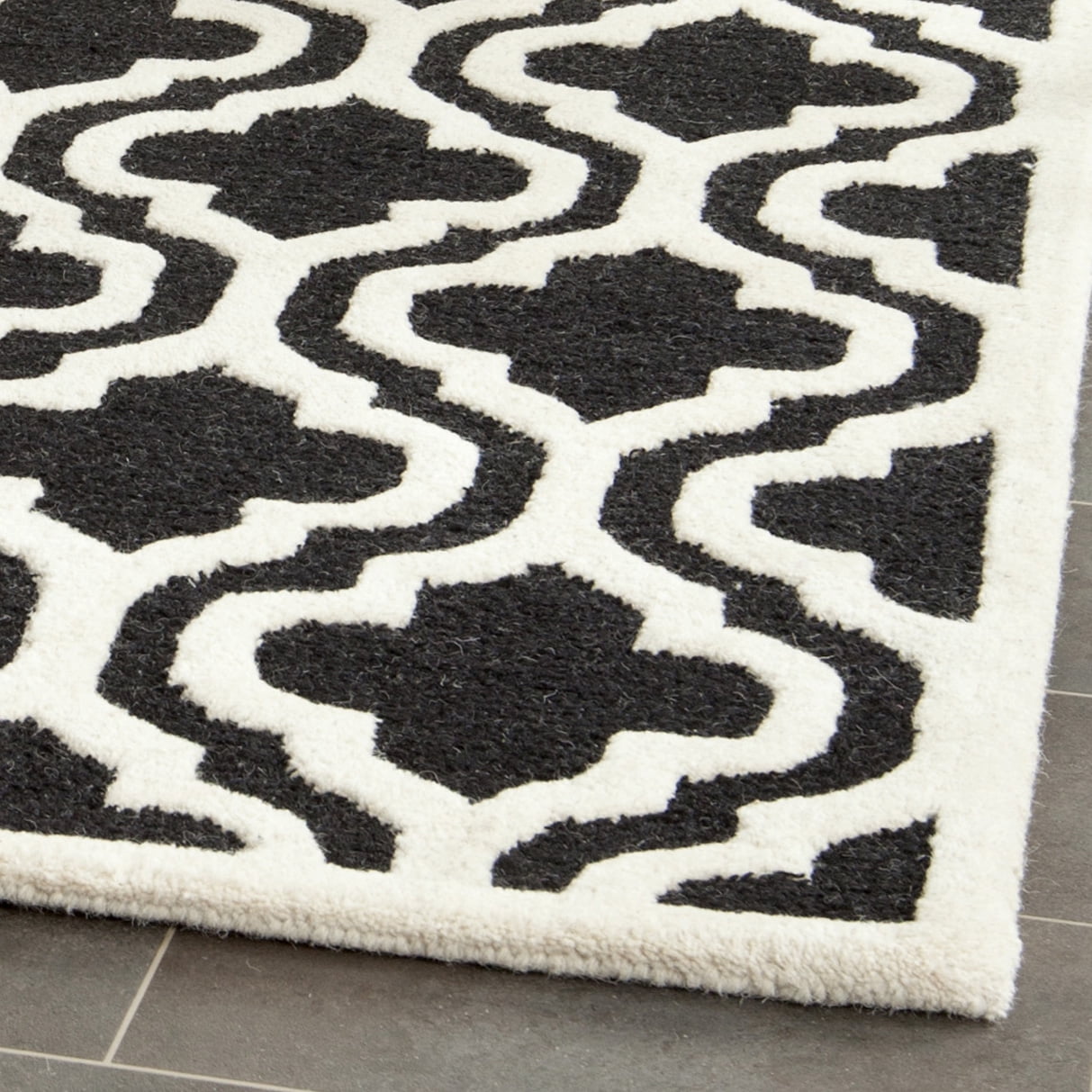 SAFAVIEH Cambridge CAM132E Handmade Black / Ivory Rug The Cambridge Collection brings modern American style to the home or office with this marvelous selection of hand-tufted wool area rugs. Cambridge rugs are beautifully styled with classic geometric patterns masterfully woven into plush cut piles and texture-rich high/ low loop and cut piles. Add all-Americana character and charm to home decor with Cambridge area rugs. Rug has an approximate thickness of 0.63 inches. For over 100 years, SAFAVIEH has set the standard for finely crafted rugs and home furnishings. From coveted fresh and trendy designs to timeless heirloom-quality pieces, expressing your unique personal style has never been easier. Begin your rug, furniture, lighting, outdoor, and home decor search and discover over 100,000 SAFAVIEH products today.