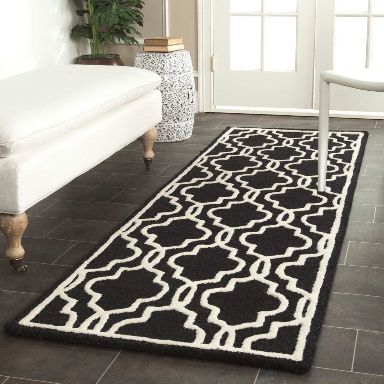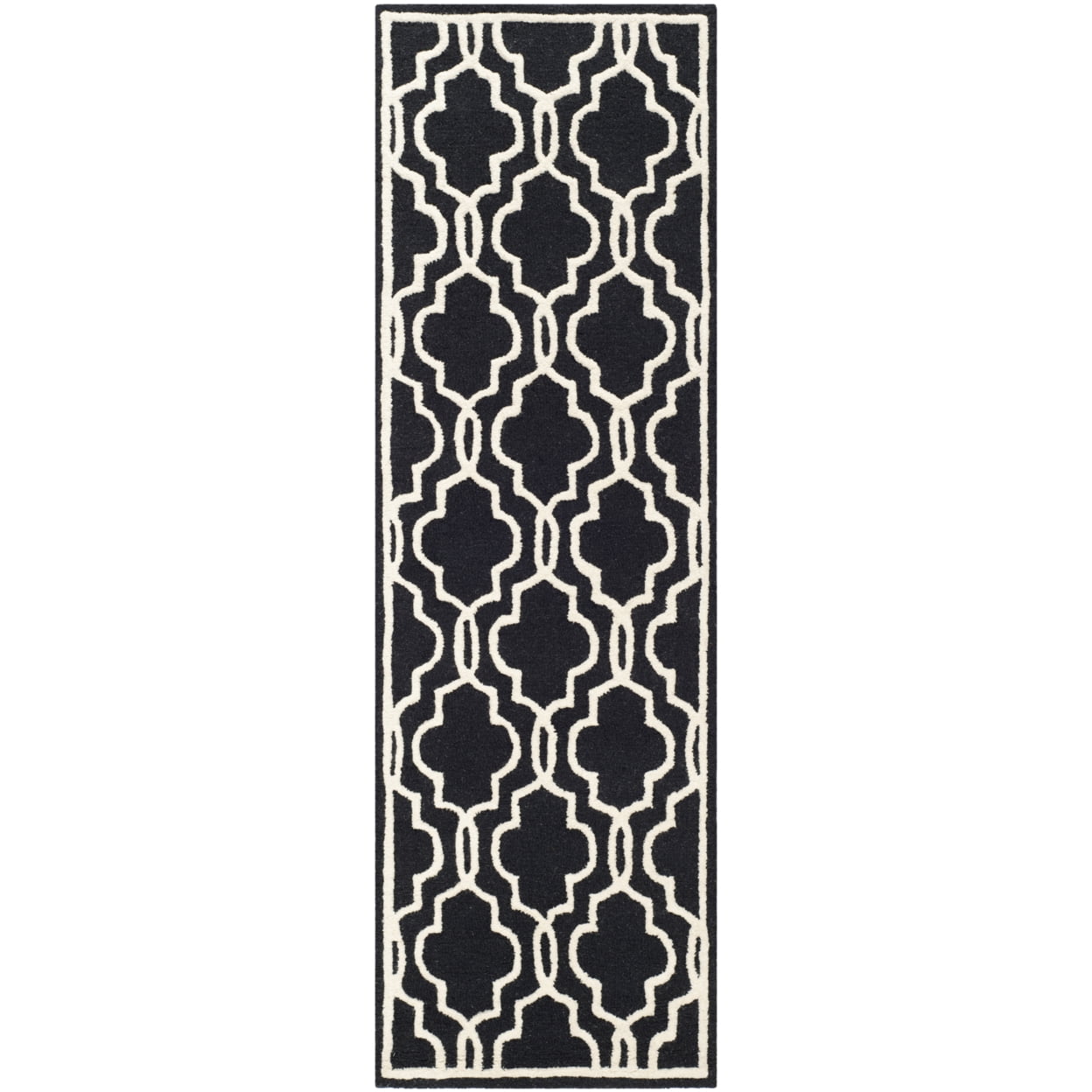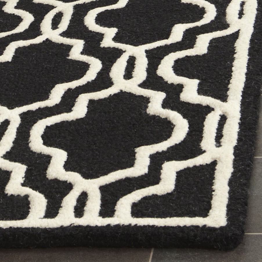 SAFAVIEH Cambridge CAM131E Handmade Black / Ivory Rug The Cambridge Collection brings modern American style to the home or office with this marvelous selection of hand-tufted wool area rugs. Cambridge rugs are beautifully styled with classic geometric patterns masterfully woven into plush cut piles and texture-rich high/ low loop and cut piles. Add all-Americana character and charm to home decor with Cambridge area rugs. Rug has an approximate thickness of 0.63 inches. For over 100 years, SAFAVIEH has set the standard for finely crafted rugs and home furnishings. From coveted fresh and trendy designs to timeless heirloom-quality pieces, expressing your unique personal style has never been easier. Begin your rug, furniture, lighting, outdoor, and home decor search and discover over 100,000 SAFAVIEH products today.