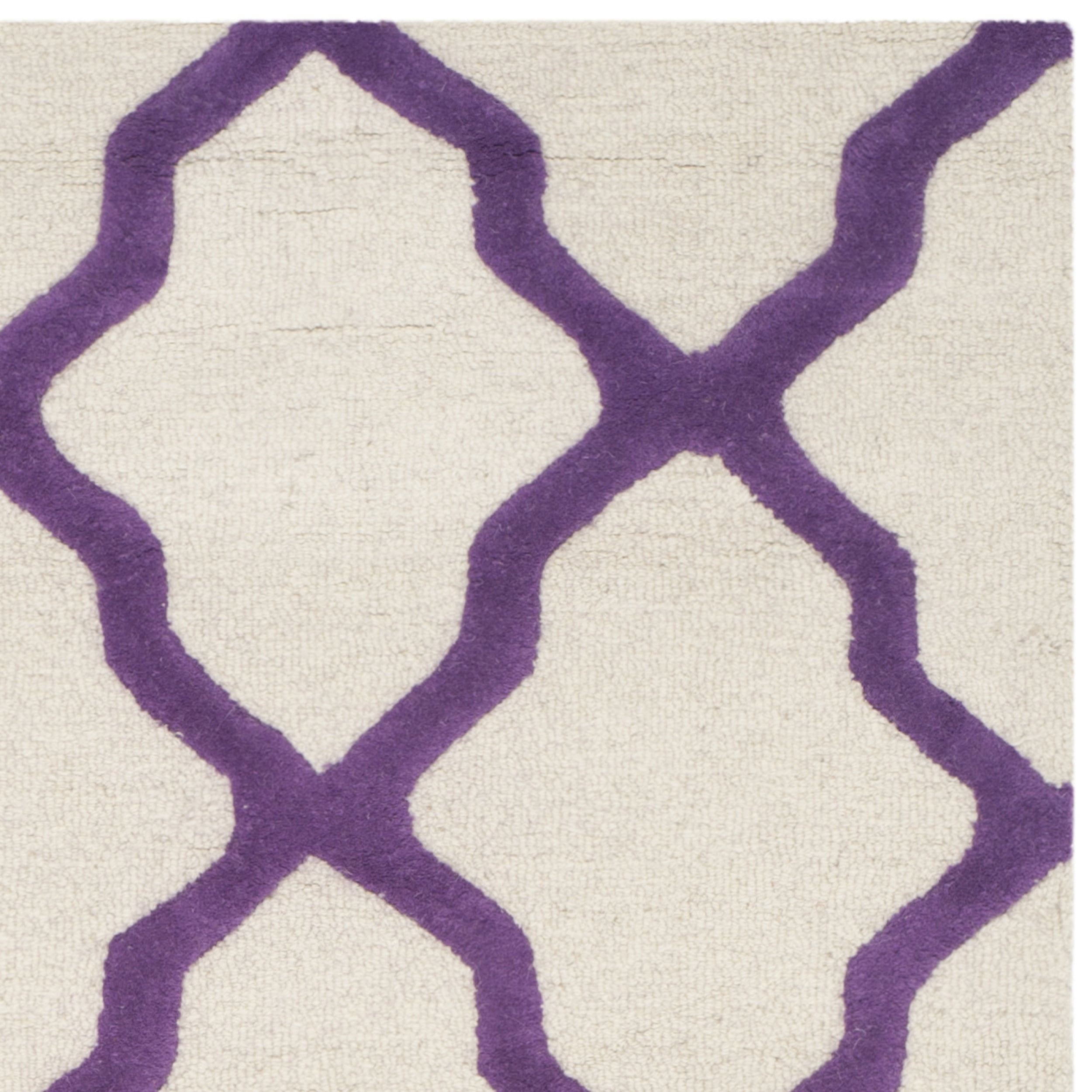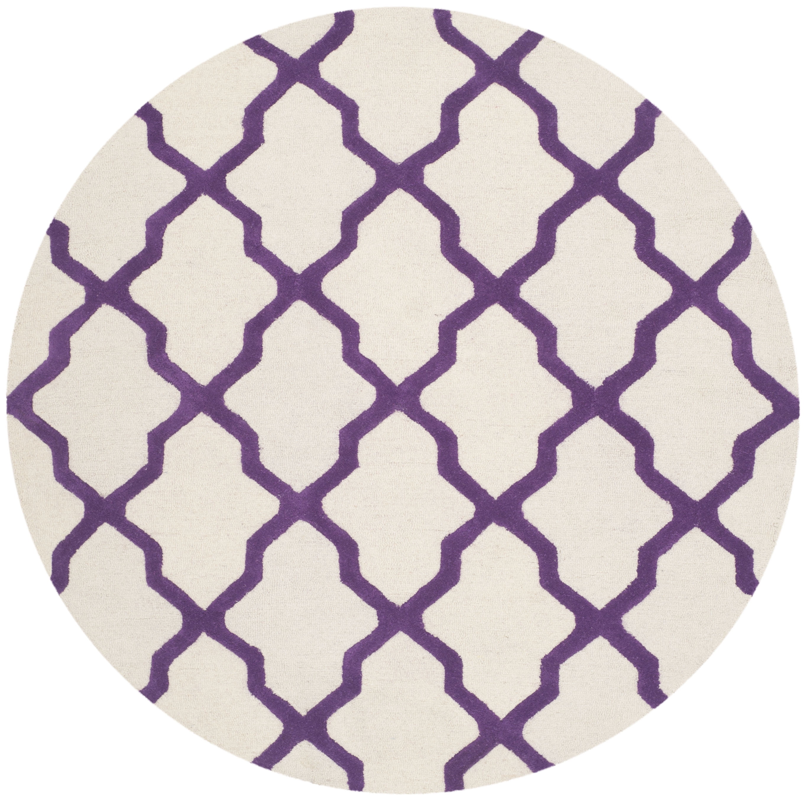 SAFAVIEH Cambridge Liam Geometric Wool Area Rug, Ivory/Purple, 6′ x 6′ Round
