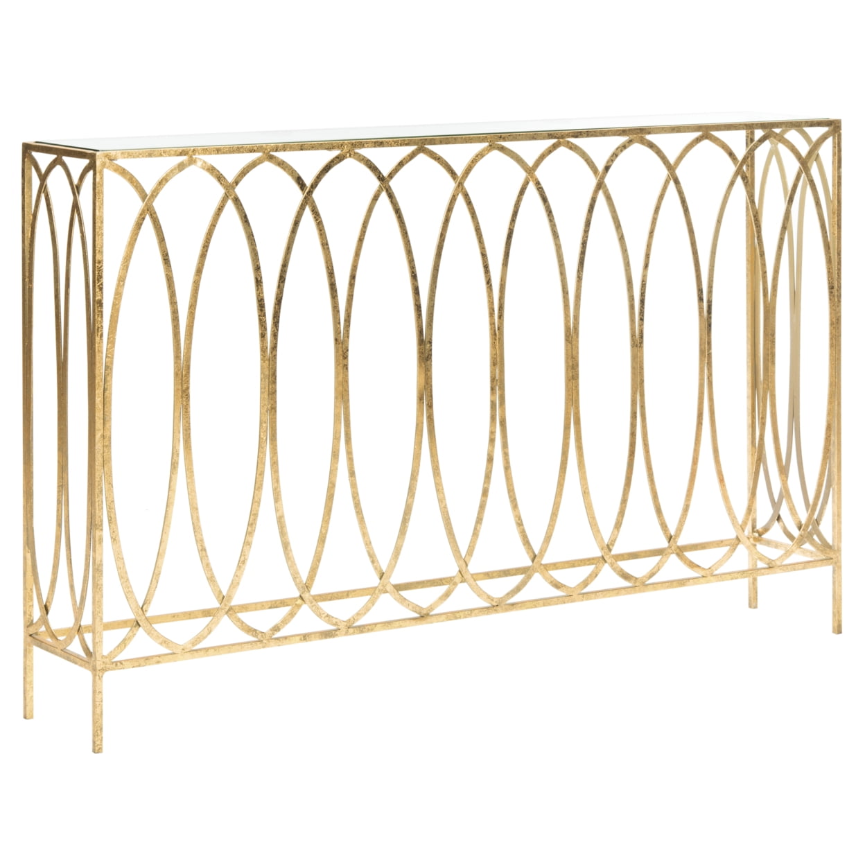 SAFAVIEH Carina Oval Ringed Console Table, Golf Foil/Glass