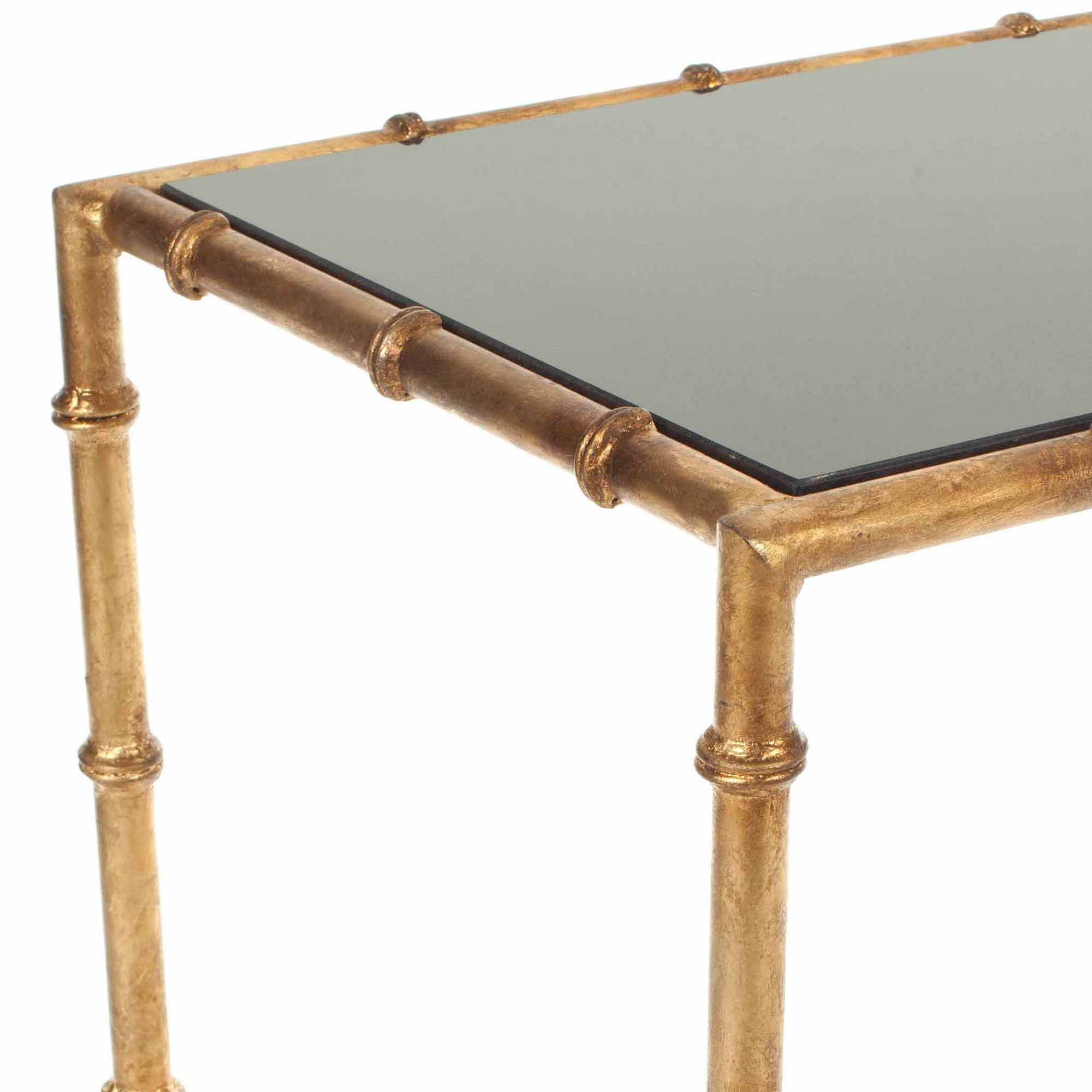 Shop SAFAVIEH at . Save Money. Live Better. SAFAVIEH Chandler 21 in. H Cross Base Accent Table, Gold/Black Glass Recreating the classic elegance of bamboo, the glass topped Chandler Accent Table is striking in both its workmanship and simplicity. A crossed base and graceful curved legs are sculpted of iron and finished in the warm matte gold patina for a naturally glamorous look. For over 100 years, SAFAVIEH has set the standard for finely crafted rugs and home furnishings. Begin your rug, furniture, lighting, outdoor, and home decor search and discover over 100,000 SAFAVIEH products today.