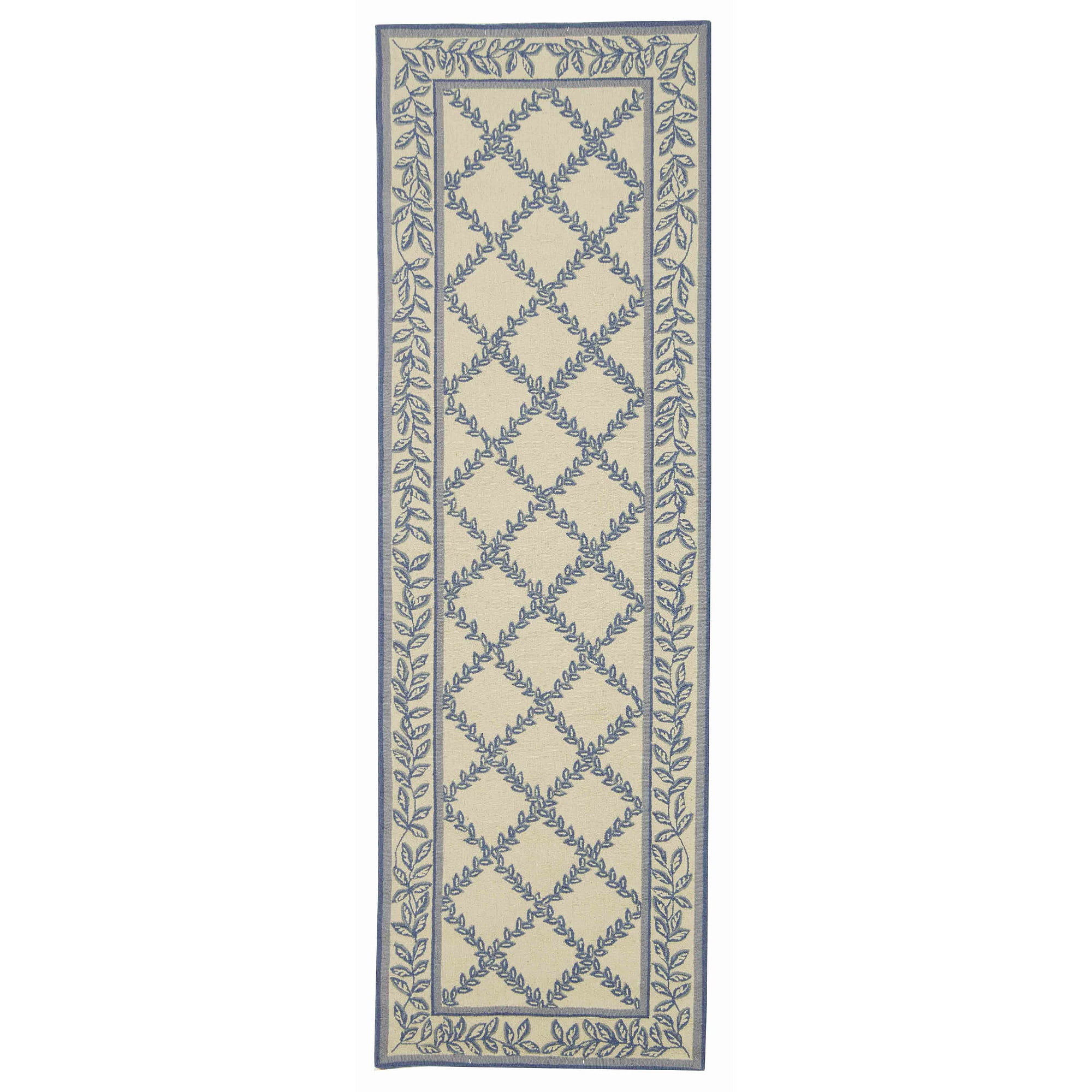Color: Ivory/Light Blue Size: 2’6″ x 12′ Runner Hand Hooked in China Pile Height: 0.25 in. Cotton backing, rug pad (sold separately) recommended to help prevent shifting and sliding 100% Wool Pile Stylish addition for any room Accessories in lifestyle photos not included New wool rugs shed as a natural consequence of how they are made; vacuum a new wool rug 1-2 times a week for the first few weeks using a low pressure vacuum cleaner without beater bars; vacuum in the direction of the pile, not against it; do not pull loose ends or stray loops, clip them with scissors to remove Vacuum (preferably one without beater bars) regularly and spot clean; for hard-to-remove stains, professional rug cleaning is recommended; rotating your rugs every 3-6 months will protect against uneven wear from foot traffic and furniture weight Use rug protectors under the legs of heavy furniture to avoid flattening piles Avoid direct sunlight as it will cause the colors in your area rug to fade over time; place your area rug away from direct sunlight whenever possible For an instant decorating makeover, this area rug is one of the easiest and most fashionable ways to refresh a room with character and style. Please note: The images and product dimensions on our website are as accurate as possible. Due to differences in computer monitors, some rug colors may vary slightly. Lengths and widths may vary from the published dimensions. We do our best to provide you with an exact measurement, but please be advised that some variation exists. Patterns may vary slightly according to shape and size selected. Packing and shipping of your rug may cause temporary creases; these surface waves are not imperfections or damages and will gradually recede; back-rolling or reverse rolling is the fastest and easiest way to remove creases in your area rug; allow ample time for your rug to settle, these creases and waves will normally flatten out Available in multiple color and sizes For carpet-to-carpet use, we recommend placing a hold pad in-between for protection