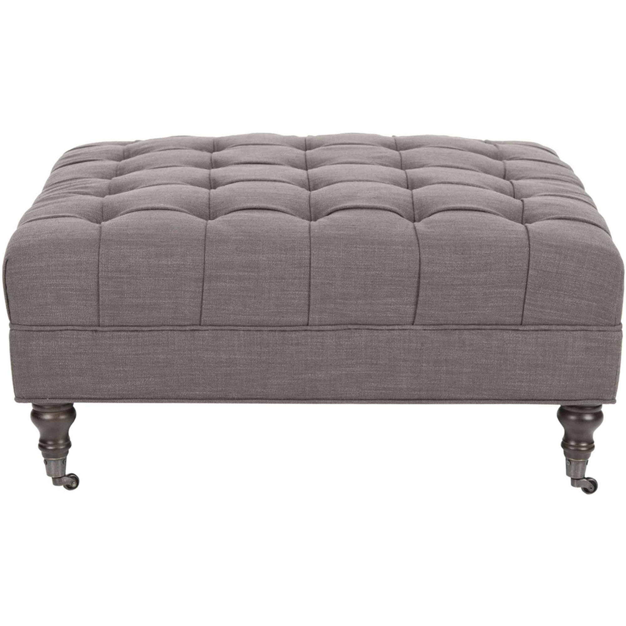 SAFAVIEH Clark Classic Glam Tufted Cocktail Ottoman w/ Casters, Charcoal Brown