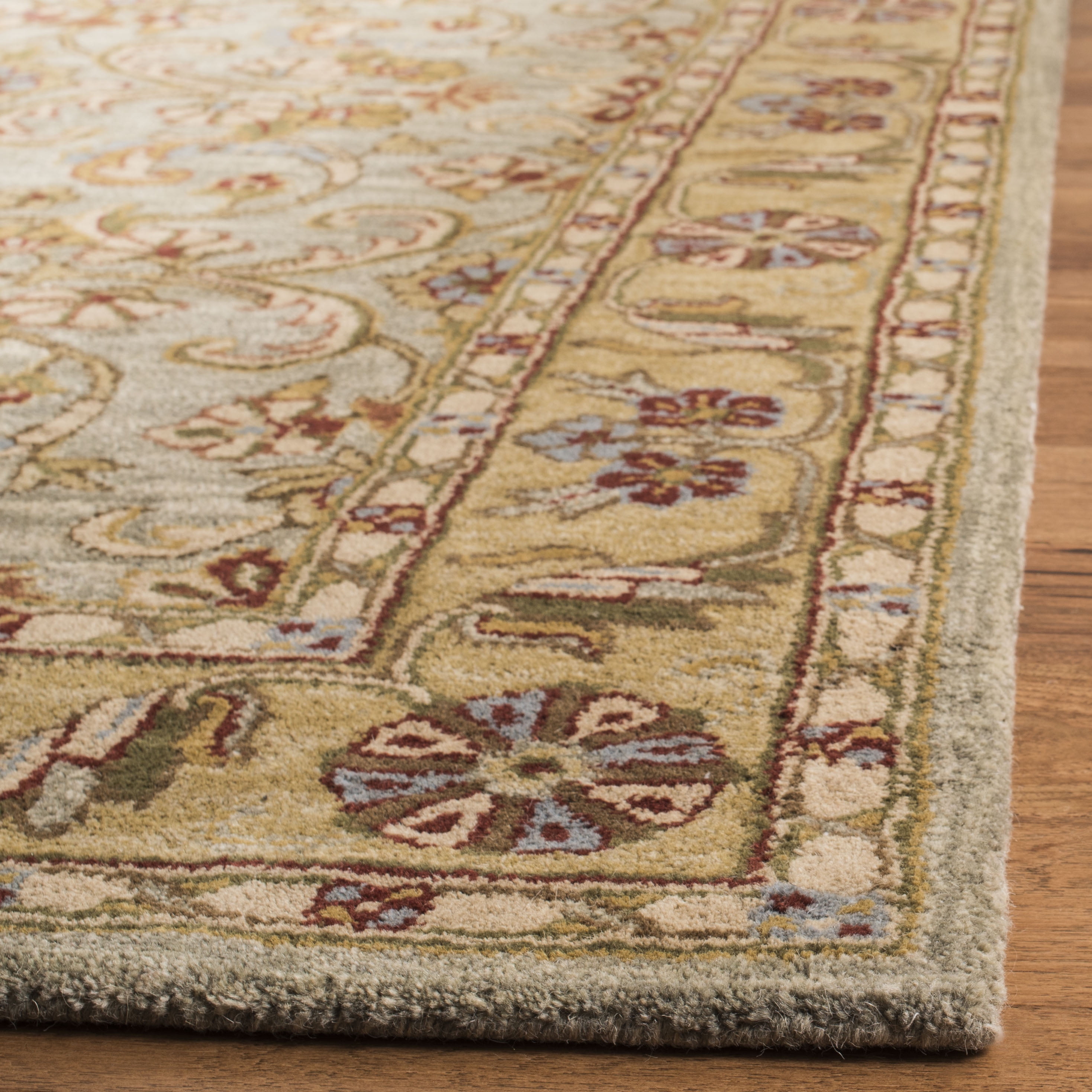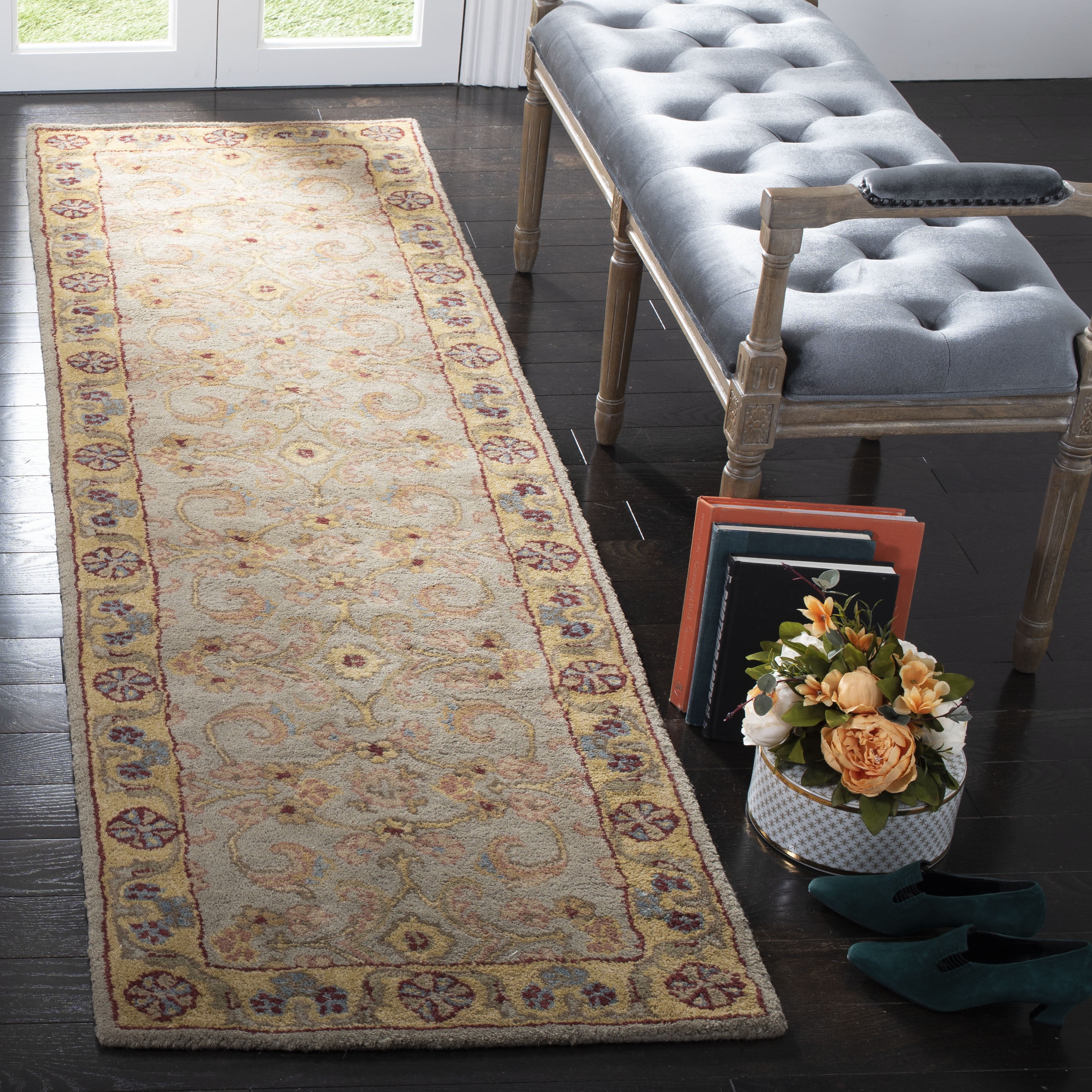 SAFAVIEH Classic Simonette Floral Wool Runner Rug, Light Green/Gold, 2’3″ x 12′