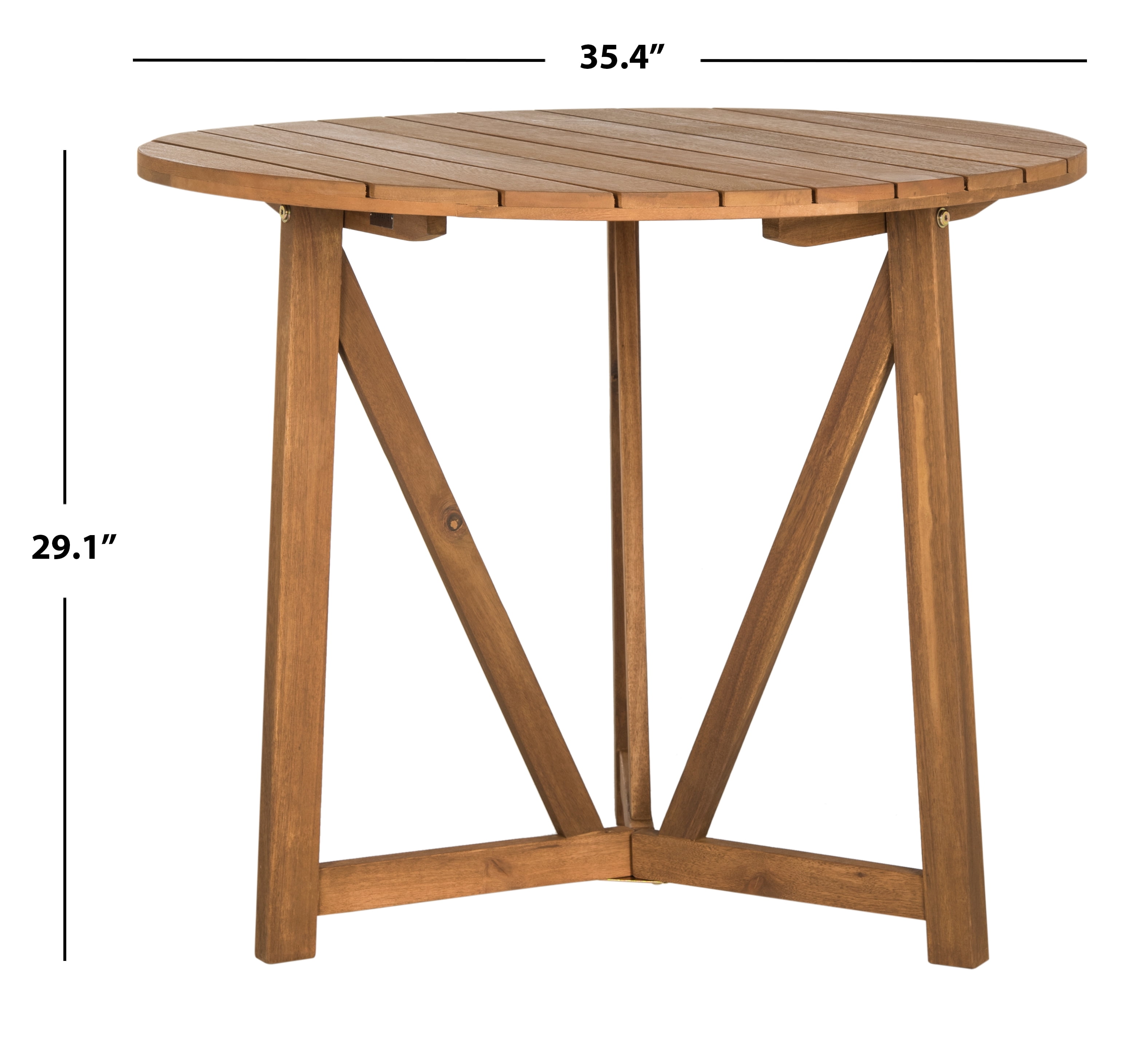 Shop Safavieh at . Save Money. Live Better. Safavieh Cloverdale Outdoor Patio Round Table – Natural Perfect for plates of grilled favorites or an extra tray of mojitos, this round table is the ideal outdoor companion. This natural beauty is crafted with natural acacia wood and features brass details to blend seamlessly into any outdoor décor.