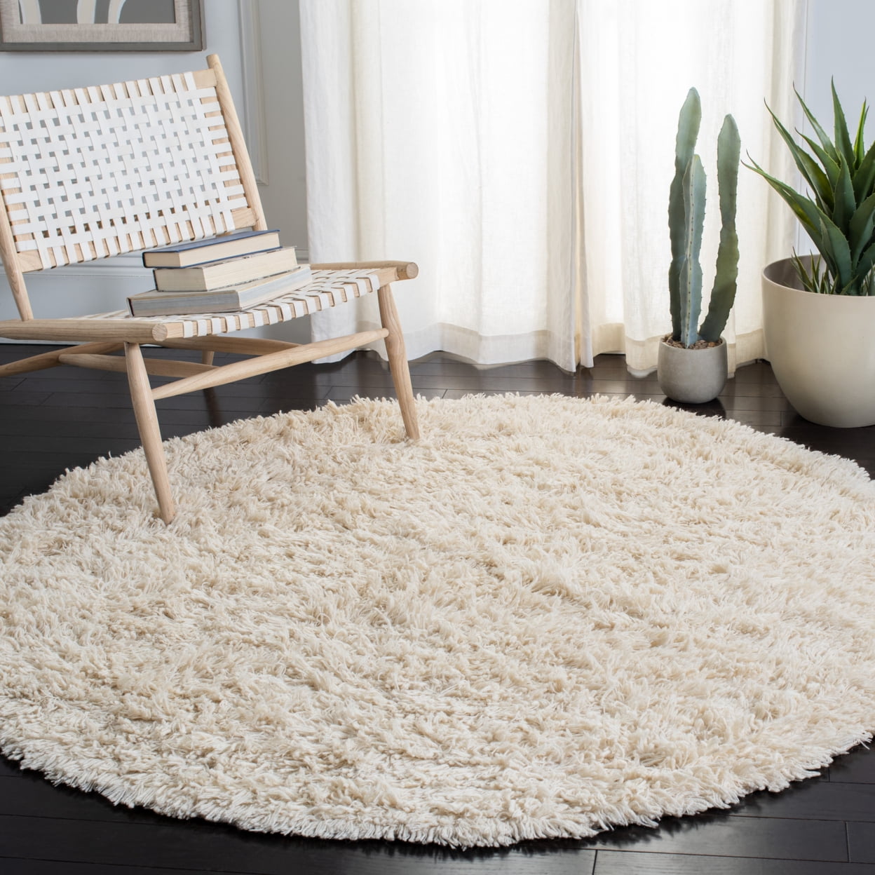 Soft and decorative high pile Carmel Shag rugs from Safavieh are brimming with understated elegance Hand-tufted of pure wool in a thick and thin pile Carmel shag rugs are plush and luxurious and the perfect complement to casual interiors with a west coast vibe. Material:100% Wool Pile Product Width:6′ Product Length:6′ Collection:Carmel Shag