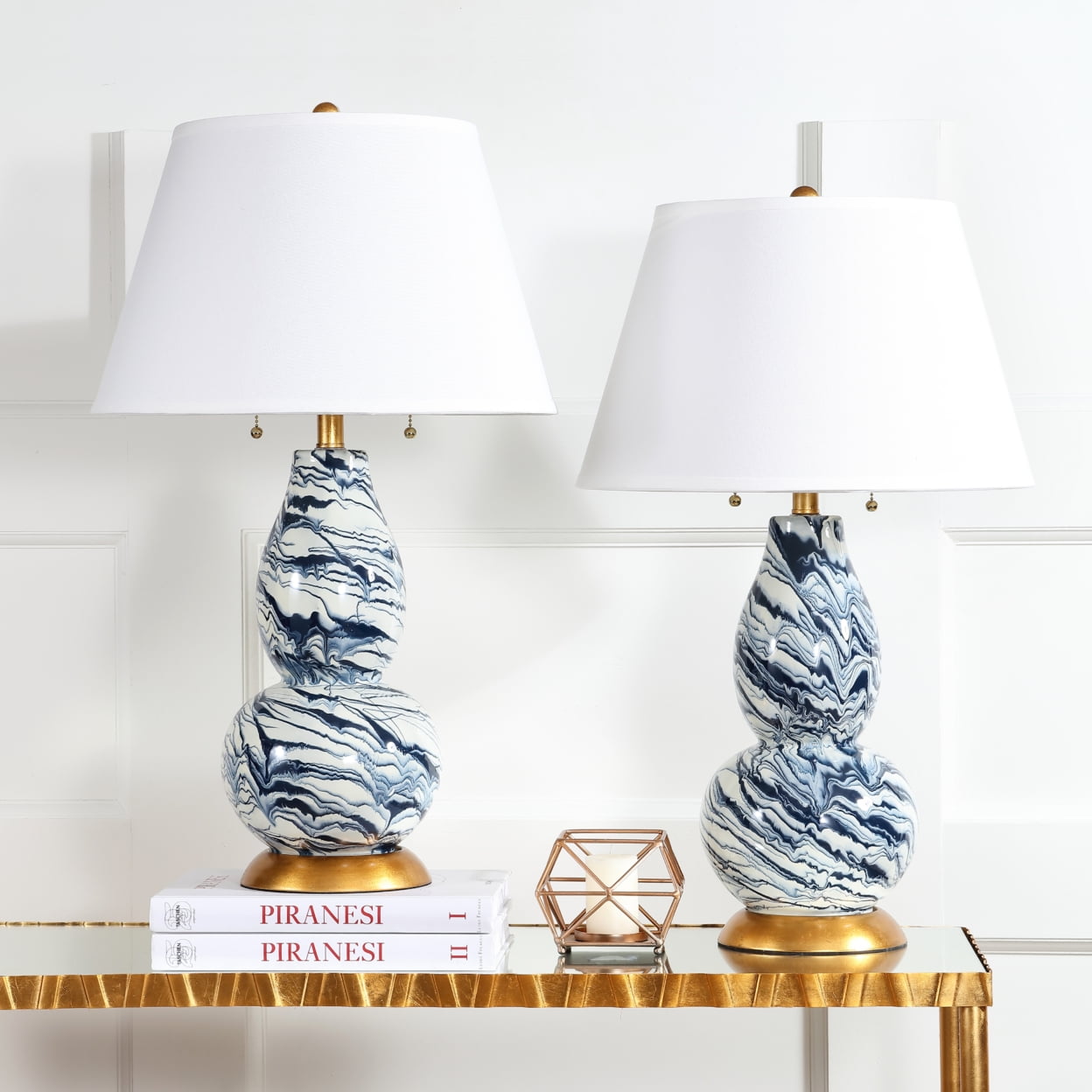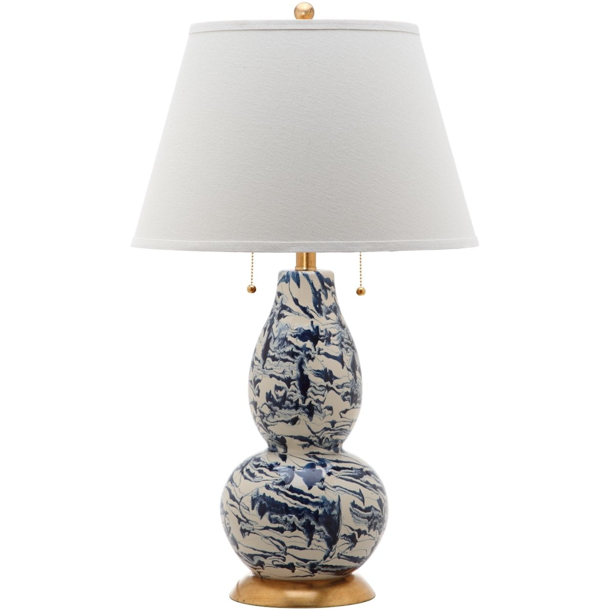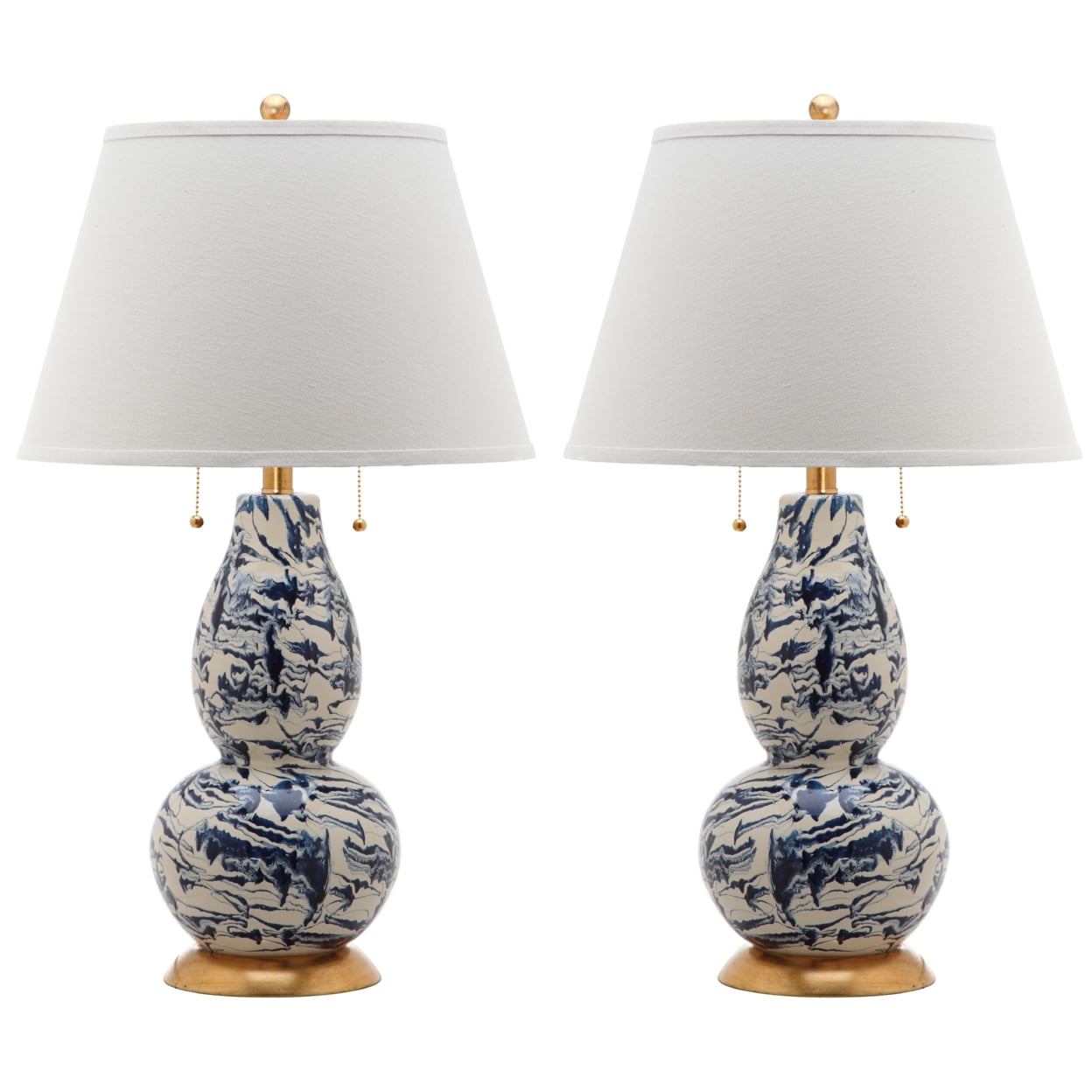 Shop Safavieh at . Save Money. Live Better. SAFAVIEH Color 28 in. 4-Lt. Traditional Gold Table Lamp with White Cotton Shade, Set of 2 Give your home the sophisticated designer look with this elegant Color Swirls Table Lamp. Crafted of glass and artfully marbleized in navy and white, this set of two lamps is ideal for any interior with its gold fittings and white cotton empire shade.