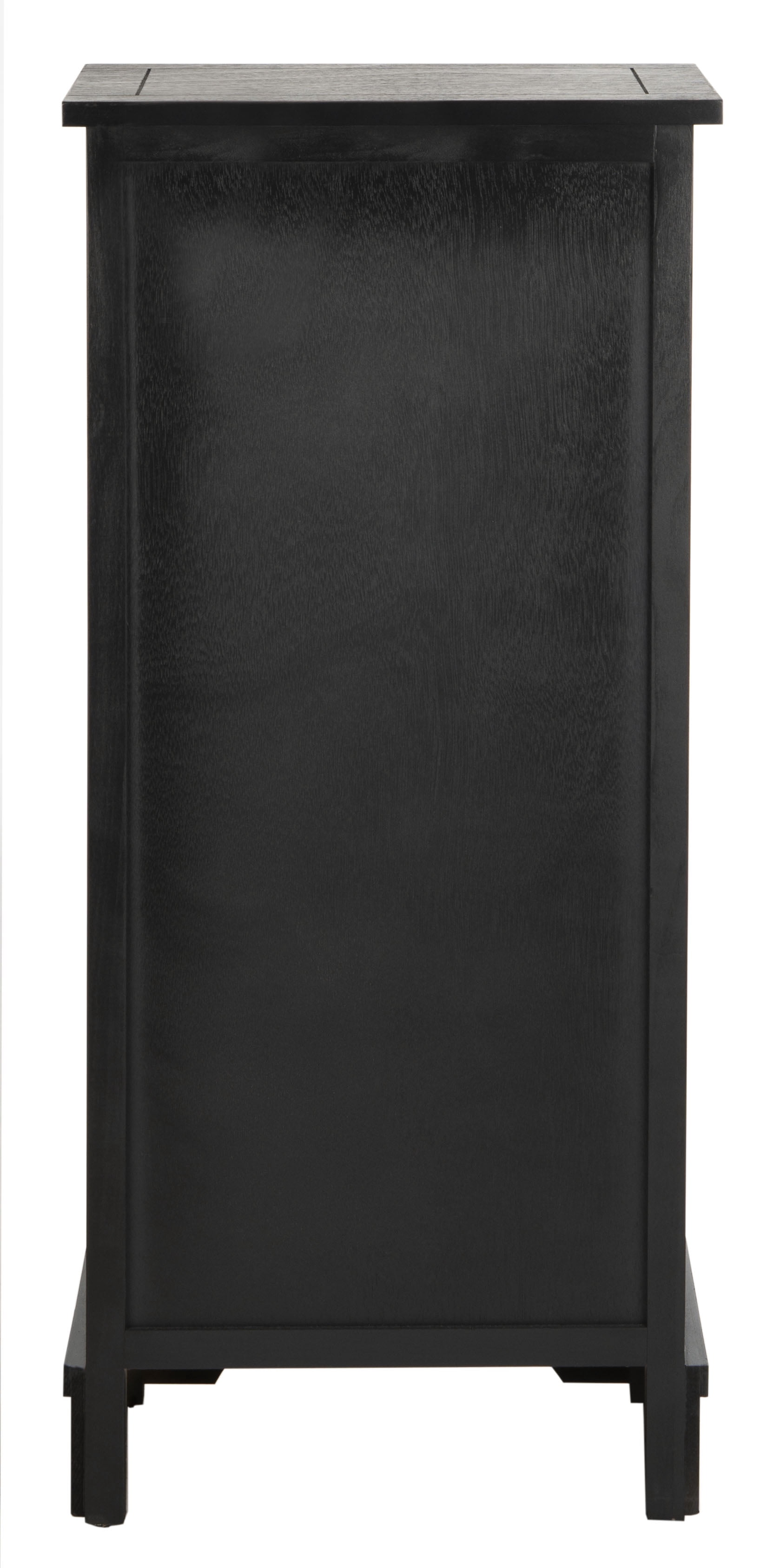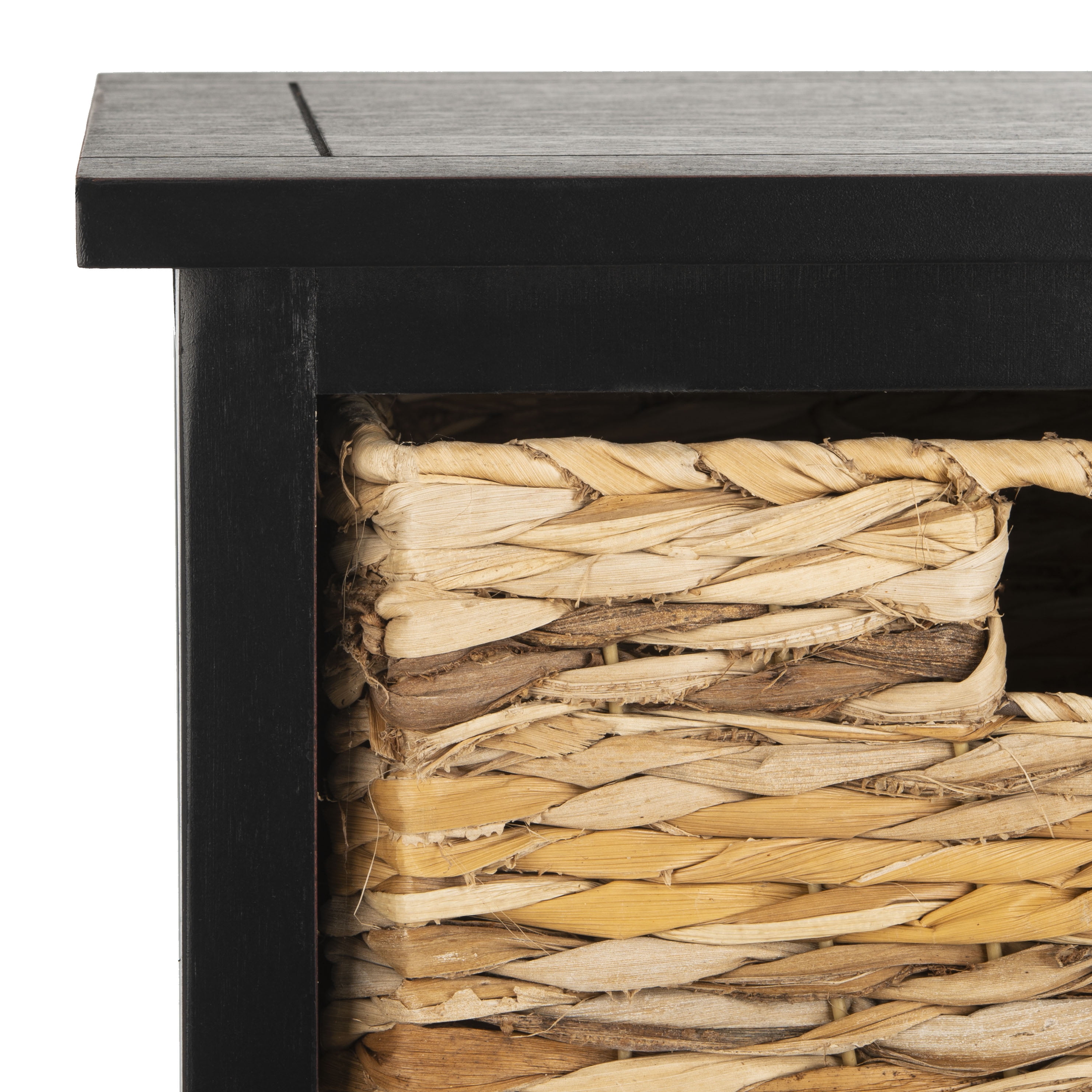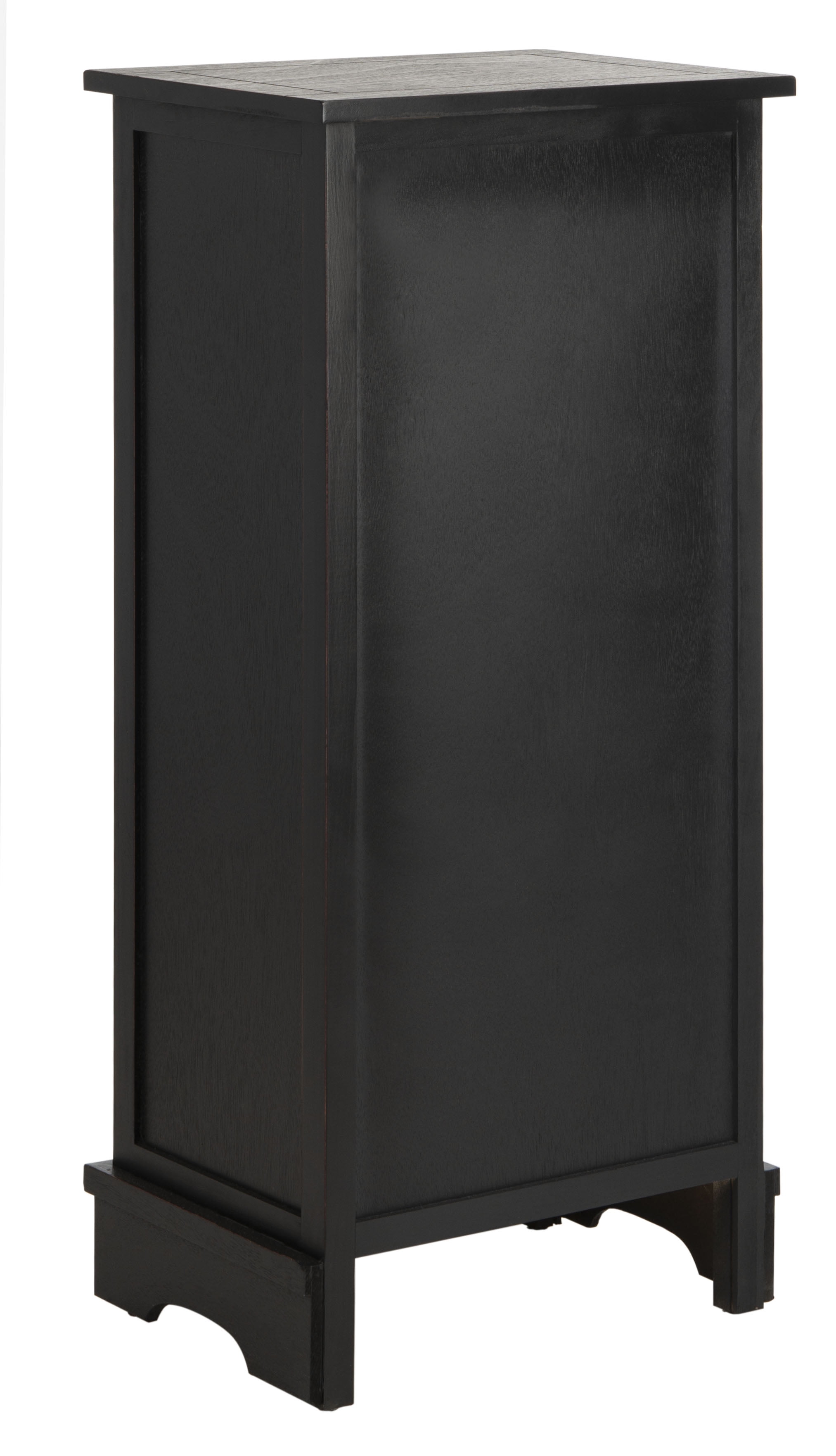 Contemporary design adds a chic look to your home Durable pine wood frame for long lasting longevity No Assembly Required Color: Distressed Black Item Dimensions: 15.9 in. W x 11.8 in. D x 35 in. H Basket Dimensions: 12.5 in. W x 10 in. D x 5.7 in. H Features 2 wicker baskets & a closed-door cabinet for your storage use Item Weight: 22 lbs. Weight Capacity: 200 lbs Wood is a natural material with variations of color shade, configuration, streaks, and grain structure. Each individual piece of Safavieh furniture has characteristic markings that will differ from photo and showroom samples. Regular attention and maintenance of fine furniture can ensure its beauty for years to come. Always use felt pads under all articles to prevent discoloration or softening of the lacquer. Plastic and rubber bases on items can discolor wood. Accessories in life style photo(s) not included Please note: The images and product dimensions on our website are as accurate as possible. Due to differences in computer monitors, some furniture colors may vary slightly. Lengths and widths may vary from the published dimensions. We do our best to provide you with an exact measurement, but please be advised that some variation exists. Dust regularly with a soft, dry cloth. Never use oiled or treated cloths on lacquered finishes. Some finishes can be wiped with a damp (not wet) cloth, followed at once by rubbing with a dry cloth to remove fingerprints and smudges. For persistent spots, gently clean with a soft cloth and a solution of water and mild soap, make sure to wipe dry. Use adhesive felt pads, coasters and placemats to protect your furniture.