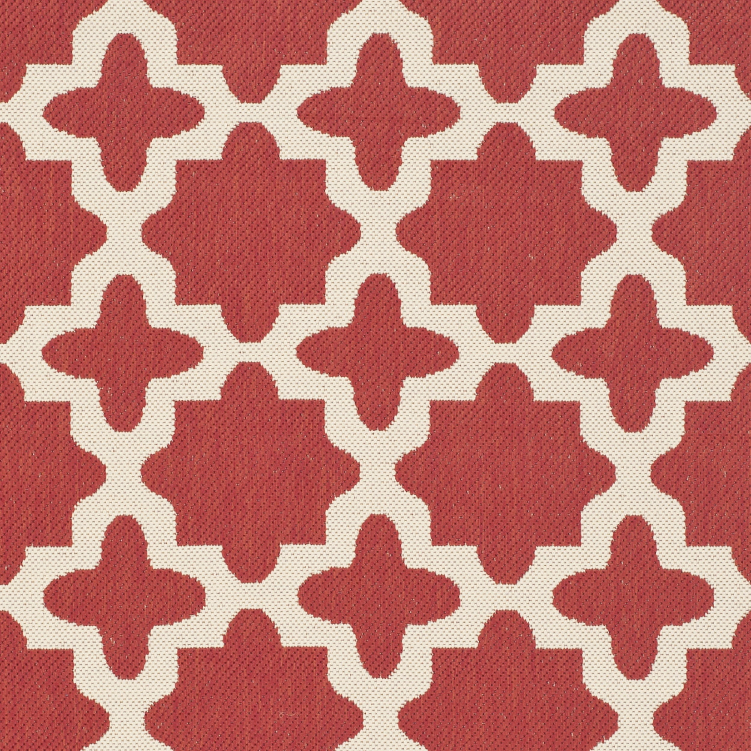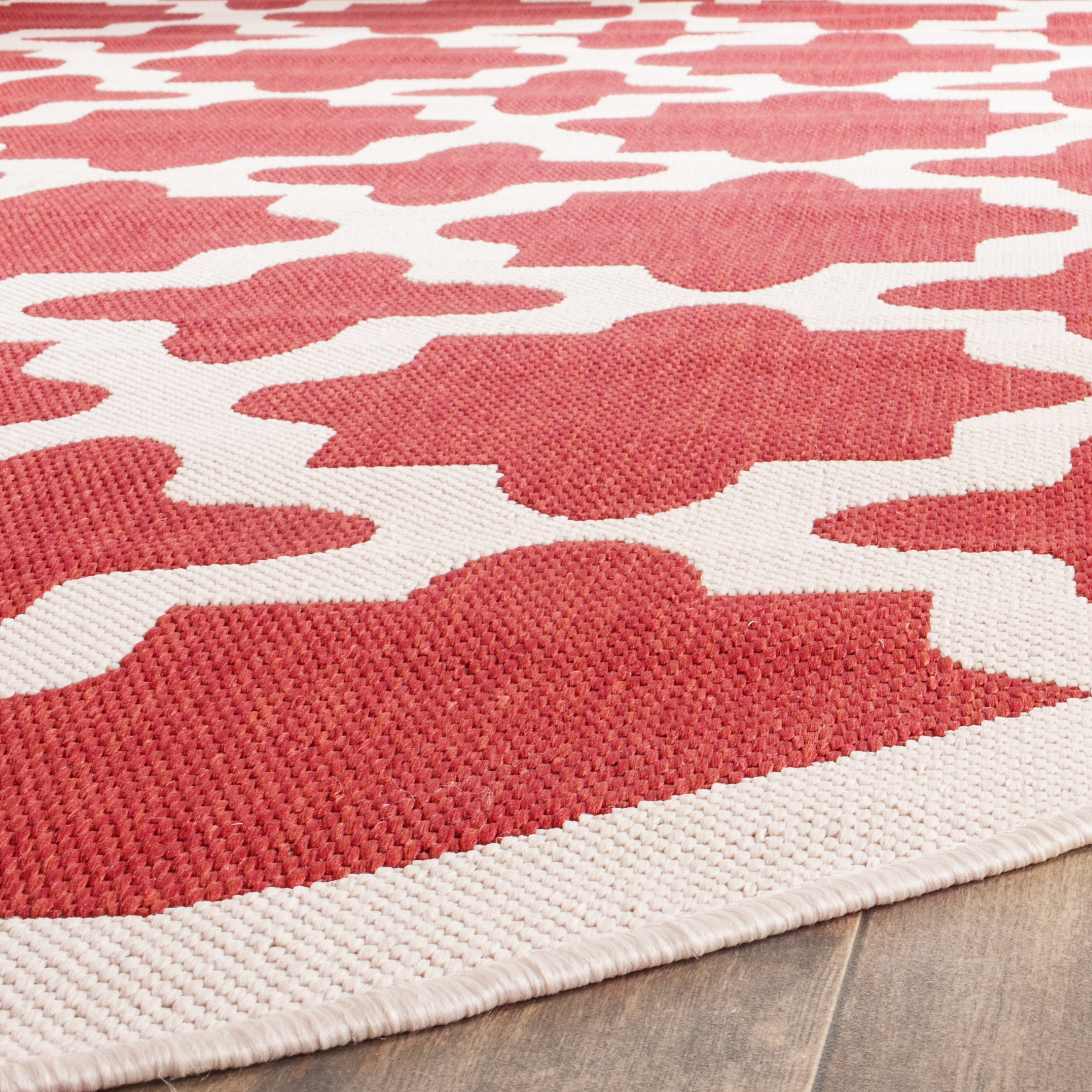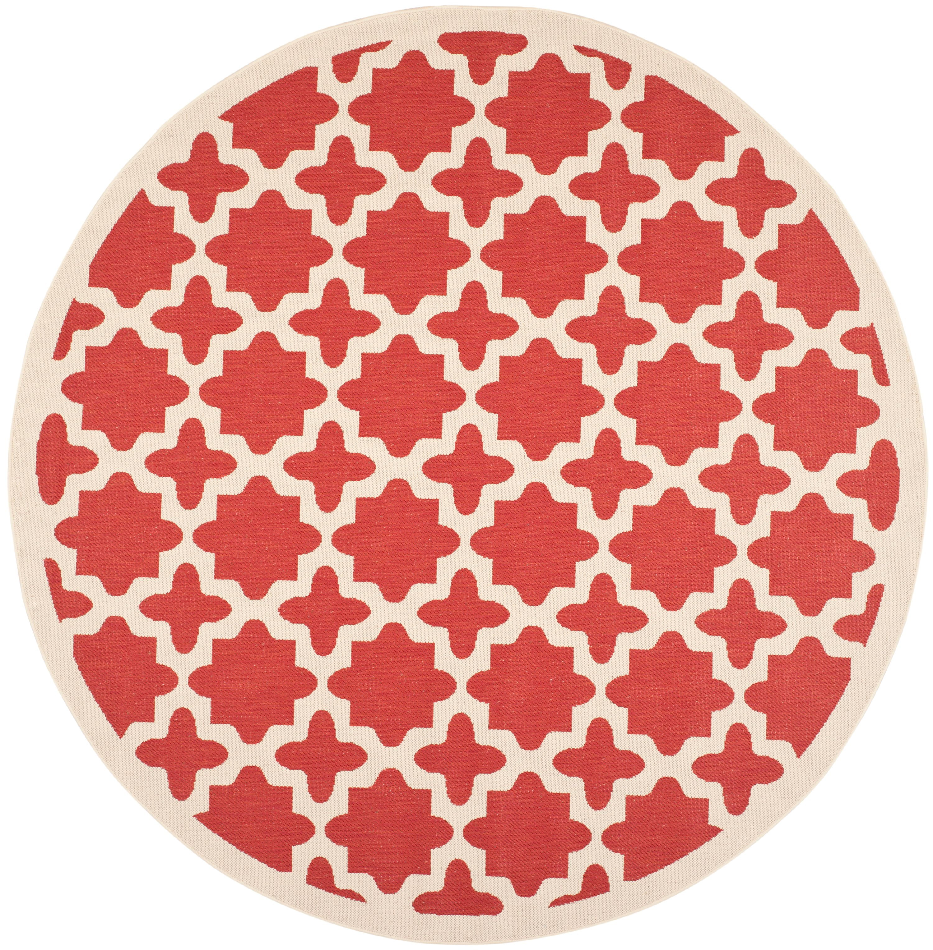 SAFAVIEH Courtyard Amanda Geometric Indoor/Outdoor Area Rug, 7’10” x 7’10” Round, Red/Bone