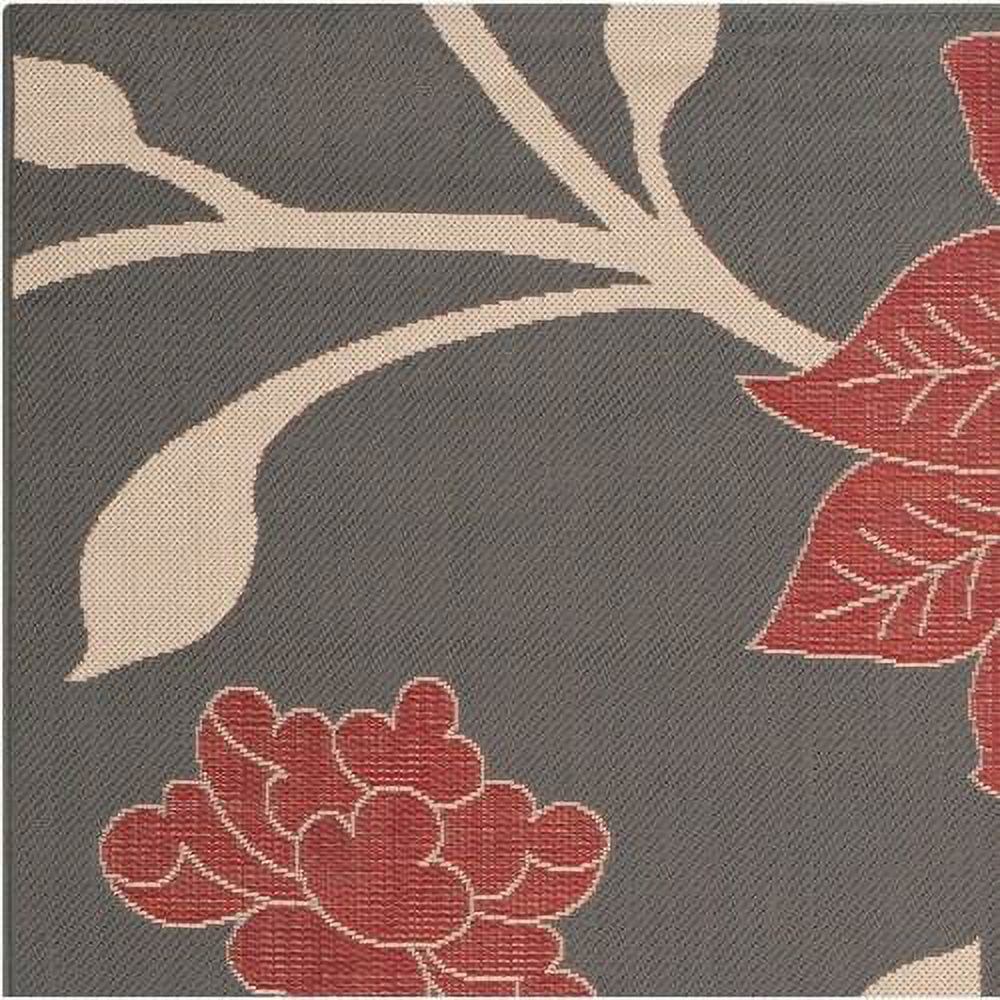 SAFAVIEH Courtyard Tyson Floral Indoor/Outdoor Area Rug, Anthracite/Red, 6’7″ x 9’6″