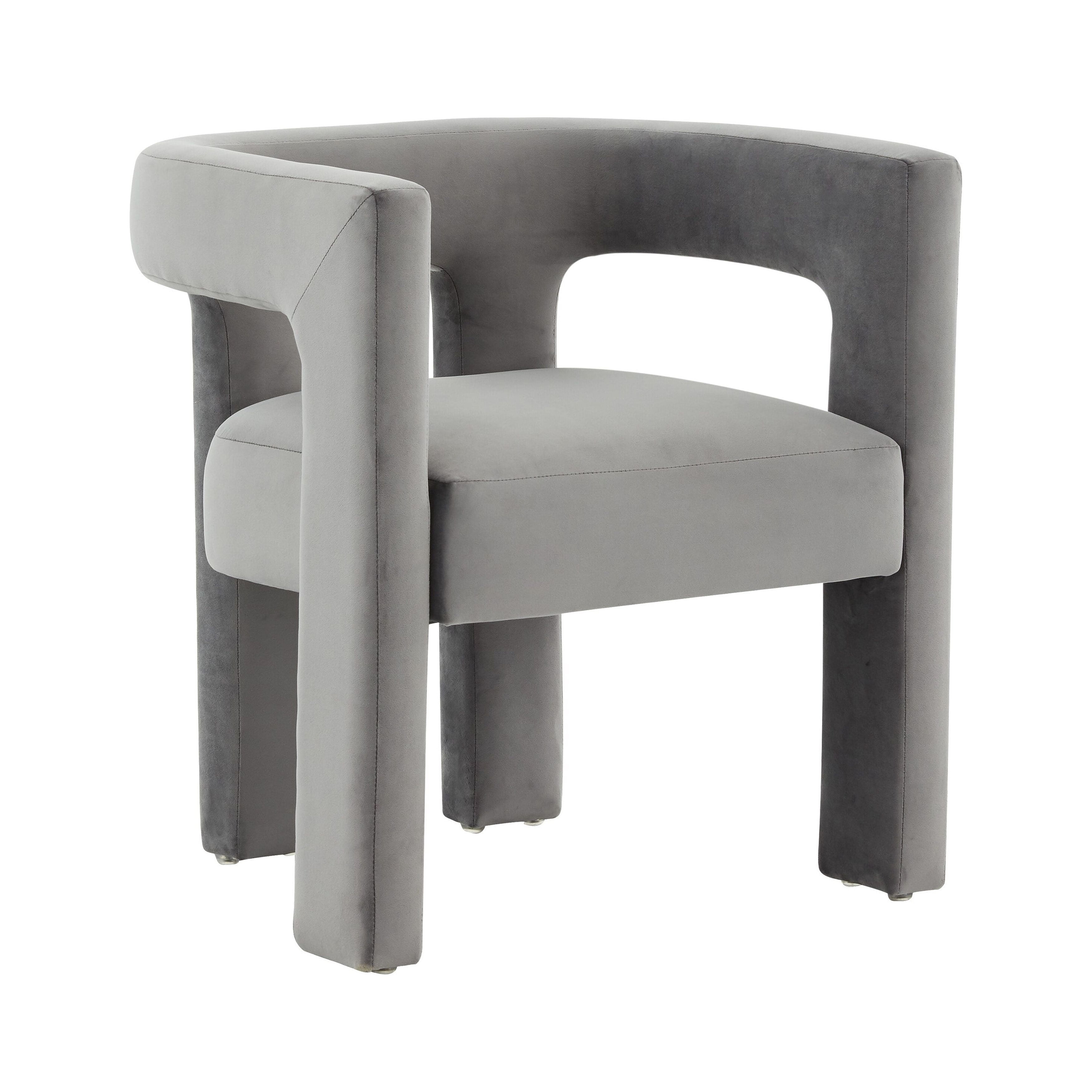 Durable fabric frame for long lasting longevity. No assembly required Color: Slate Grey Product Dimensions: 24.75 in. W x 20.75 in. D x 26.75 in. H Weight Capacity: 275 lbs Wood Content: P2 Plywood/Solid Larch Wood Fabric Content: Velvet (100% Polyester) Body Material: Wood Seat Construction: Web Suspension Fill Material: 100% Polyurethane Foam Foam Density: 1.6 lbs/cu’ft Cushion Thickness: 6.5 in. Seat Dimensions: 18.3 in. W x 18.3 in. D x 18.3 in. H Arm Dimensions: 3.3 in. W x 20.8 in. D x 26.8 in. H
