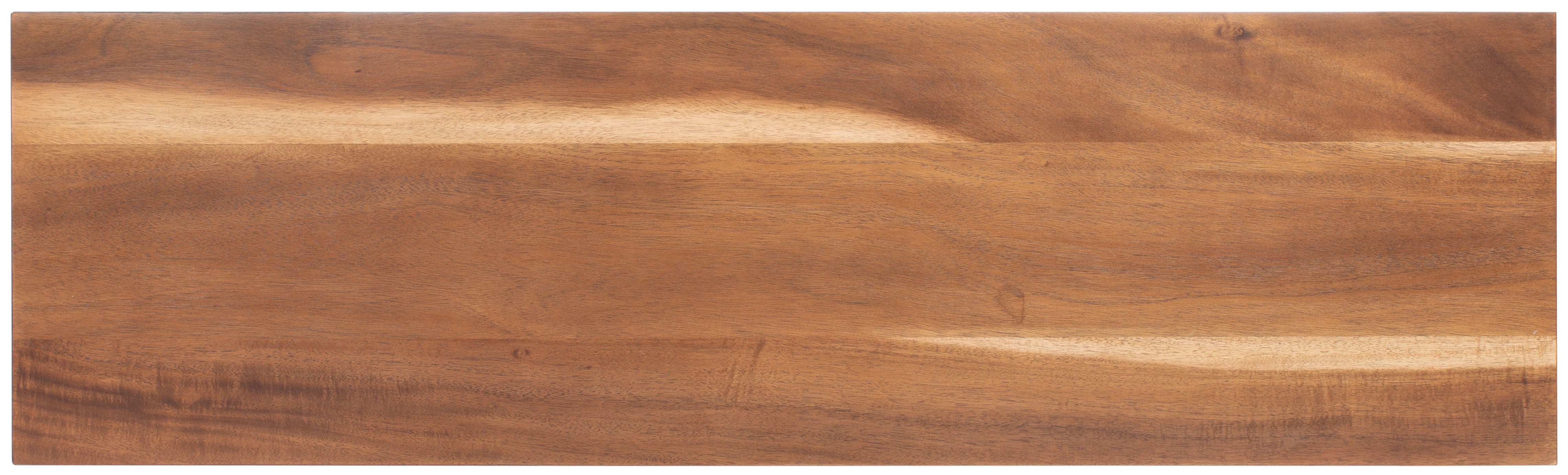 Durable wood frame for long lasting longevity Minor assembly needed Color: Natural Acacia Overall Dimension: 47.6 in. W x 14 in. D x 18 in. H Item Weight: 38.81 lbs. Weight Capacity: 100 lbs. Finish Surface Treatment: Veneer Dust regularly with a soft, dry cloth. Never use oiled or treated cloths on lacquered finishes. Some finishes can be wiped with a damp (not wet) cloth, followed at once by rubbing with a dry cloth to remove fingerprints and smudges. For persistent spots, gently clean with a soft cloth and a solution of water and mild soap, make sure to wipe dry. Use adhesive felt pads, coasters and placemats to protect your furniture. Leg Height: 5.3 in. Shelf Dimensions: 15.7 in. W x 13.2 in. D x 11.4 in. H Frame Type: Wood Wood Content: Acacia Wood Veneer/ Mahagony Wood/Particle Board