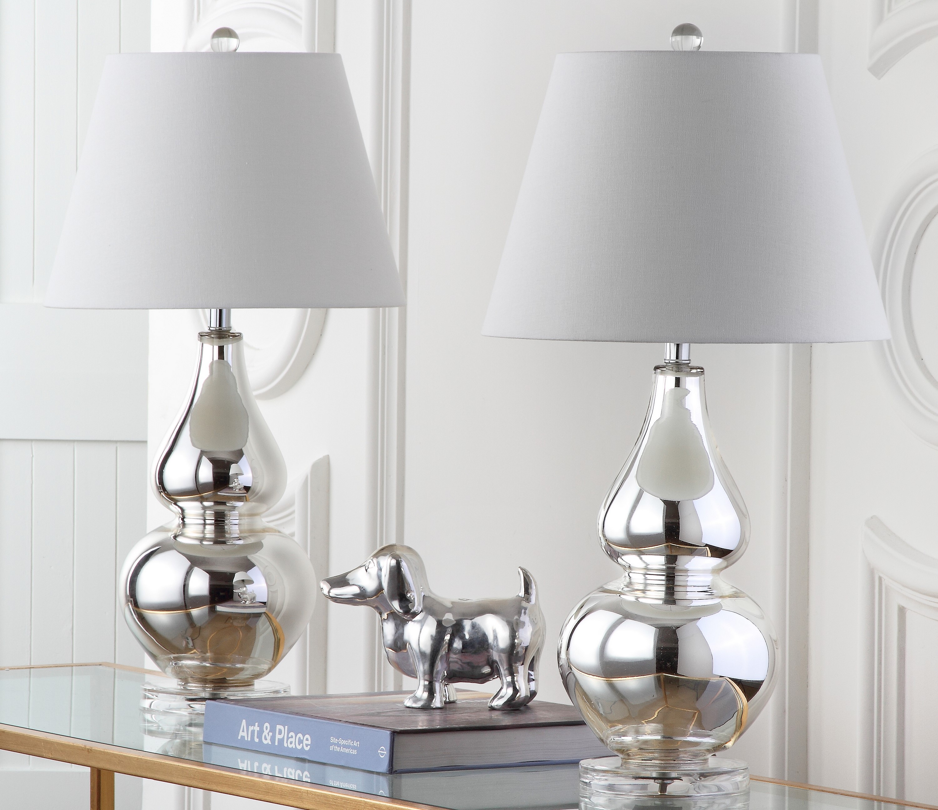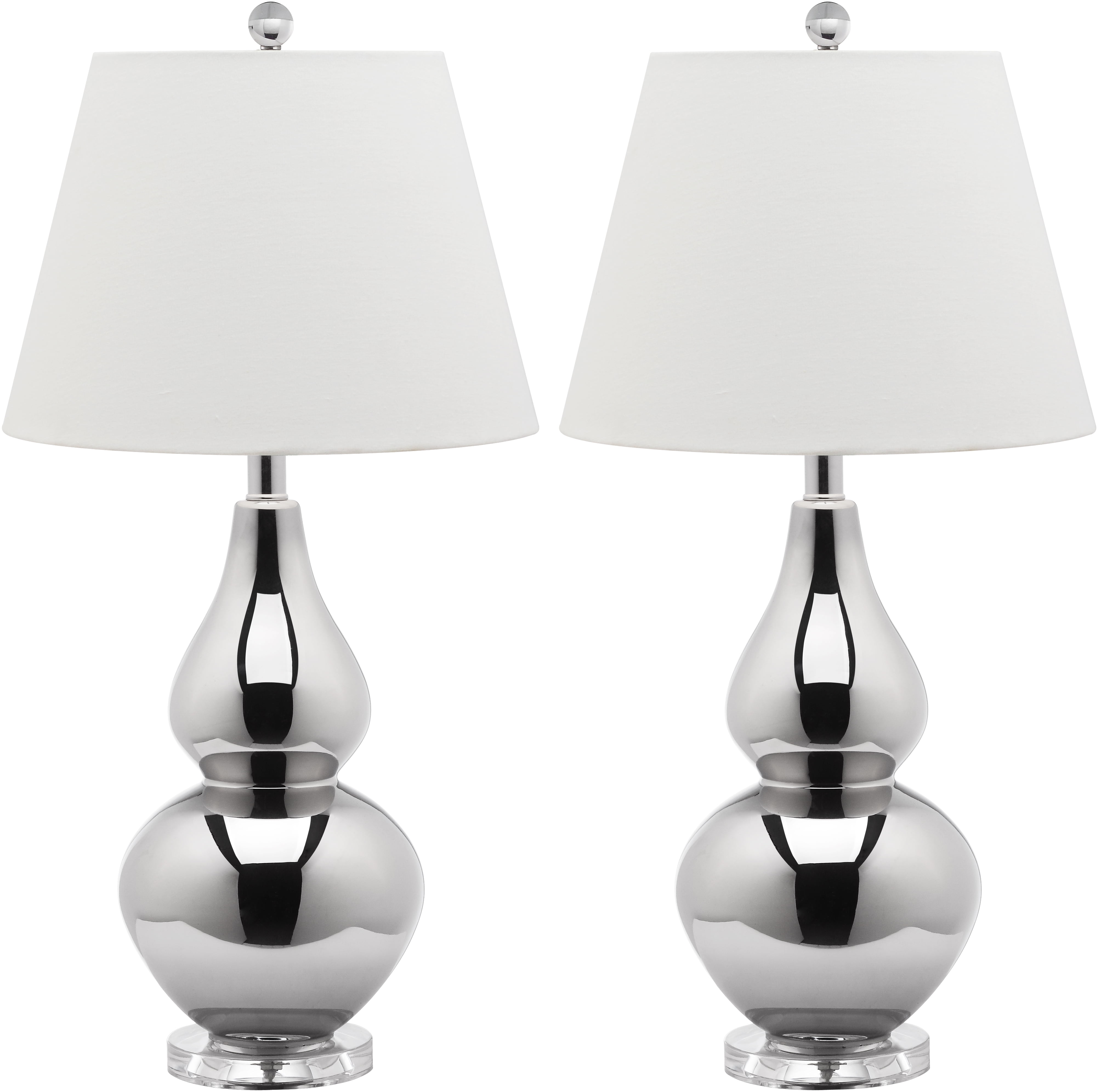 Shop Safavieh at . Save Money. Live Better. SAFAVIEH Cybil 26 in. 2-Lt. Modern Glass Table Lamp with Off-white Cotton Shade, Set of 2 Casting a high fashion glow in any room, the sparkling silver mercury Cybil Double Gourd Lamp (set of two) is effortlessly sophisticated. Cybil’s curvaceous glass body and off white cotton shade are perfect for shining the spotlight on your stylish surroundings.