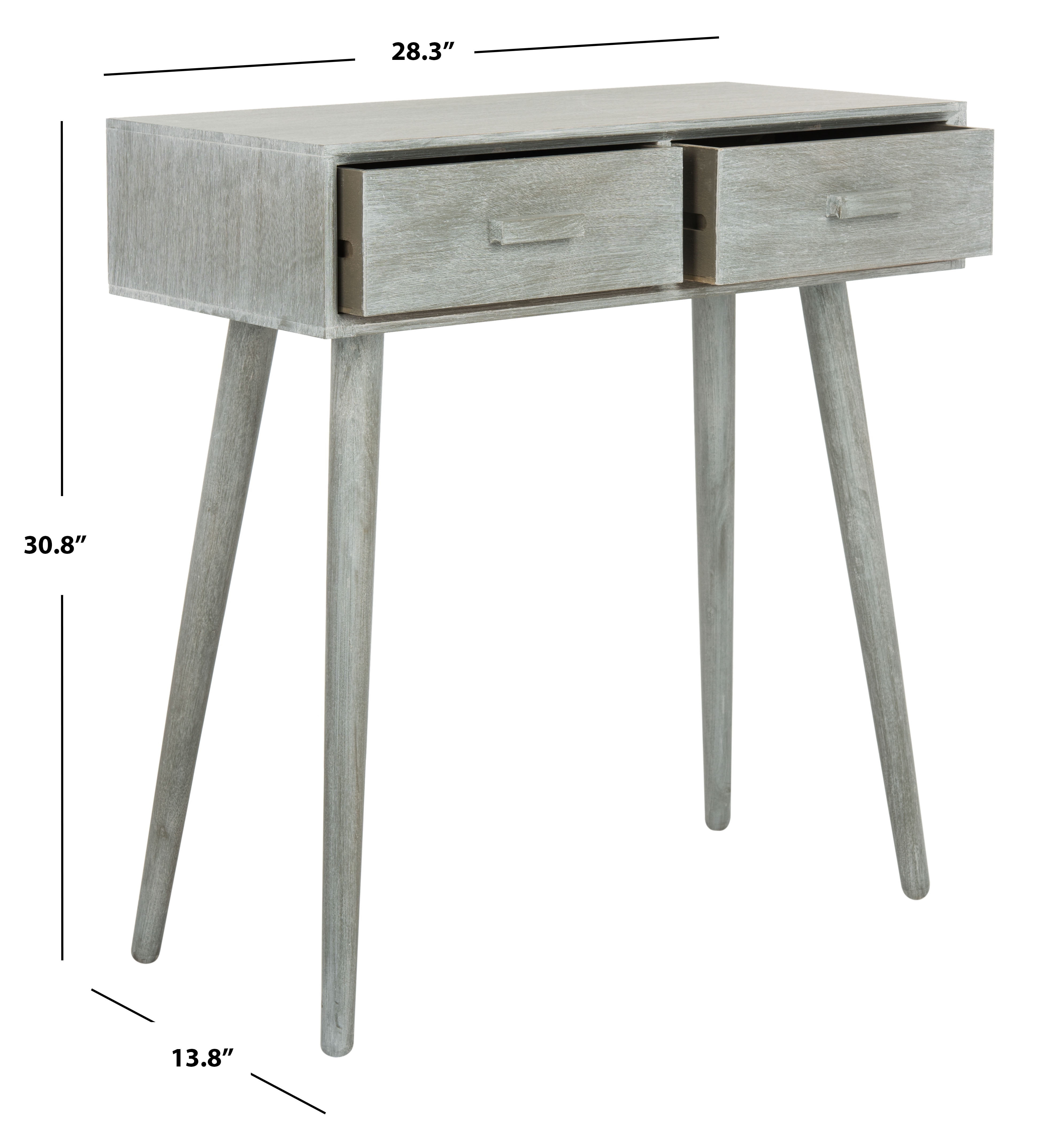 Shop Safavieh at . Save Money. Live Better. Safavieh Dean 2 Drawer Modern Solid Console Table, Slate Grey Bring the warmth of retro vintage style to any interior with this contemporary, modern Dean 2-Drawer console by Safavieh. Designed with a special water-based paint treatment, its urban slate grey finish illuminates the natural beauty of its durable pine wood blend construction. Perfect for your catch-all’s, the Dean console is the perfect addition in your home for a stylish upgrade.