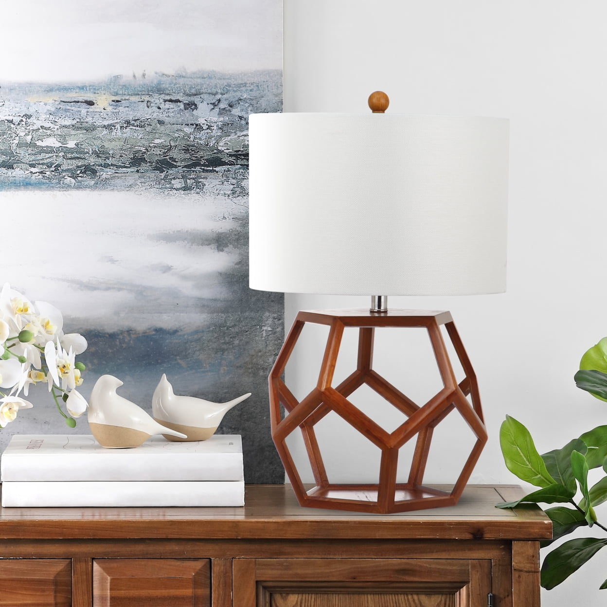 SAFAVIEH Delaney 23.75 in. H Geometric Pentagons Table Lamp, Brown