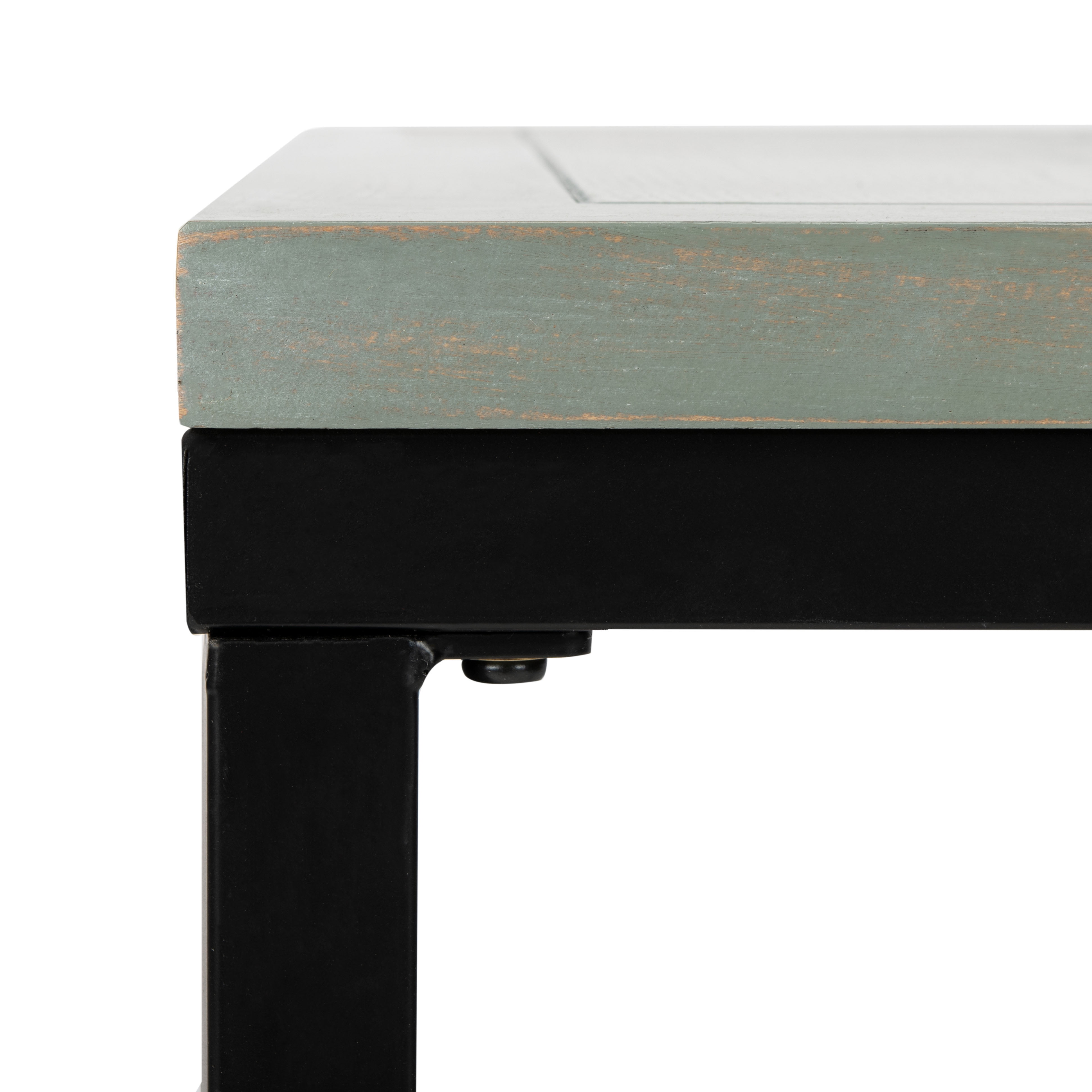 Shop SAFAVIEH at . Save Money. Live Better. SAFAVIEH Dennis Transitional Wood Side Table, French Gray With its understated transitional look, the clean lined Dennis side table is the perfect piece to refresh a room. A sophisticated take on the industrial chic movement, it is built to last from BLACK solid elm with Parson’s style metal legs and frame. Use the Dennis table beside a sofa or chair anywhere from an urban apartment or to a suburban contemporary home.