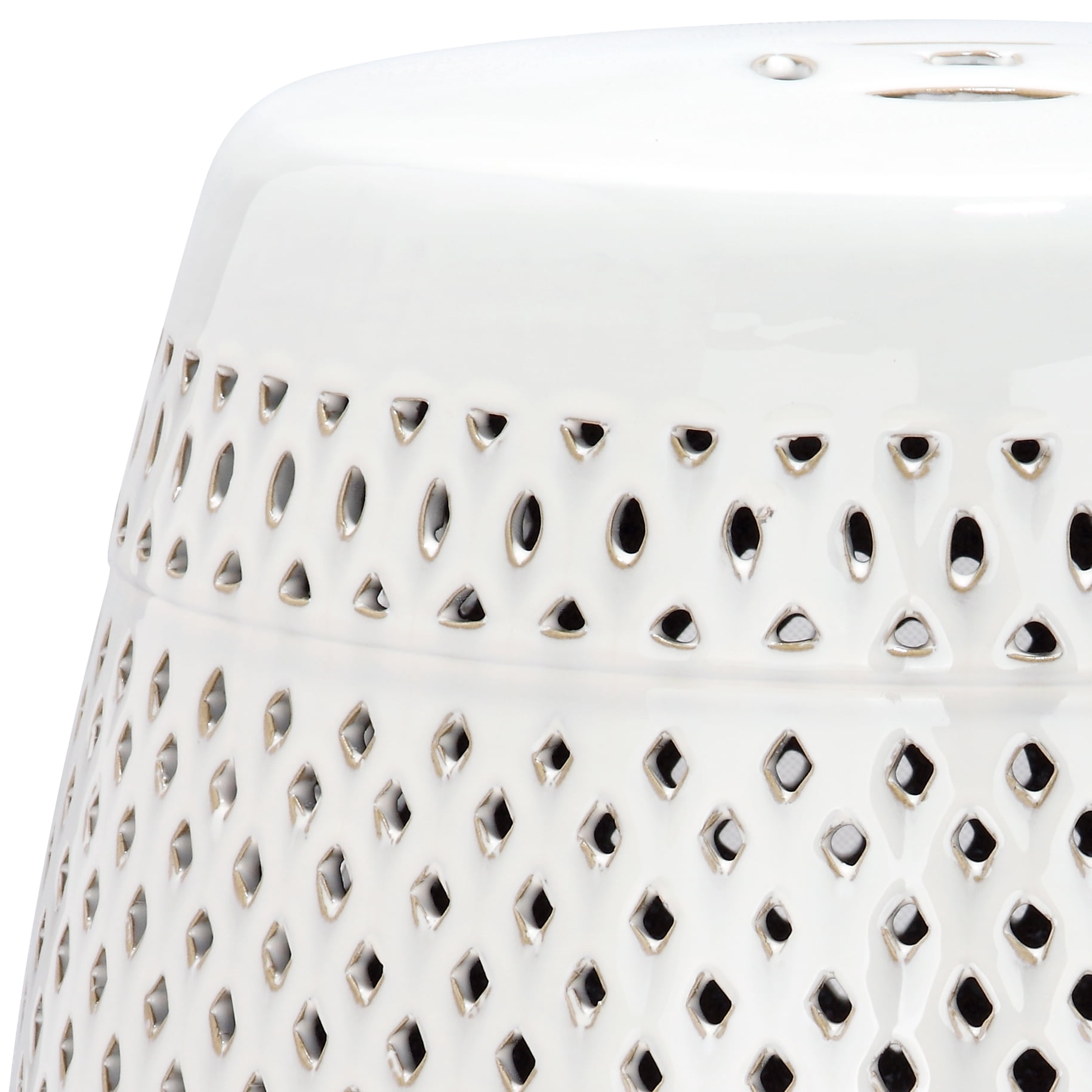 Shop Safavieh at . Save Money. Live Better. Safavieh ACS Stool Collection A fresh new interpretation of the classic Chinese garden stool, this striking white glazed ceramic design is styled with an elegant overall pierced diamond motif. Crowned with an Asian double linked coin symbol believed to bring good luck, this versatile piece will grace indoor and outdoor settings.