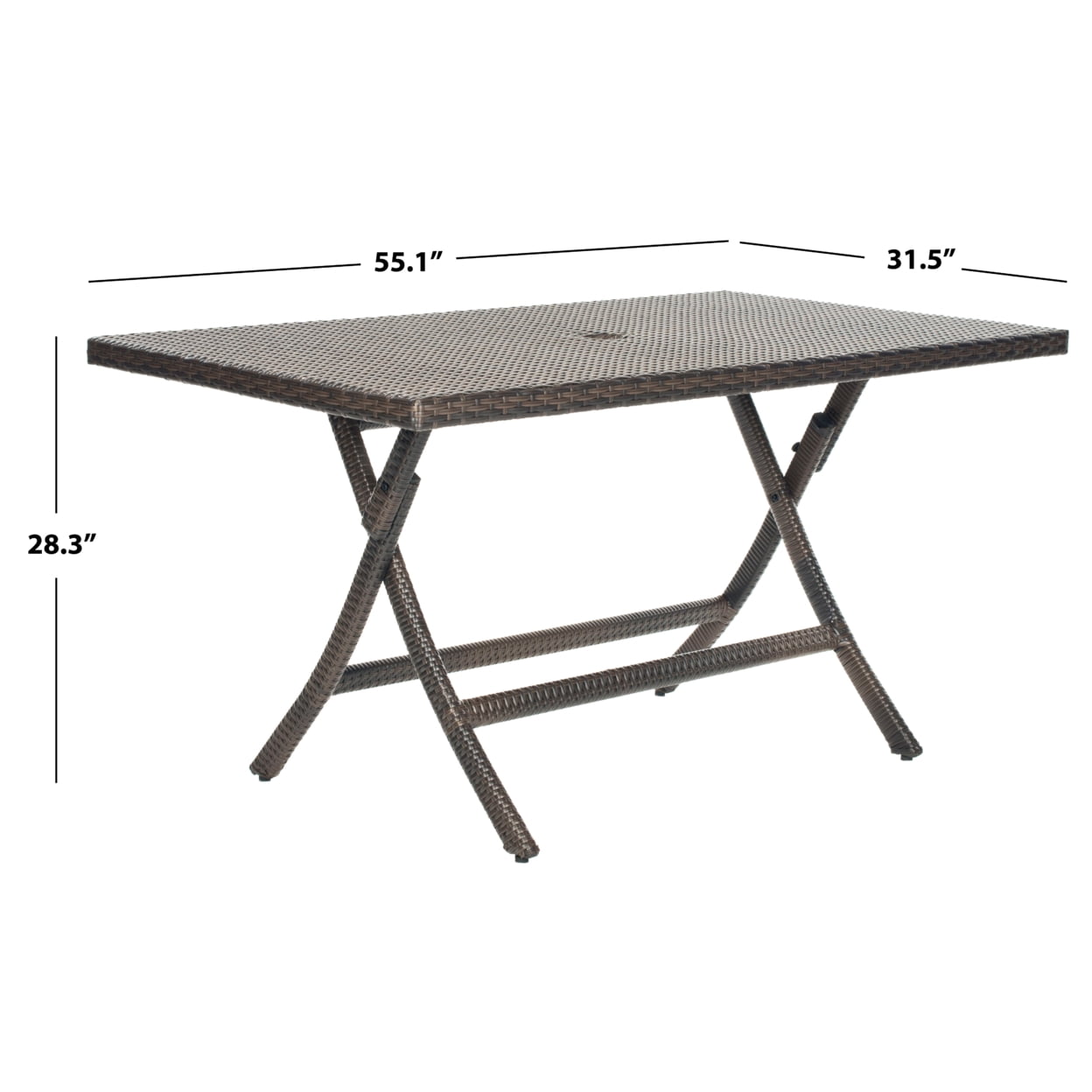 Shop Safavieh at . Save Money. Live Better. Safavieh Dilettie Outdoor Patio Rectangular Folding Table – Brown The Dilettie Folding Table guarantees hours of family fun with its sturdy rectangular form and ample space for entertaining. Crafted with rattan in a stylish brown finish, it’s the place where the best summer memories will be made.