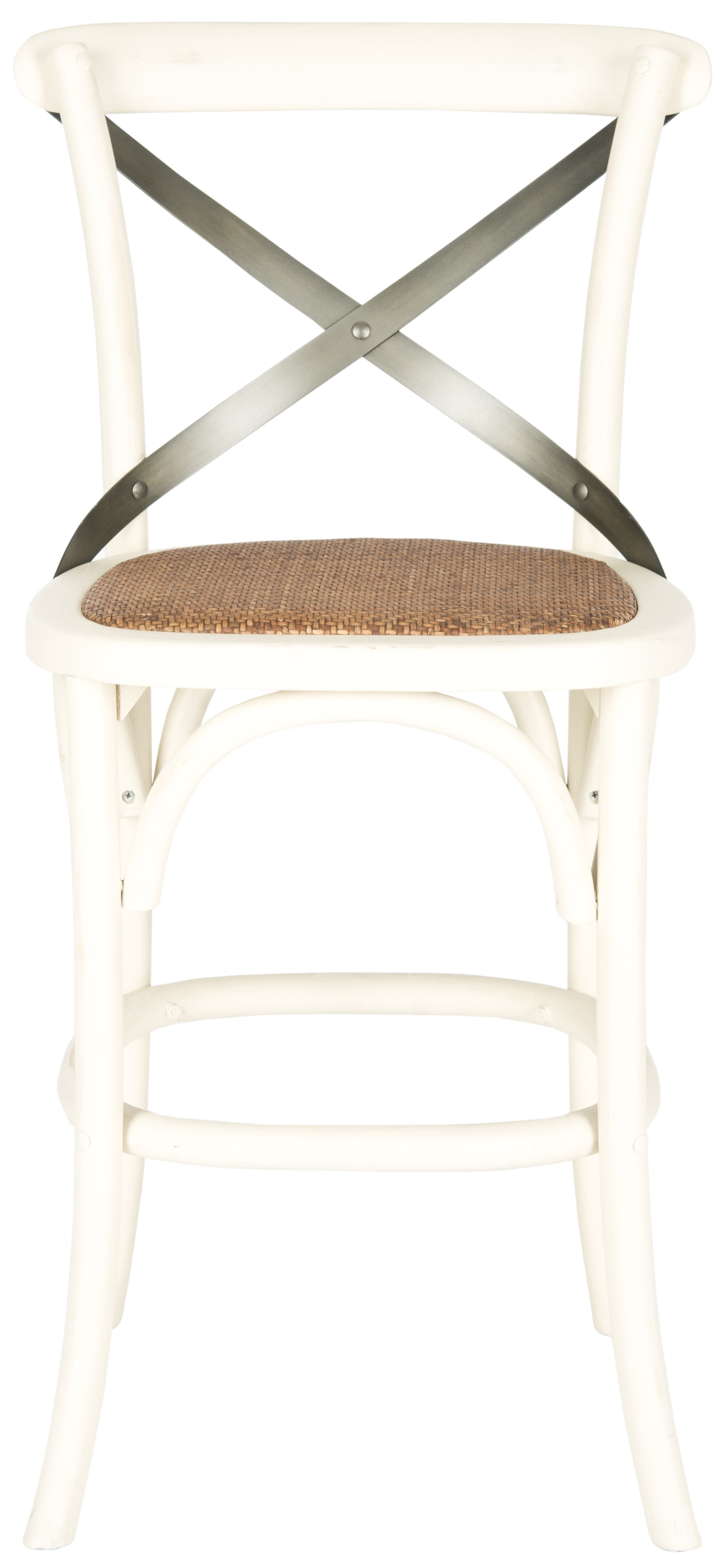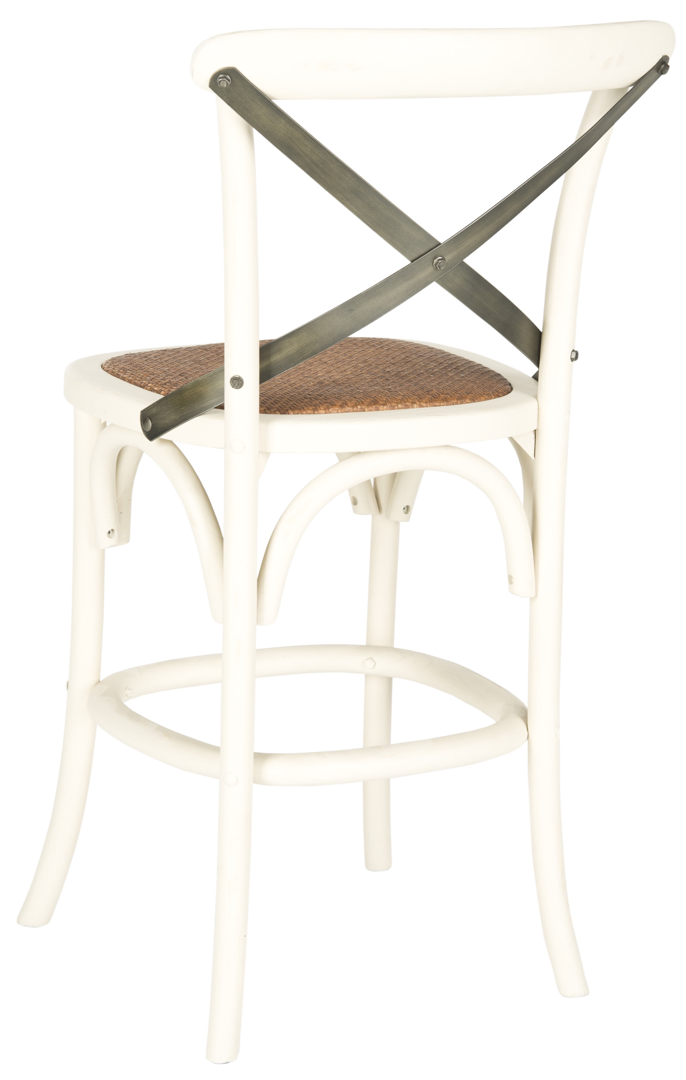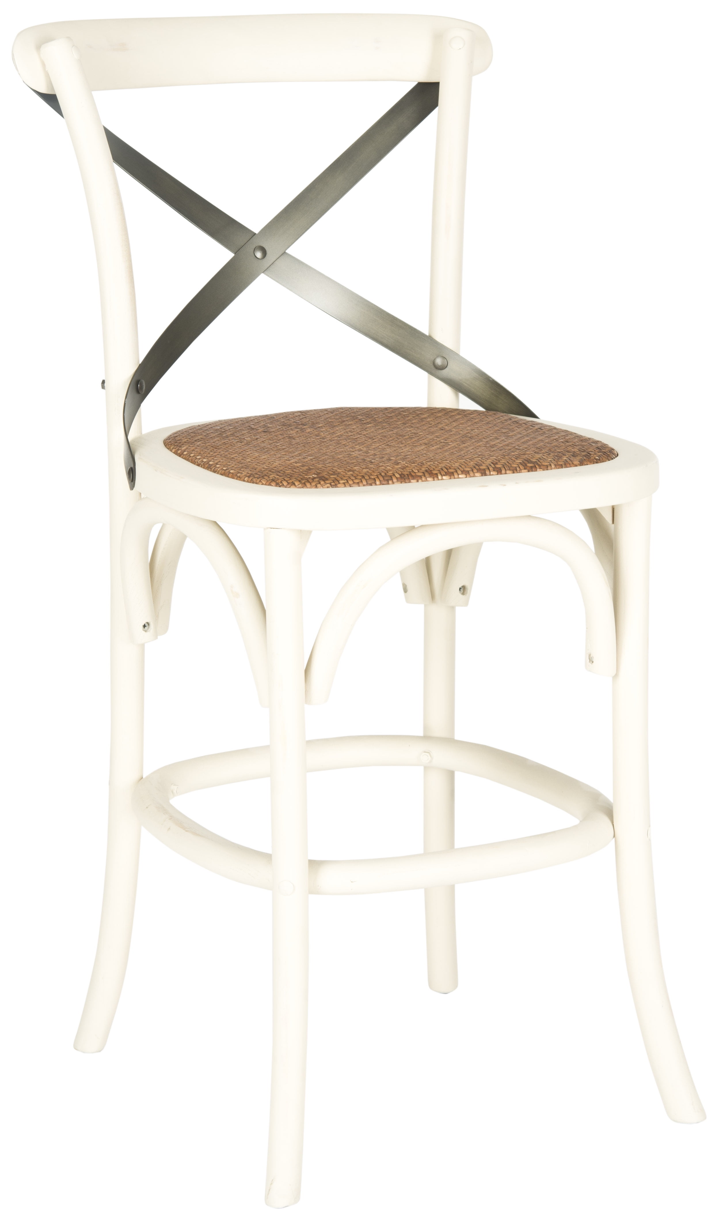 Add comfortable and stylish seating to a bar, work island or eat-in kitchen counter with this Safavieh Eleanor X-back Counter Stool. It is constructed of sturdy and durable materials and features a graceful frame and a comfortable rattan seat. This stool is made in the popular thonet style. It has a transitional and authentic cross-back arch brace in black metal. This Safavieh counter stool also has a rounded foot rest for added comfort and slightly bowed legs for added visual appeal. It can be used alone or combined with additional Safavieh stools, which are sold separately. The Safavieh Eleanor X-back Counter Stool is available in multiple colors to fit in with a variety of decors.