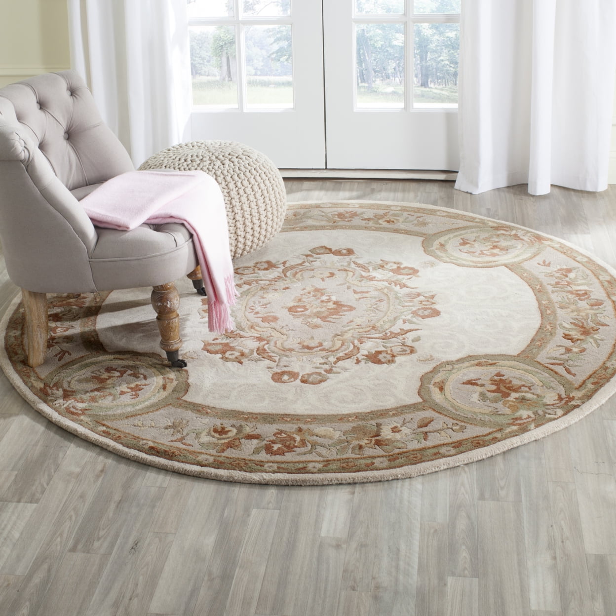 SAFAVIEH Empire Bethanie Oriental Wool Area Rug, Ivory/Light Grey, 3’6″ x 3’6″ Round