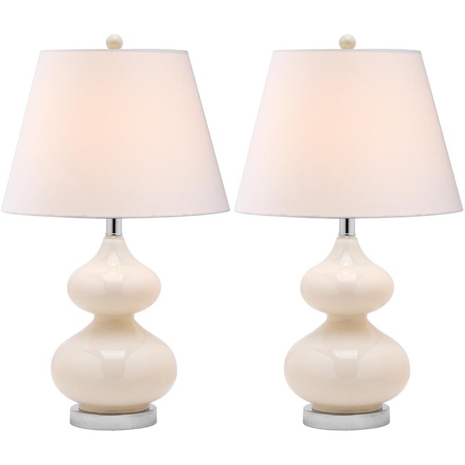 Illuminate any living space in style with the pearl white Eva Double Gourd Lamp (set of two). Topped with a matching finial and accented with silver finishes, Eva’s off-white cotton shade gives a classic touch to its curved glass body.