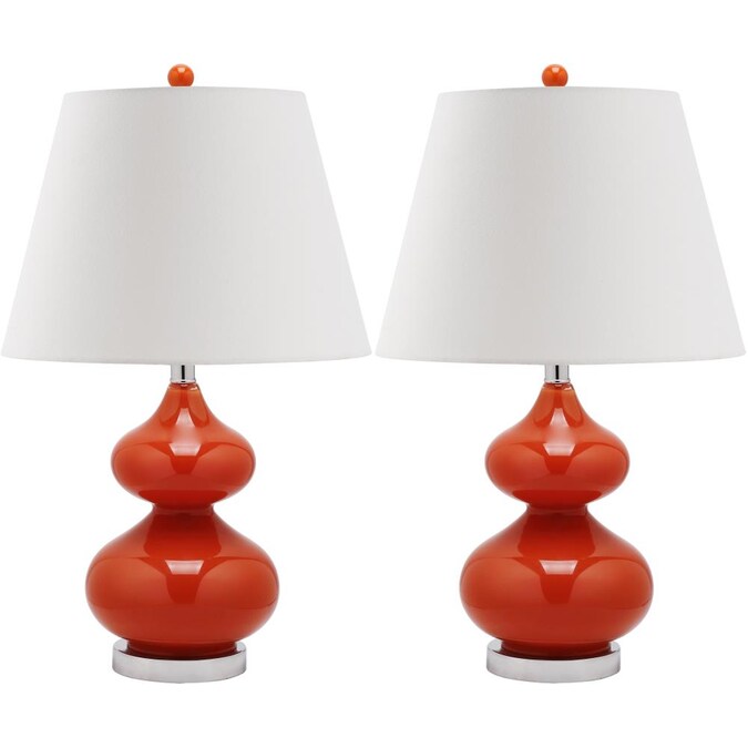 Illuminate any living space in style with the blood orange Eva Double Gourd Lamp (set of two). Topped with a matching finial and accented with silver finishes, Eva’s off-white cotton shade gives a classic touch to its curved glass body.