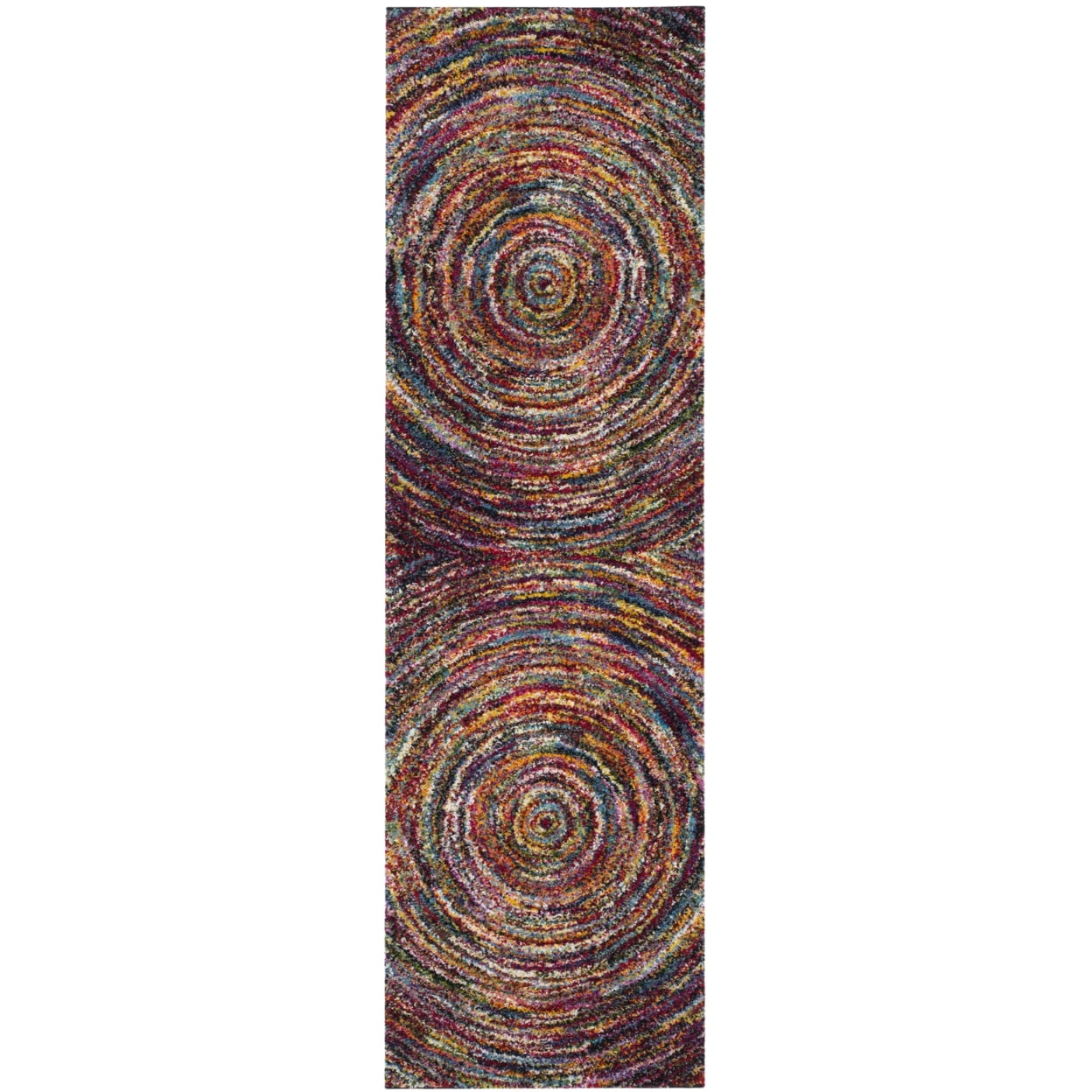 SAFAVIEH Fiesta Shag Collection FSG360M Multi Rug A marvel of color and texture, the Fiesta Shag Collection is a spectacular fusion of fashion-forward abstract patterns and sumptuous softness underfoot. Colorful enhanced polypropylene yarns create celebratory designs that are guaranteed to add a lively spark to any room. Expertly machine-woven with care, these rugs have a virtually non-shedding pile for durability in even the most high-traffic areas of the home. Rug has an approximate thickness of 0.47 inches. For over 100 years, SAFAVIEH has set the standard for finely crafted rugs and home furnishings. From coveted fresh and trendy designs to timeless heirloom-quality pieces, expressing your unique personal style has never been easier. Begin your rug, furniture, lighting, outdoor, and home decor search and discover over 100,000 SAFAVIEH products today.