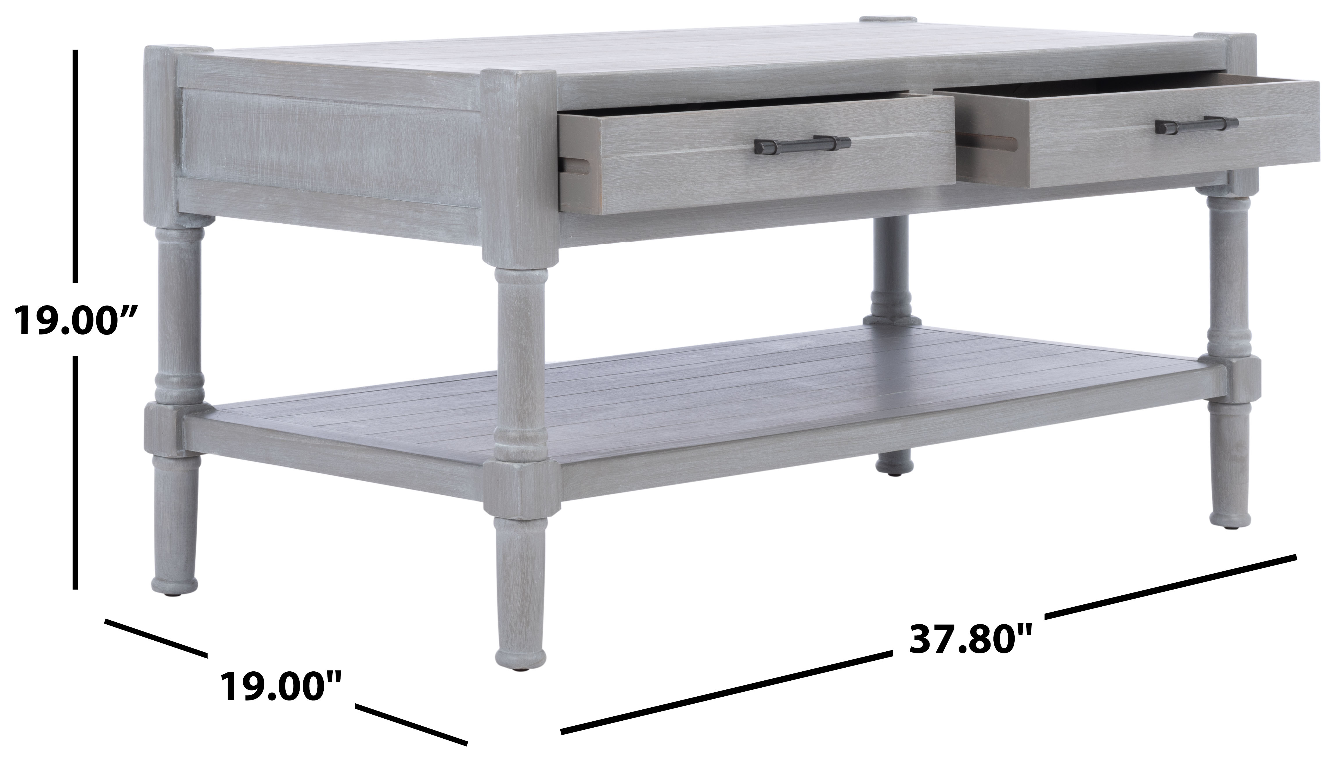 Shop SAFAVIEH at . Save Money. Live Better. SAFAVIEH Filbert Solid 2 Drawer Coffee Table, White Washed Grey A practical and stylish addition to the living room, this Filbert Coffee Table beautifully blends minimalist function with traditional form. A lower shelf and two drawers provide much needed storage in small space living areas, and a whitewashed grey finish complements any room’s color palette. For over 100 years, SAFAVIEH has set the standard for finely crafted rugs and home furnishings. Begin your rug, furniture, lighting, outdoor, and home decor search and discover over 100,000 SAFAVIEH products today.