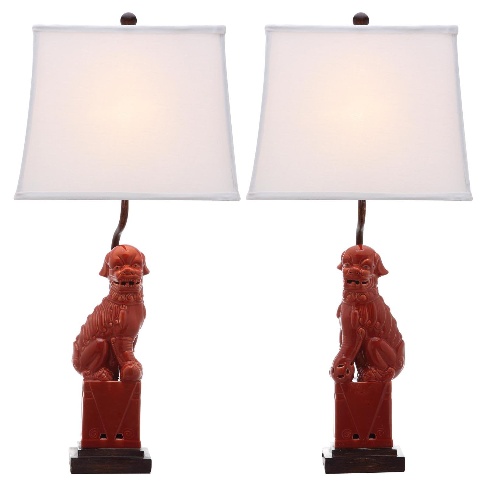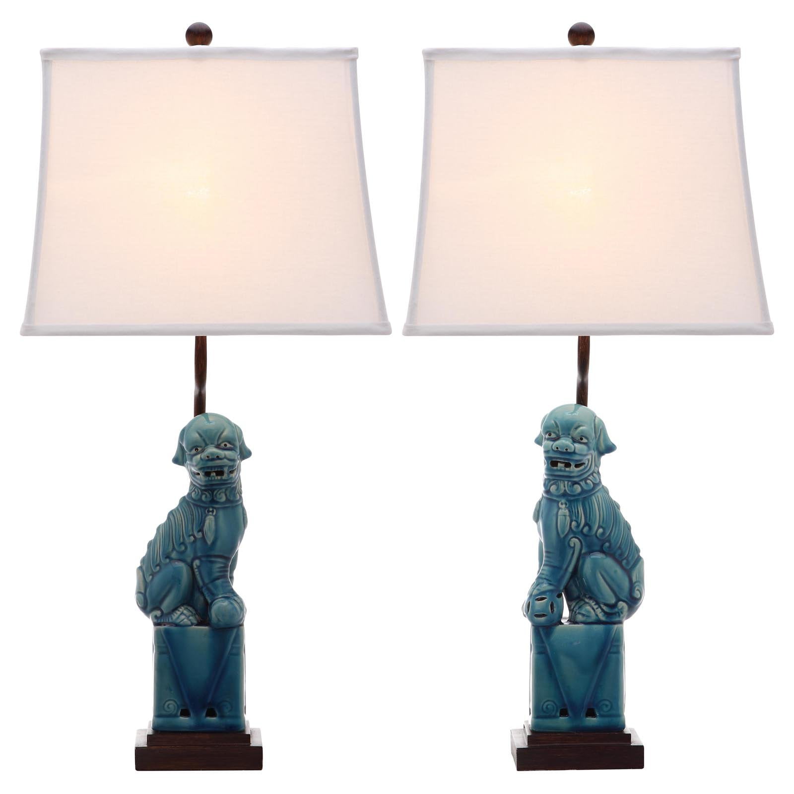 SAFAVIEH Foo Dog 28.5 in. H Solid Table Lamp, Blue, Set of 2