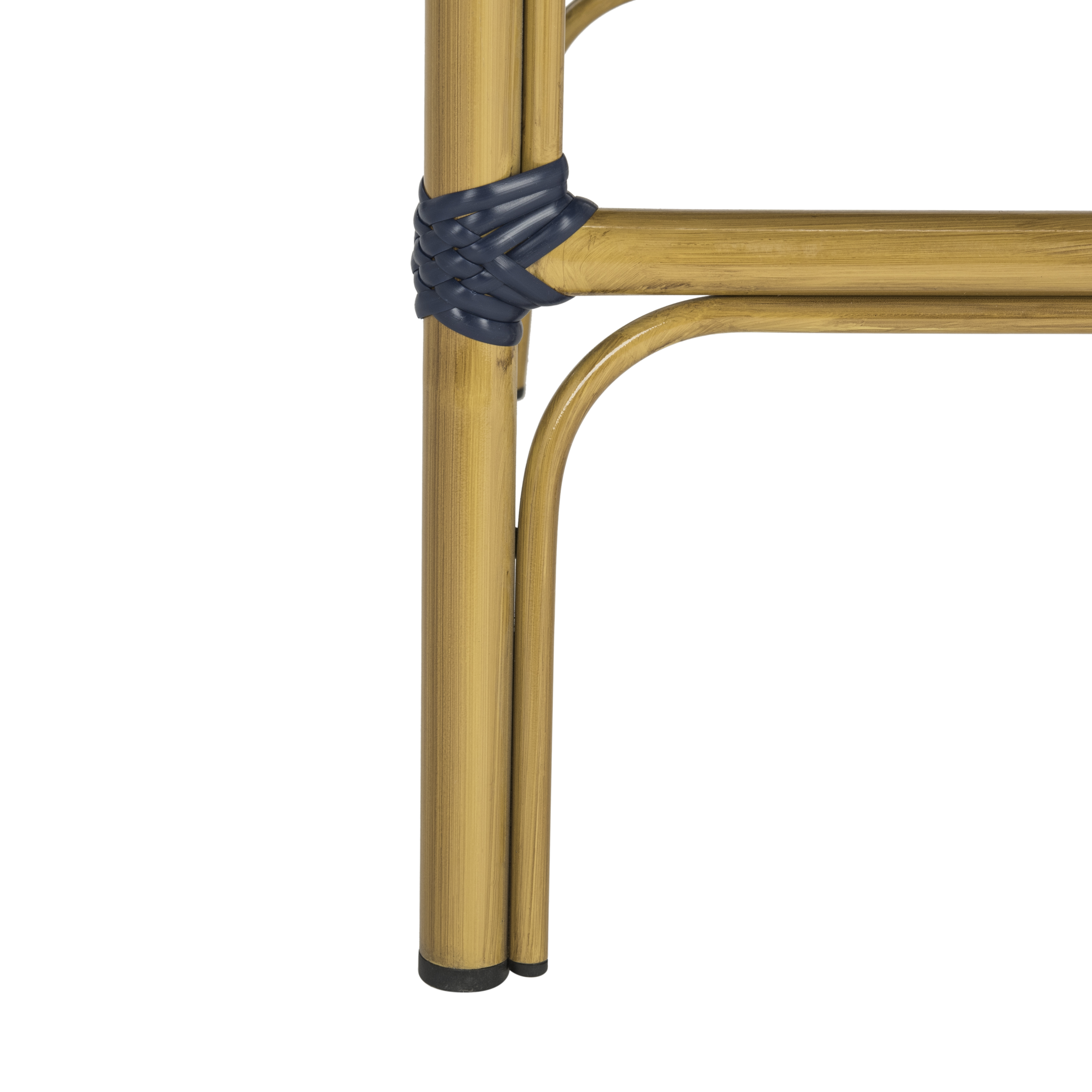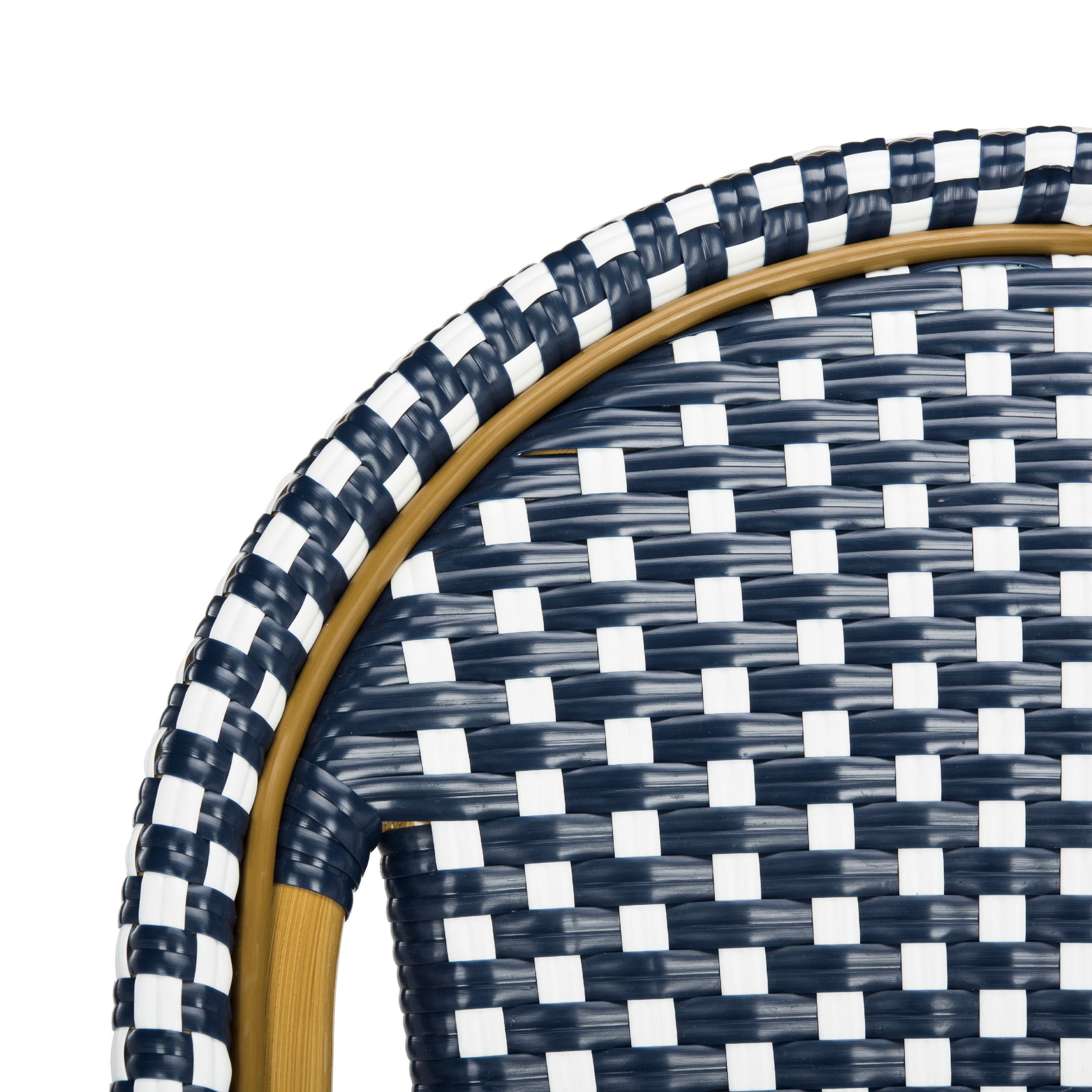 Contemporary design adds a chic look to your home Wicker and aluminium frame for longevity No Assembly Required Color: Navy/White Frame: Light Brown Item Dimensions: 18.5 in. W x 22 in. I145D x 47 in. H Seat Dimensions: 16.5 in. W x 17.3 in. D x 30 in. H Item Weight: 11 lbs Backrest: 18.5 in. Footrest Height: 9.8 in. Weight Capacity: 225 each chair Accessories in Life Style photo not included Please note: The images and product dimensions on our website are as accurate as possible. Due to differences in computer monitors, some item’s color may vary slightly. Store outdoor furniture indoors or cover well when not in use. Remove wooden furniture from standing water. Dust regularly with small brush or vacuum. Spills should be taken care of immediately before they harden or stain with a slightly dampened sponge.