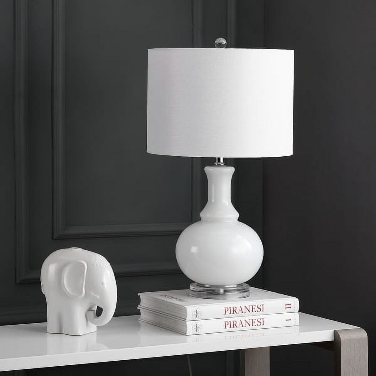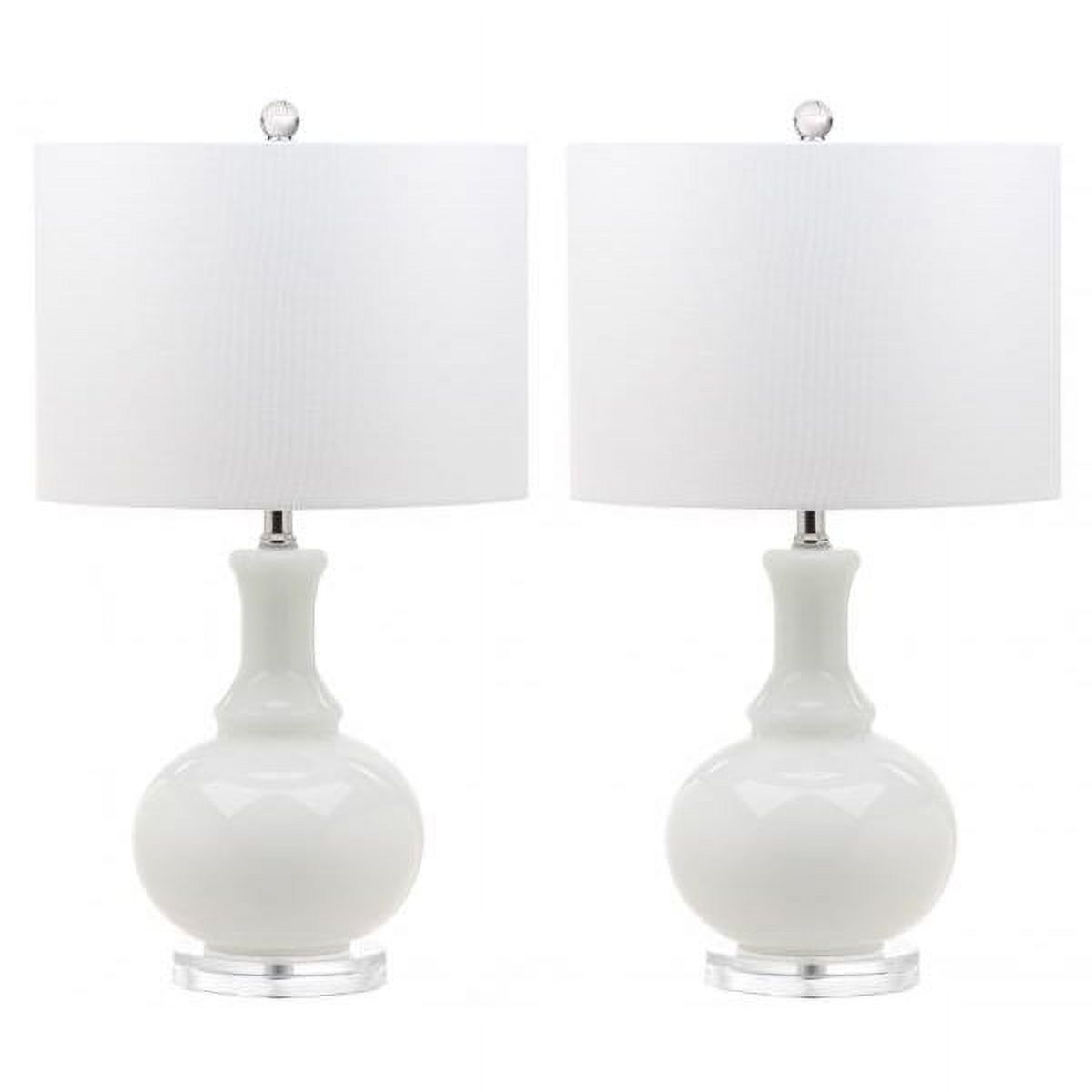 SAFAVIEH Franny Table Lamp (Set of 2) | Off White | This traditional white glass table lamp (set of 2), brings refined luxury to any space. Created to recall the ethereal interiors of Paris� grand hotel on Avenue Montaigne, its crisp off white shade, and stunning crystal finial grab the aesthete�s eye. Begin your rug, furniture, lighting, outdoor, and home decor search and discover over 100,000 SAFAVIEH products today.