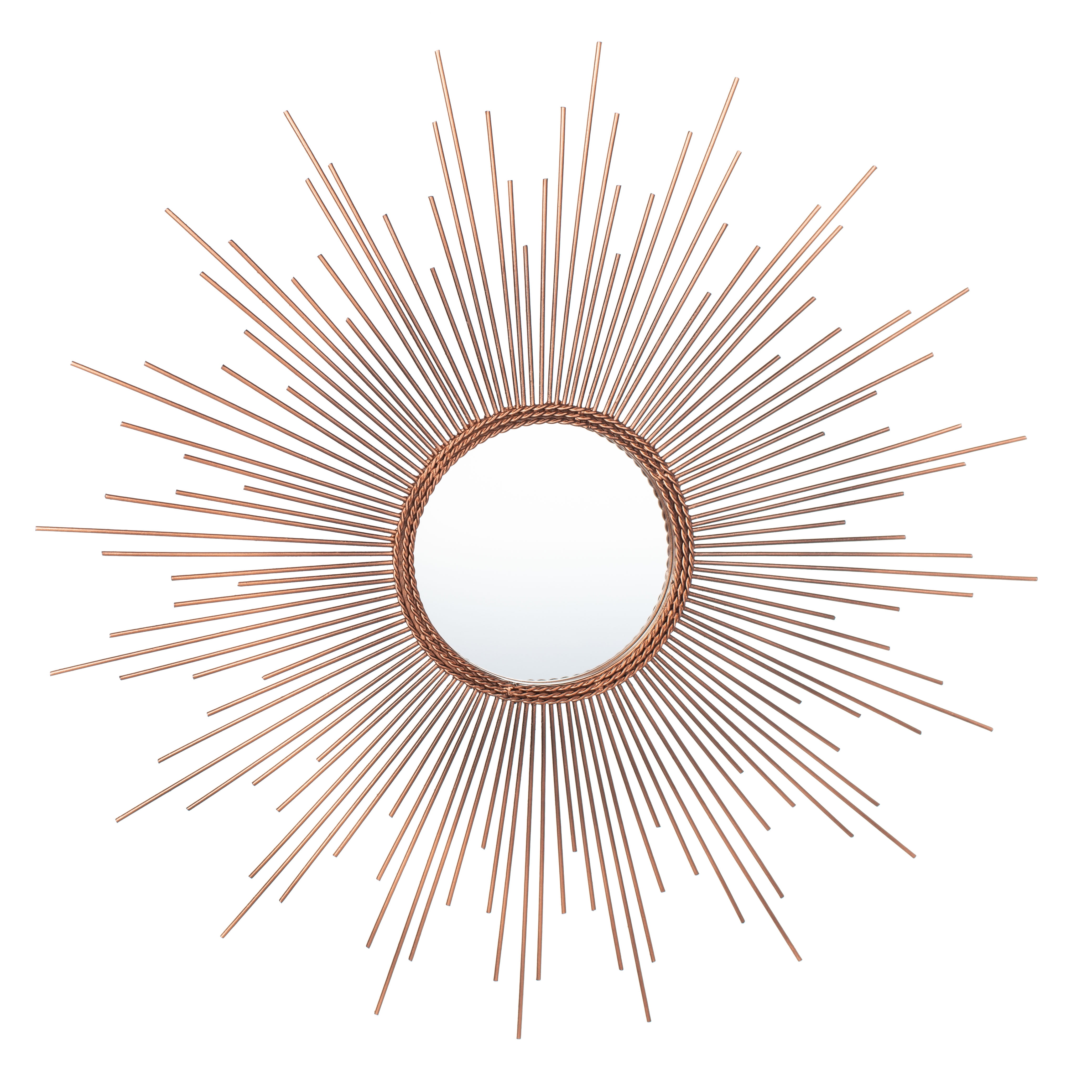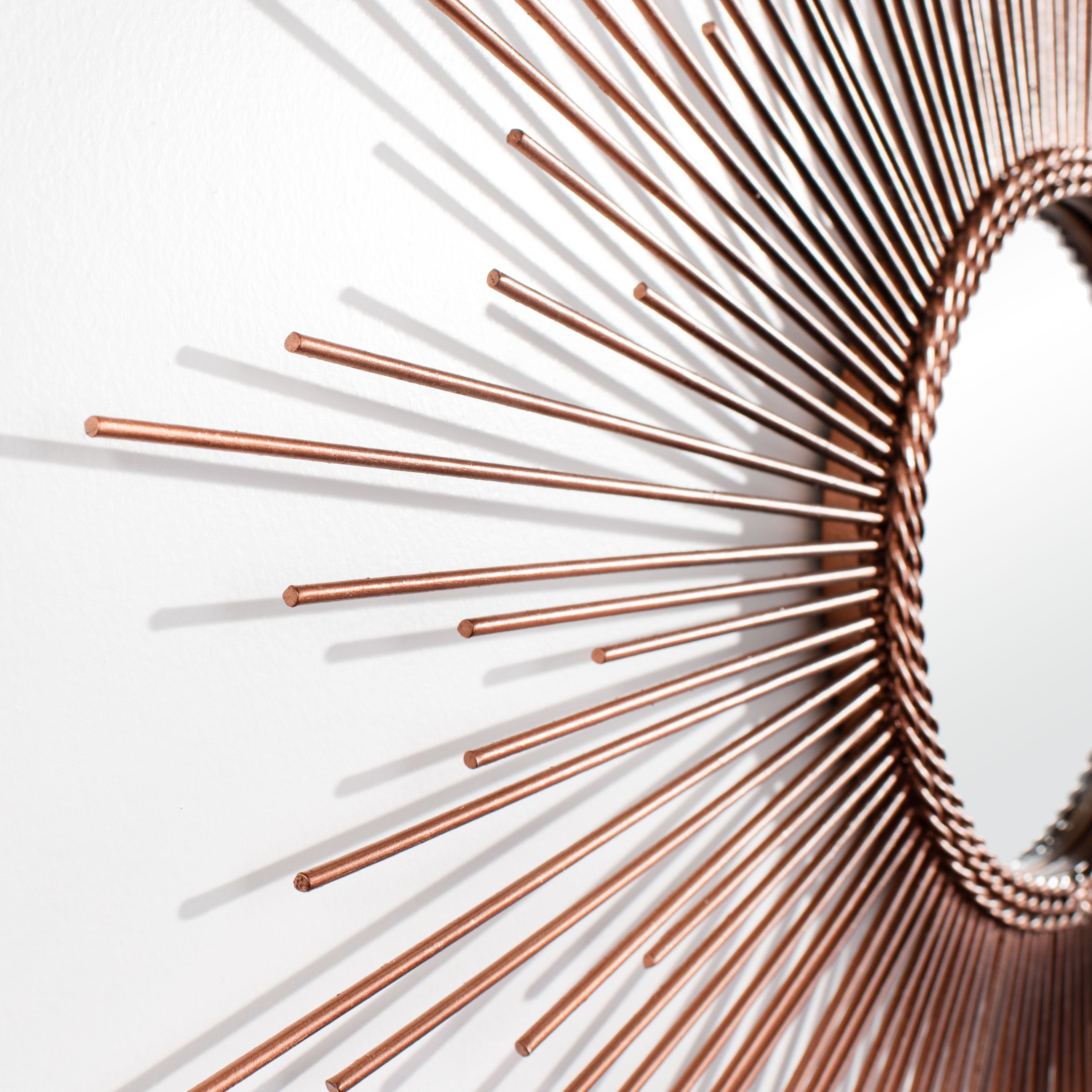 Shop Safavieh at . Save Money. Live Better. Safavieh Genevieve Radiant Lines Round Sunburst Mirror, Copper Marvelously mod in metallic copper hues, the Genevieve Mirror boasts sleek, chic lines radiating from a perfectly polished circular mirror. An outstanding accent to revive the look and feel of any grand entryway or stylish living room.