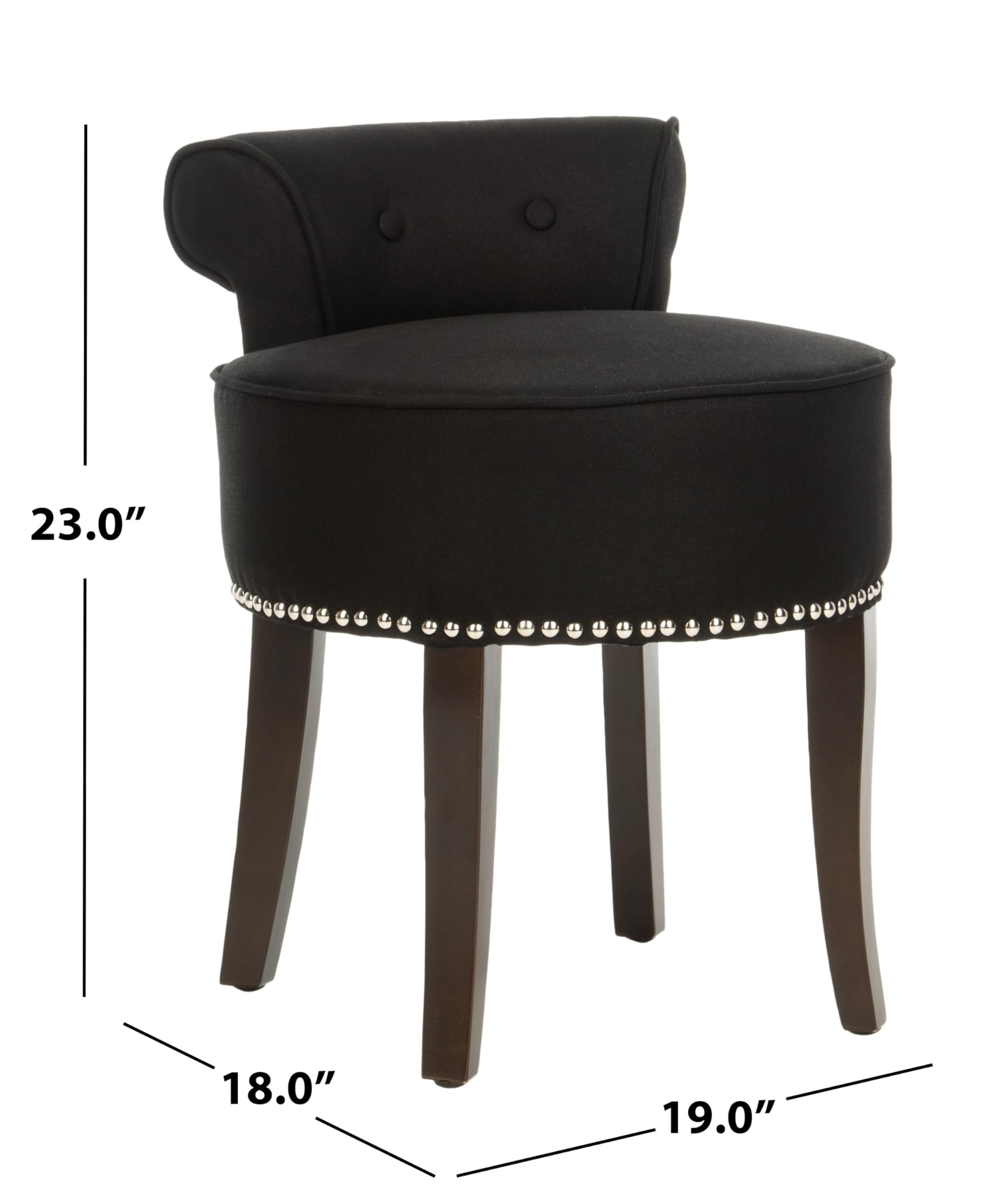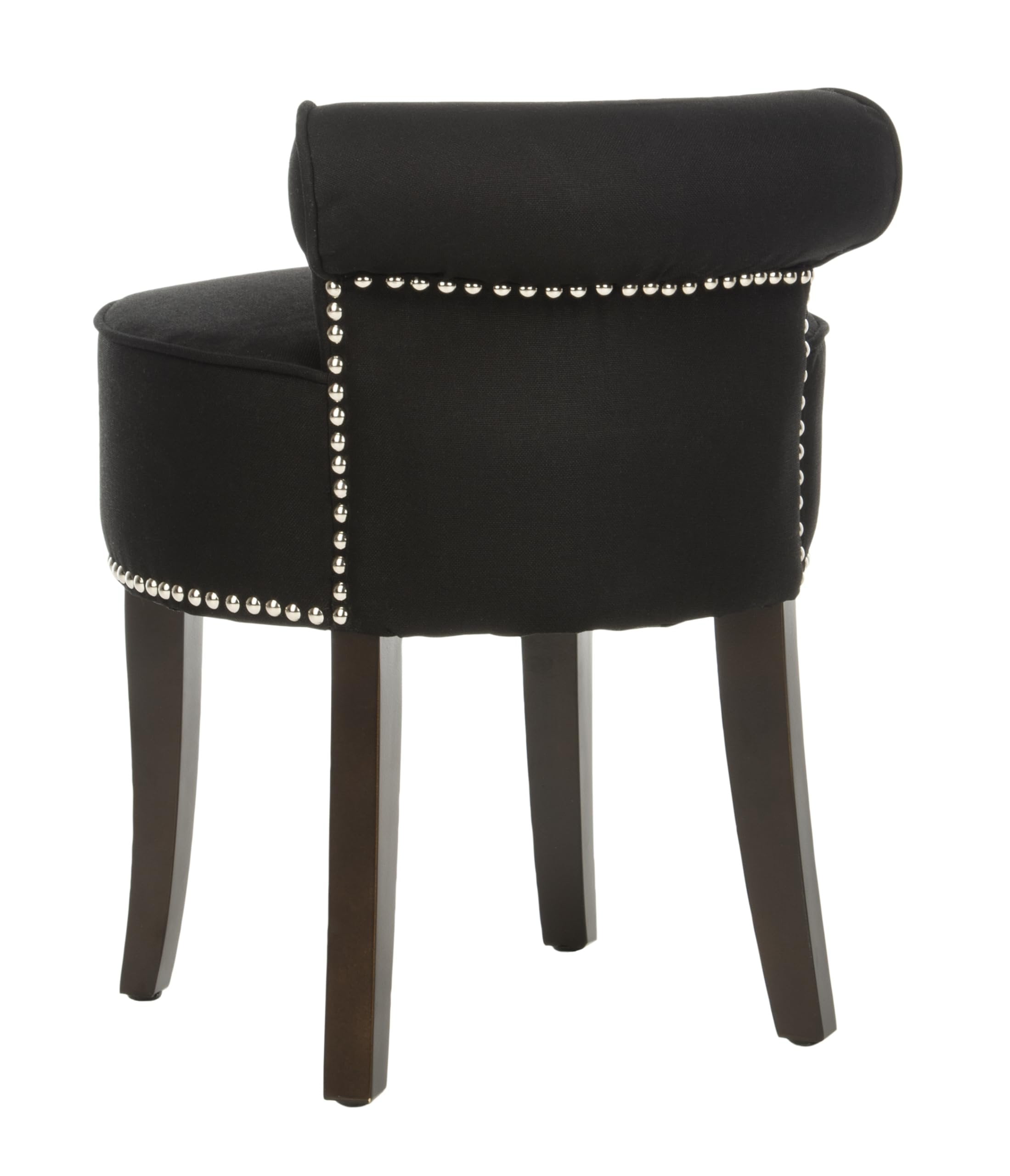 SAFAVIEH Georgia Contemporary Glam Upholstered Vanity Stool, Black