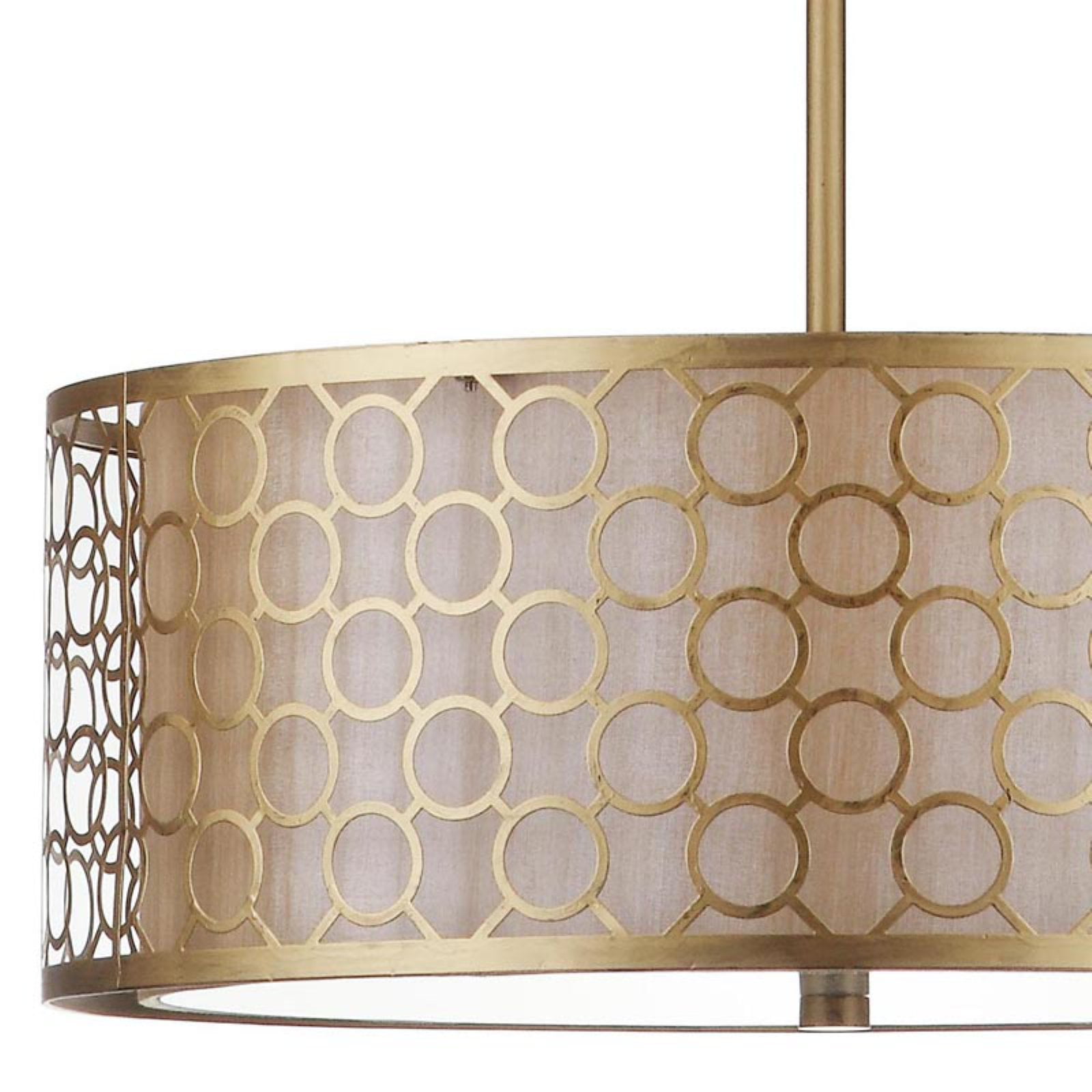 Shop Safavieh at . Save Money. Live Better. Safavieh Giotta 18 in. Diameter Drum Pendant Light, Antique Gold A distinctive marriage of a cream fabric shade with geometric-patterned laser cut steel in antique gold finish, the Giotta drum pendant light showcases the glamorous shade-within-a-shade trend. Giotta brings a romantic play of light to transitional rooms. This lighting serves as the perfect addition to your home.