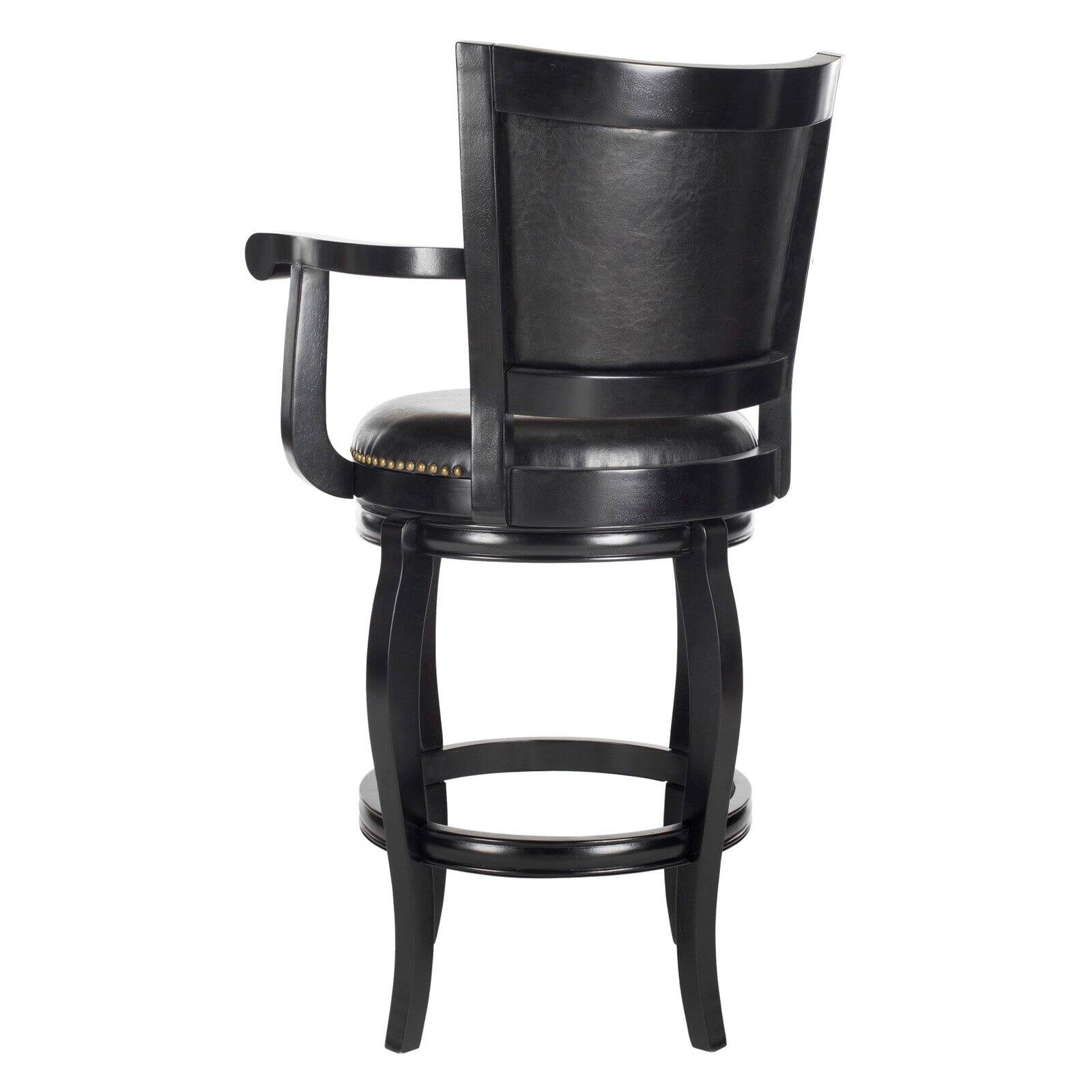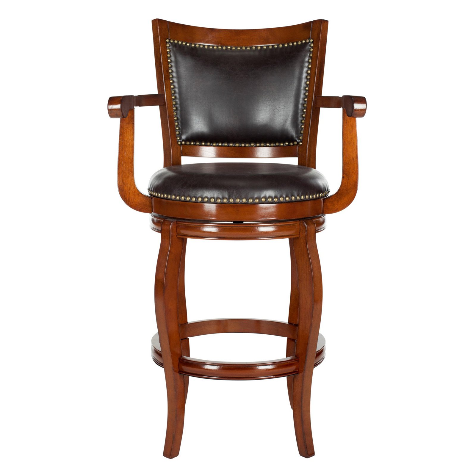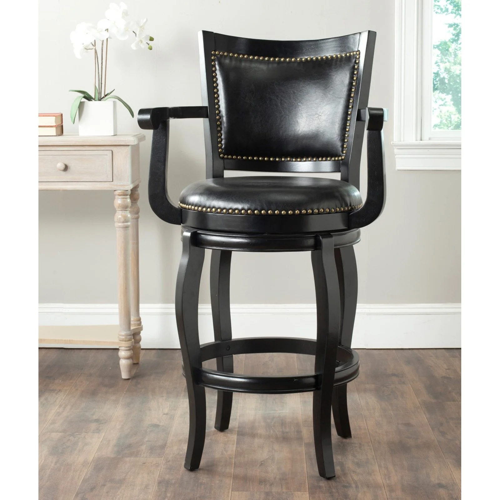 SAFAVIEH Gitano Swivel Bar Stool Brown FOX7009D Timeless with a Euro chic edge, the Gitano swivel bar stool gives a classic silhouette an update for transitional rooms. Upholstered with dark brown PU leather with bronze nailhead trim, Gitano is crafted of eco friendly rubberwood in a walnut finish. For over 100 years, SAFAVIEH has set the standard for finely crafted rugs and home furnishings. From coveted fresh and trendy designs to timeless heirloom-quality pieces, expressing your unique personal style has never been easier. Begin your rug, furniture, lighting, outdoor, and home decor search and discover over 100,000 SAFAVIEH products today.
