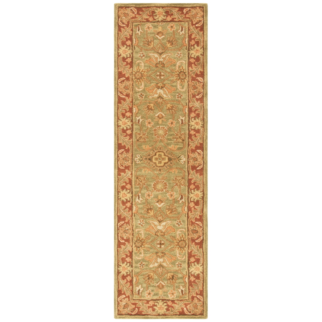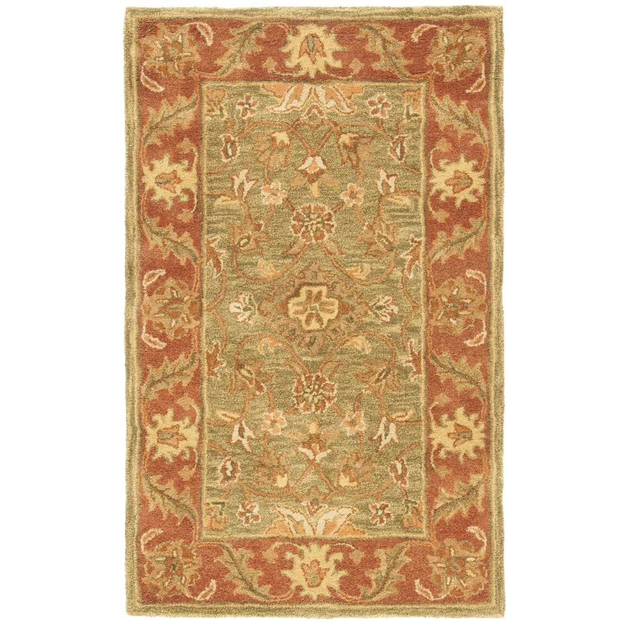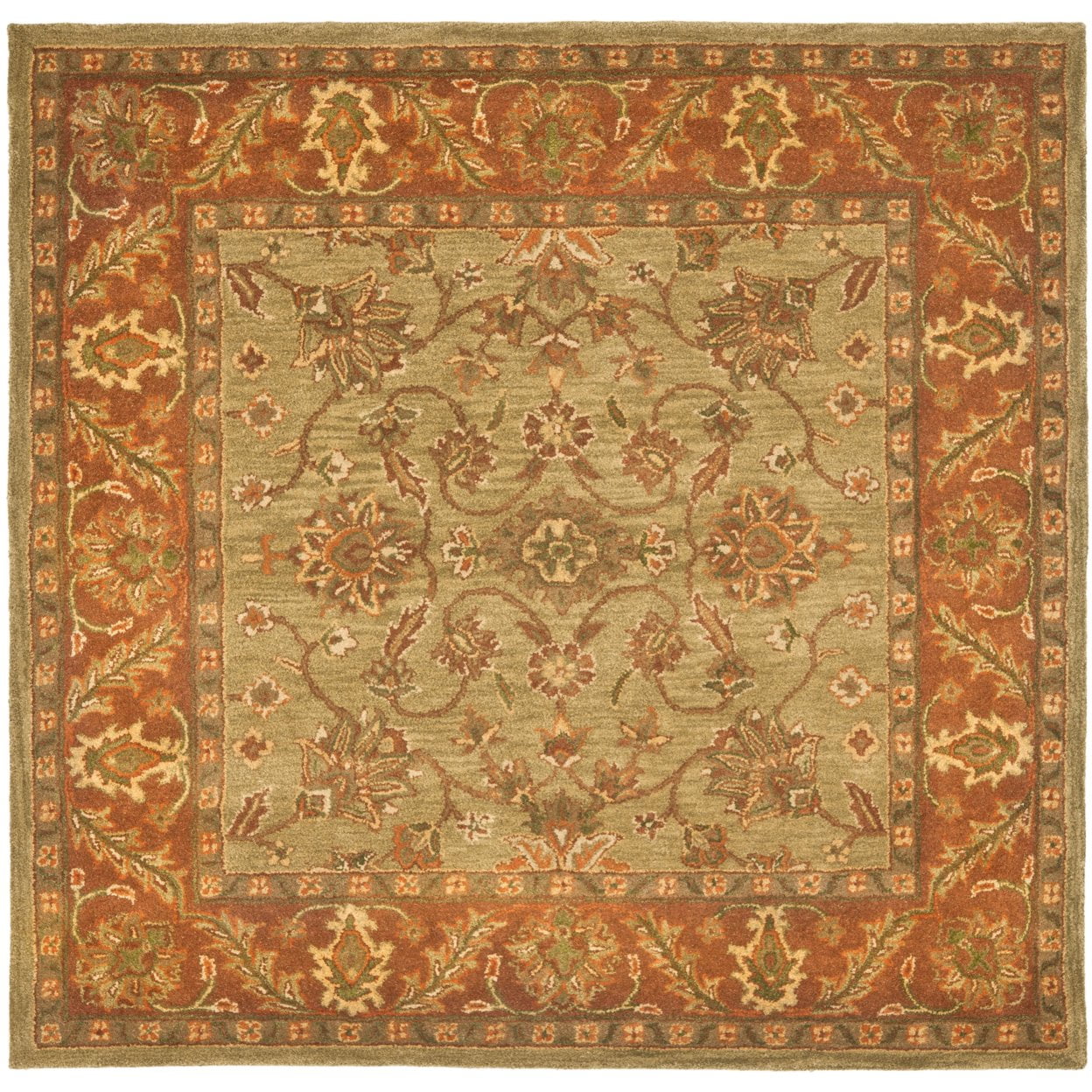 SAFAVIEH Golden Jaipur GJ250A Handmade Green / Rust Rug Update your home or office with this handmade traditional Golden Jaipur Persian design rug. An intricate Oriental design and a dense, thick pile highlight this handmade rug. Premium wool is used with a luster wash finish to give it a soft silky finish to ensure this is one of the most luxurious rugs available. Rug has an approximate thickness of 0.5 inches. For over 100 years, SAFAVIEH has set the standard for finely crafted rugs and home furnishings. From coveted fresh and trendy designs to timeless heirloom-quality pieces, expressing your unique personal style has never been easier. Begin your rug, furniture, lighting, outdoor, and home decor search and discover over 100,000 SAFAVIEH products today.