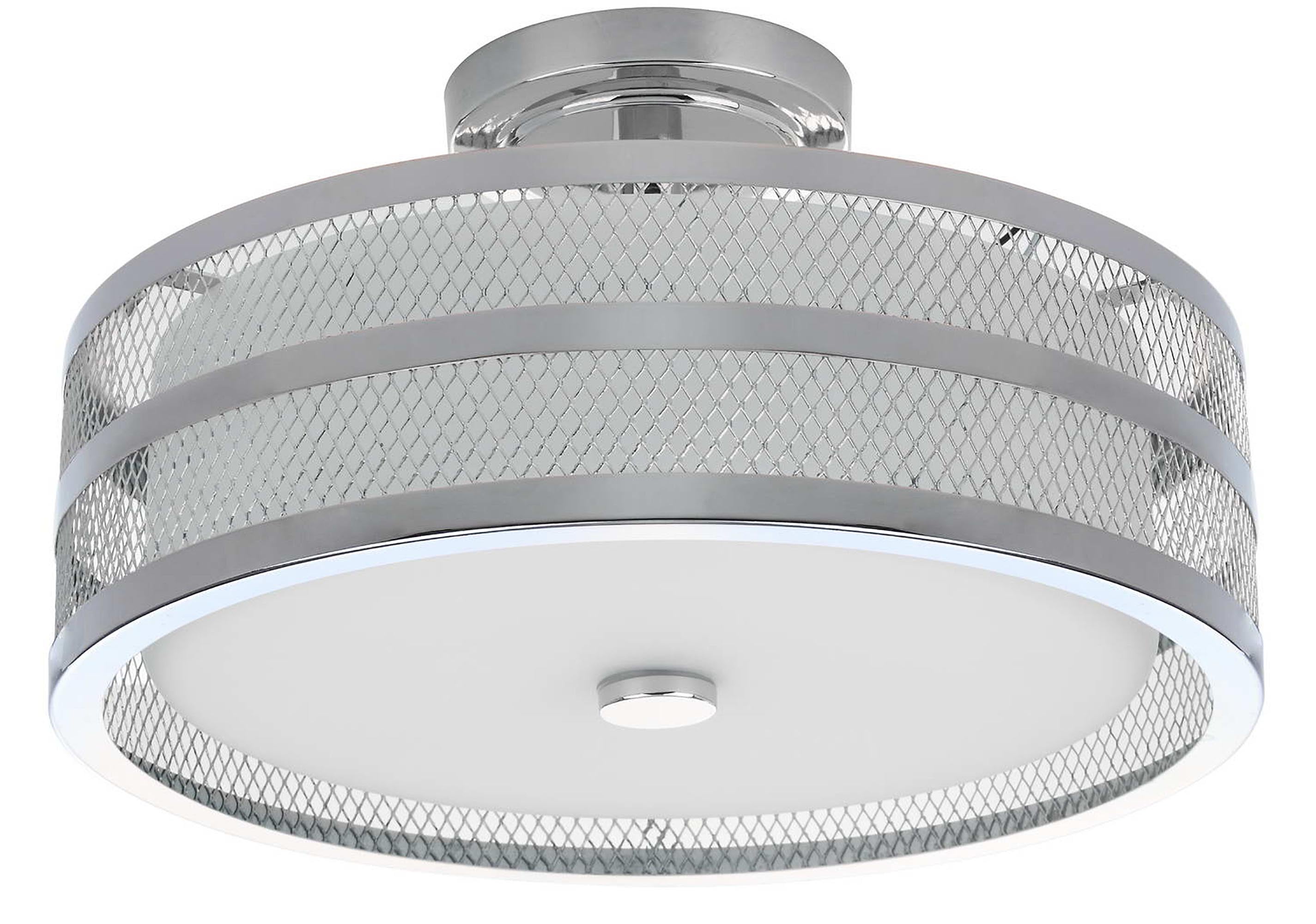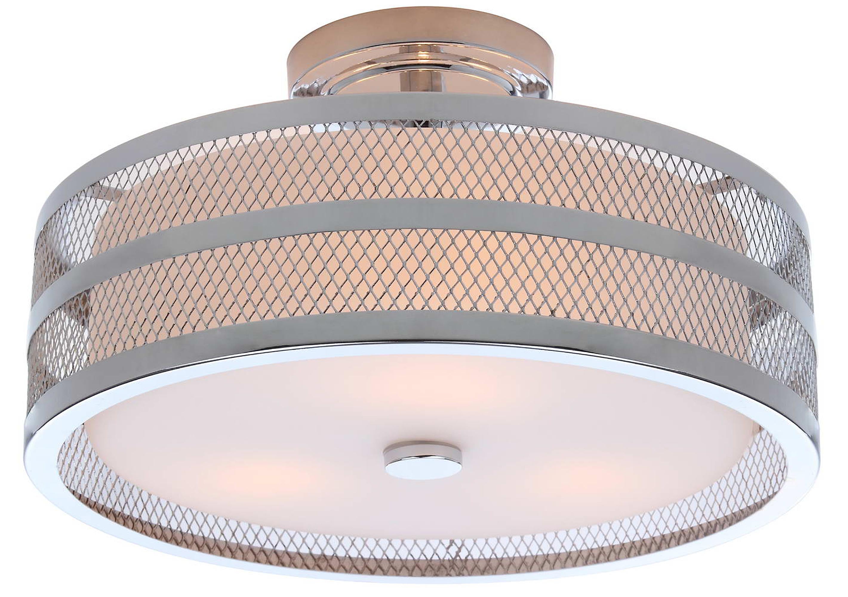 Contemporary design adds a chic look to your home Durable frame for long lasting longevity Easy to clean and maintain Minor assembly needed Color: Chrome Shade Color: White Item Dimensions: 15.8 in. W x 15.8 in. D x 9.6 in. H Crafted with Iron Shade Height: 4.375 in. H Shade Bottom Dimensions: 13 in. L x 13 in. W Shade Top Dimensions: 13 in. W x 13 in. L Cord Color: Black/White Cord Length: 6 in. Pendant Dimension: 6 in. Lamp Certification: UL Canopy Dimensions: 5.625 in W x 5.625 in. D x 1.125 in. H Light Bulb Base Type: E26 Type of Bulb Included: CFL Max Wattage: 13W Lumen: 830 Quantity of Bulbs: 3 Accessories in life style photo(s) not included Please note: The images and product dimensions on our website are as accurate as possible. Due to differences in computer monitors, some item’s color may vary slightly. Before cleaning any lamp shade or fixture, disconnect the power source. Wipe with a soft, dry cloth. Avoid the use of chemicals and household cleaners as they may damage the finish.